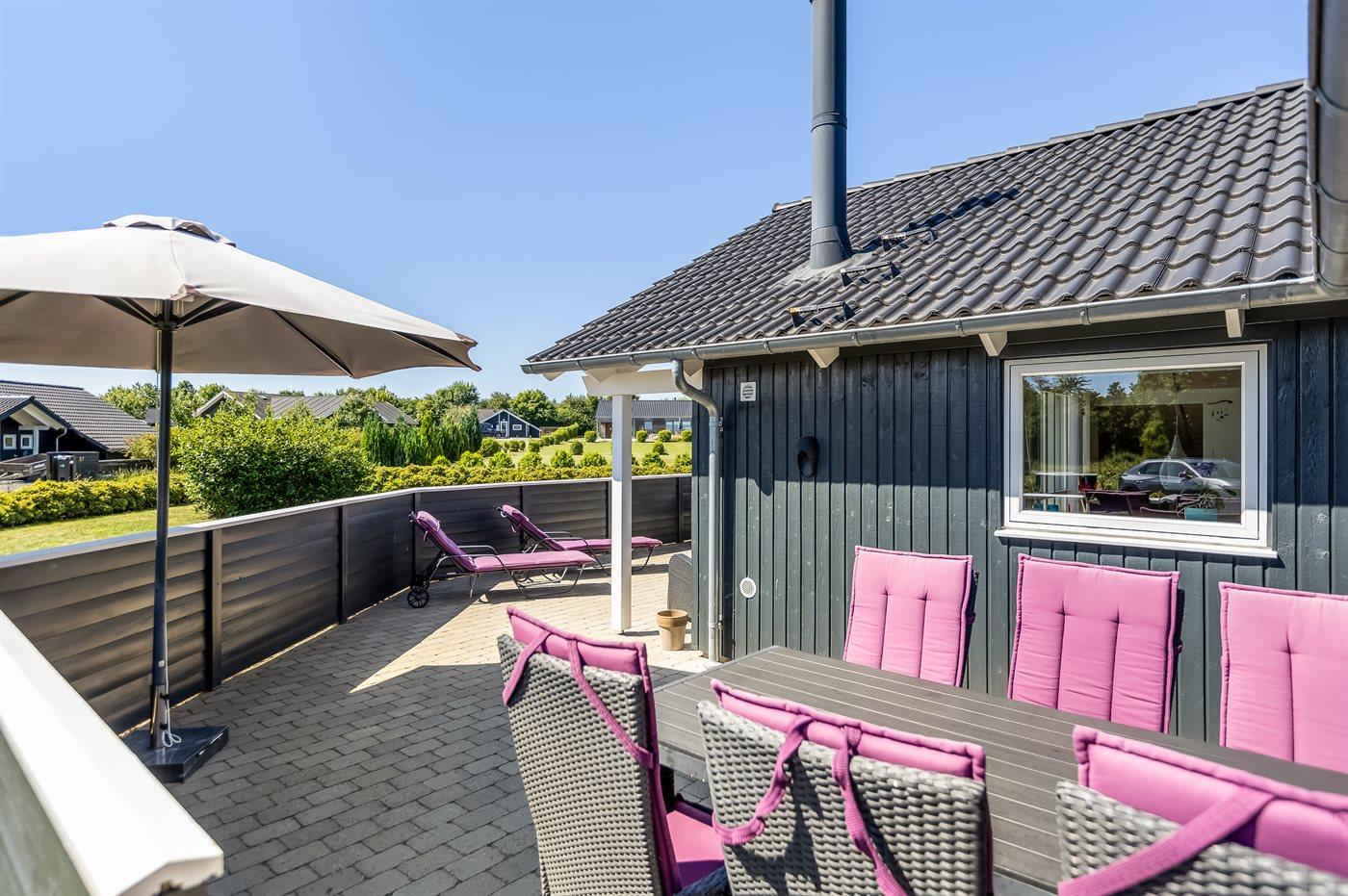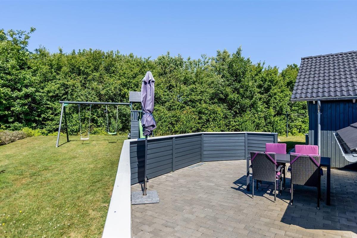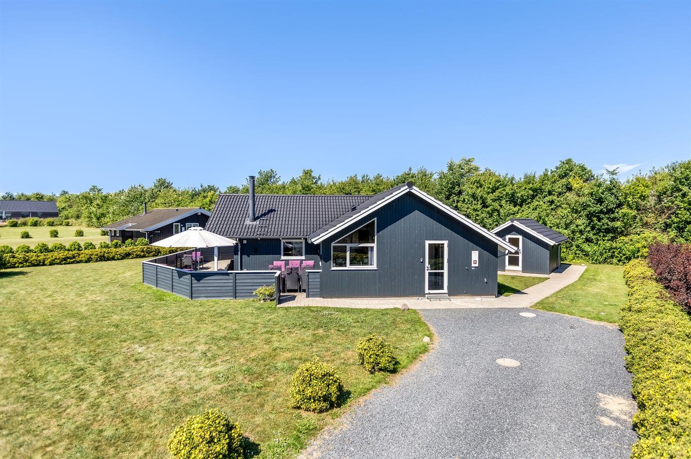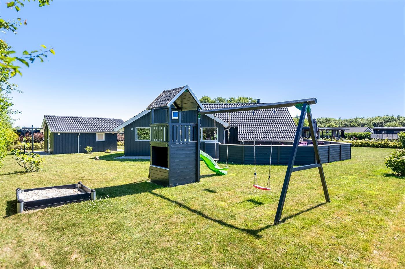De vakantiewoning is gelegen op een 1050 m² groot aangelegde tuin. Afstand tot de zee 700 m. Dichtstbijzijnde winkel 2000 m. Er is een golfbaan op een afstand van 14000 m. Bij de vakantiewoning hoort terras. Daarnaast is er een overdekt terras. Schommel. Zandbak. Speeltoren. Barbecue. Het huis heeft een stopcontact voor het opladen van een elektrische auto. Oplaadstekker type 2. Met 11 kW-laadvermogen. Parkeerplaats bij het huis.