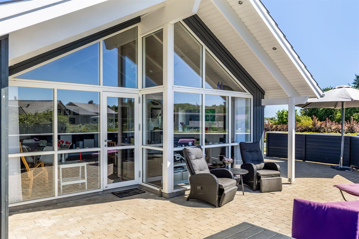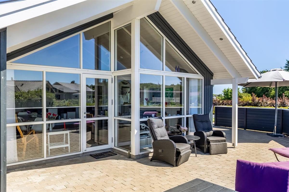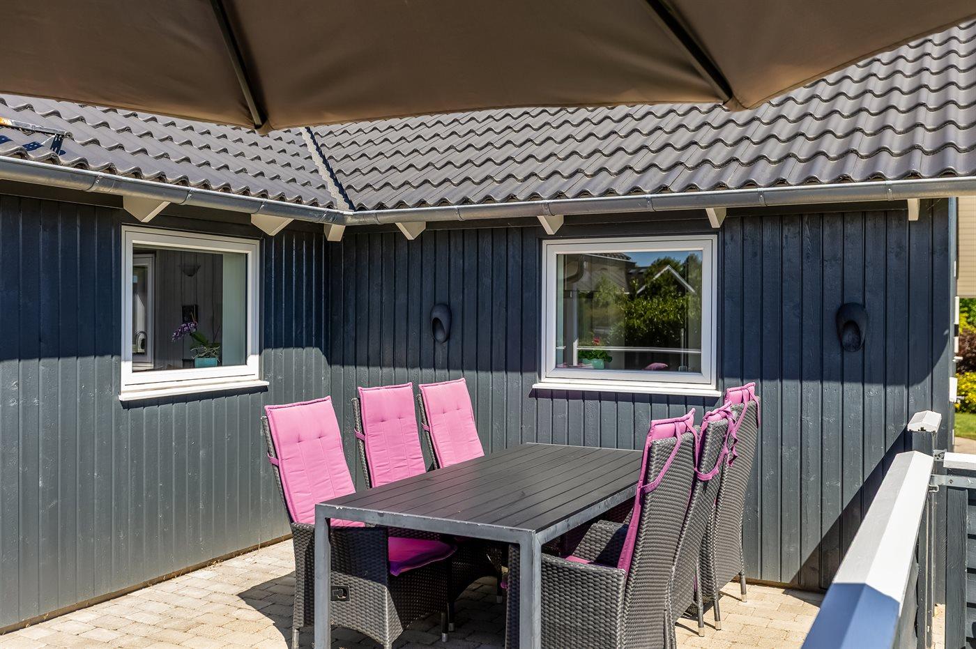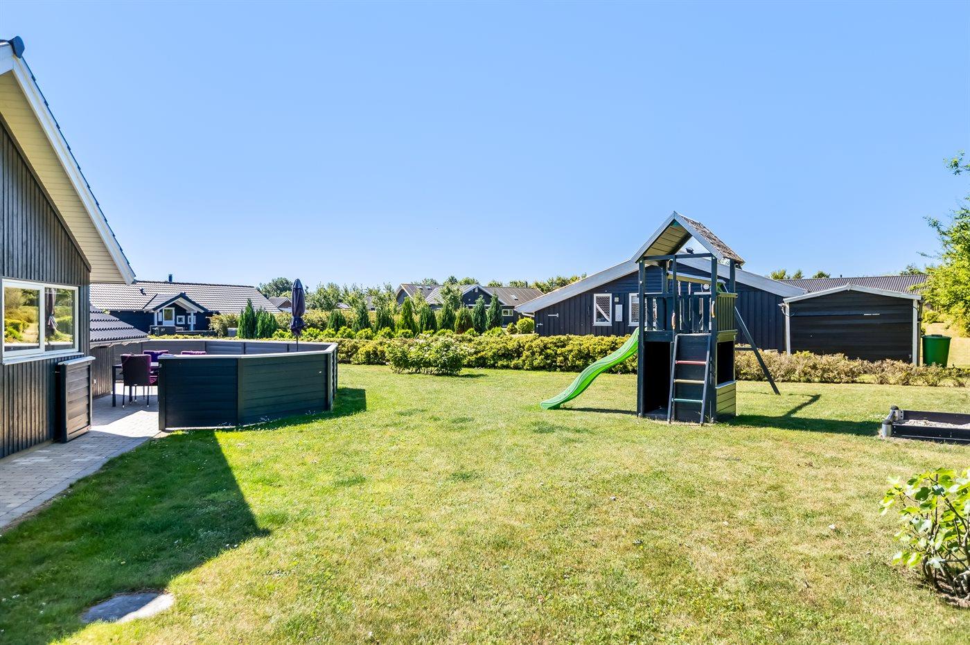 De vakantiewoning is gelegen op een 1050 m² groot aangelegde tuin. Afstand tot de zee 700 m. Dichtstbijzijnde winkel 2000 m. Er is een golfbaan op een afstand van 14000 m. Bij de vakantiewoning hoort terras. Daarnaast is er een overdekt terras. Schommel. Zandbak. Speeltoren. Barbecue. Het huis heeft een stopcontact voor het opladen van een elektrische auto. Oplaadstekker type 2. Met 11 kW-laadvermogen. Parkeerplaats bij het huis.