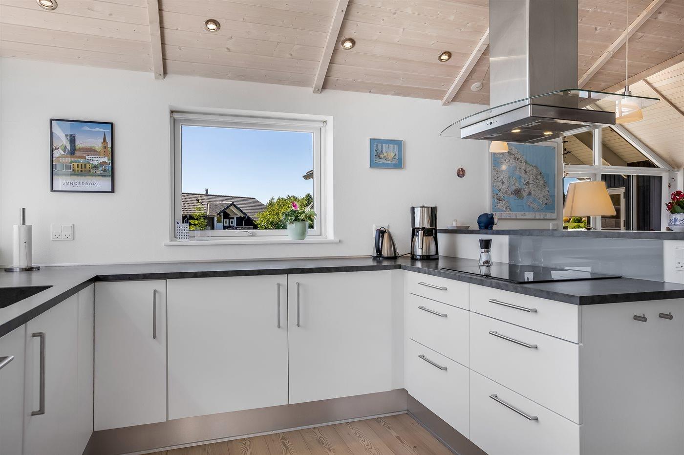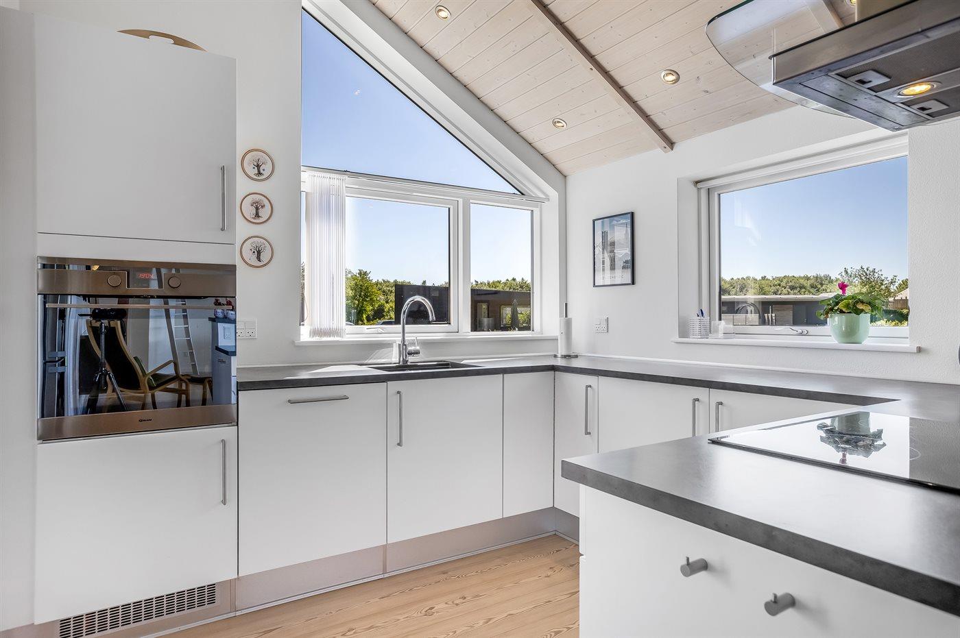 De keuken is uitgerust met koelkast Er is 4 inductiekookplaten, heteluchtoven, magnetron en vaatwasser.