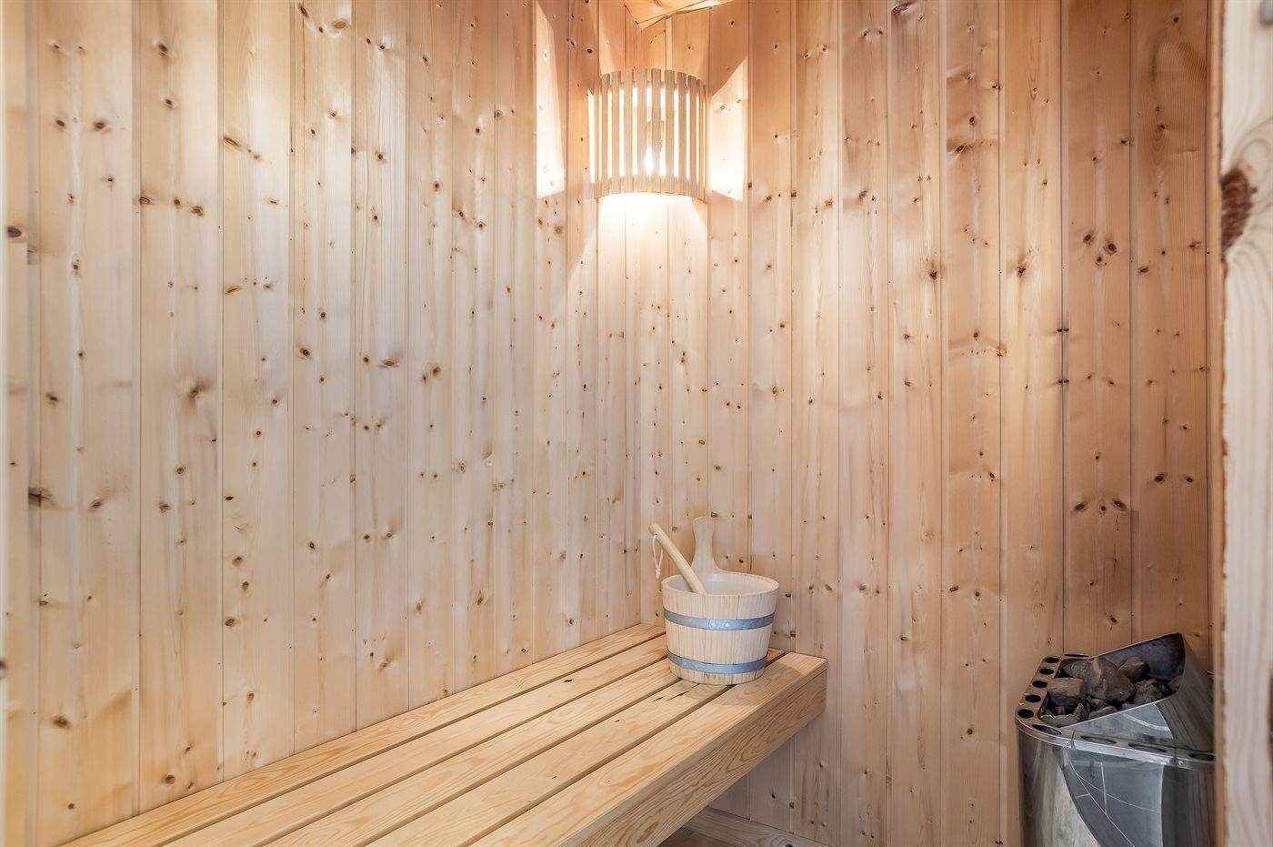 Er is 1 badkamer met douchehok en 1 toilet.. Er is vloerverwarming in 1 badkamer. De sauna biedt de gelegenheid tot ontspanning.
