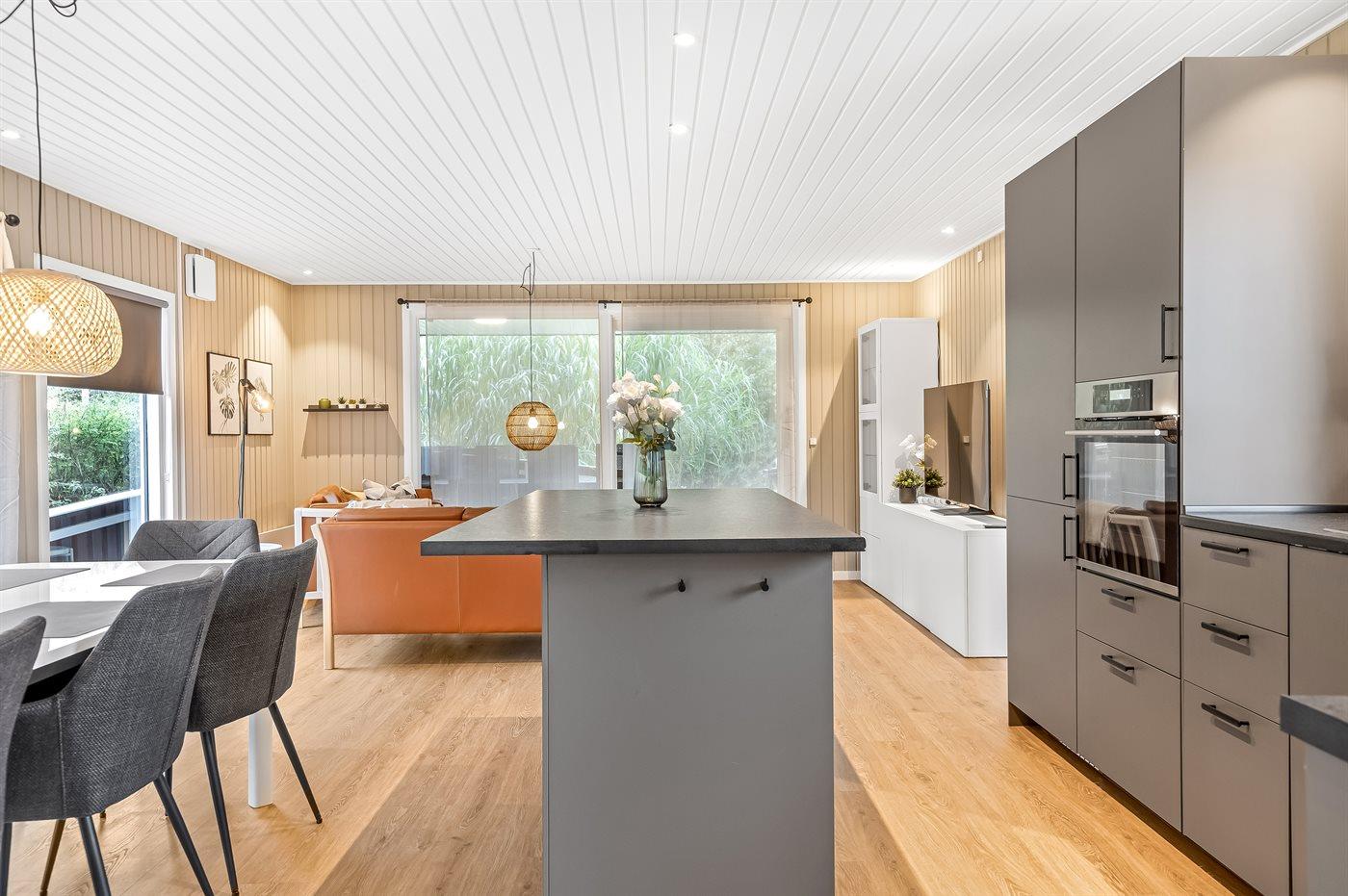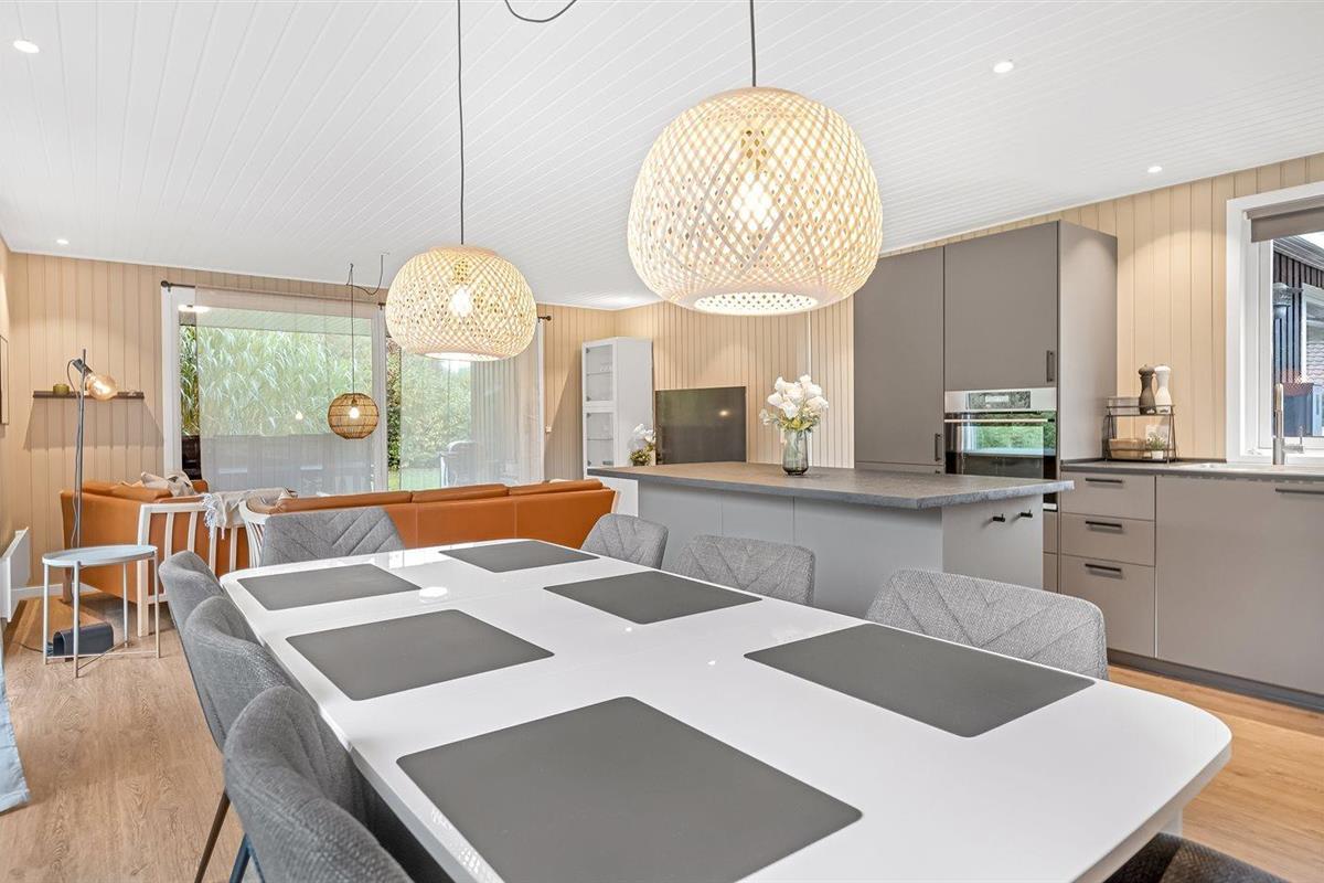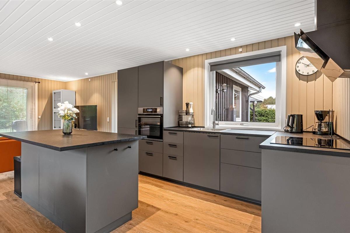 De keuken is uitgerust met koelkast Er is 4 inductiekookplaten, heteluchtoven en vaatwasser.