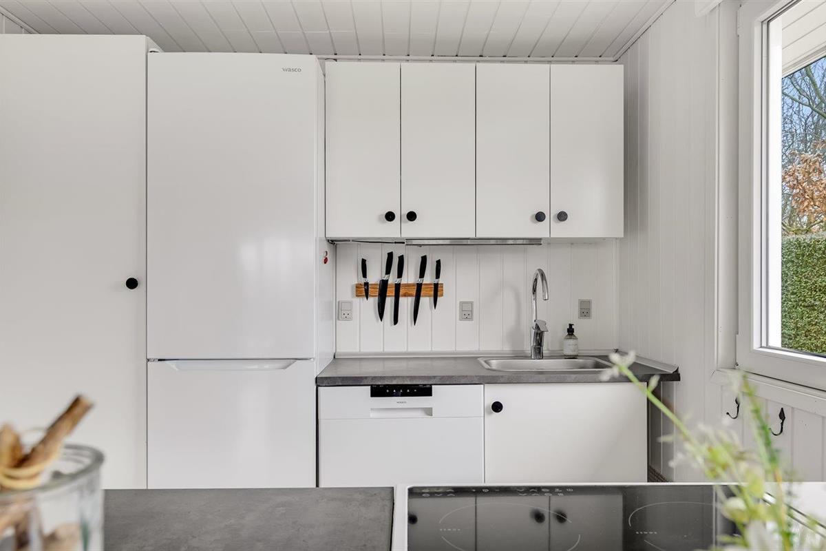 De keuken is uitgerust met koelkast Er is 4 inductiekookplaten, heteluchtoven, magnetron en vaatwasser.