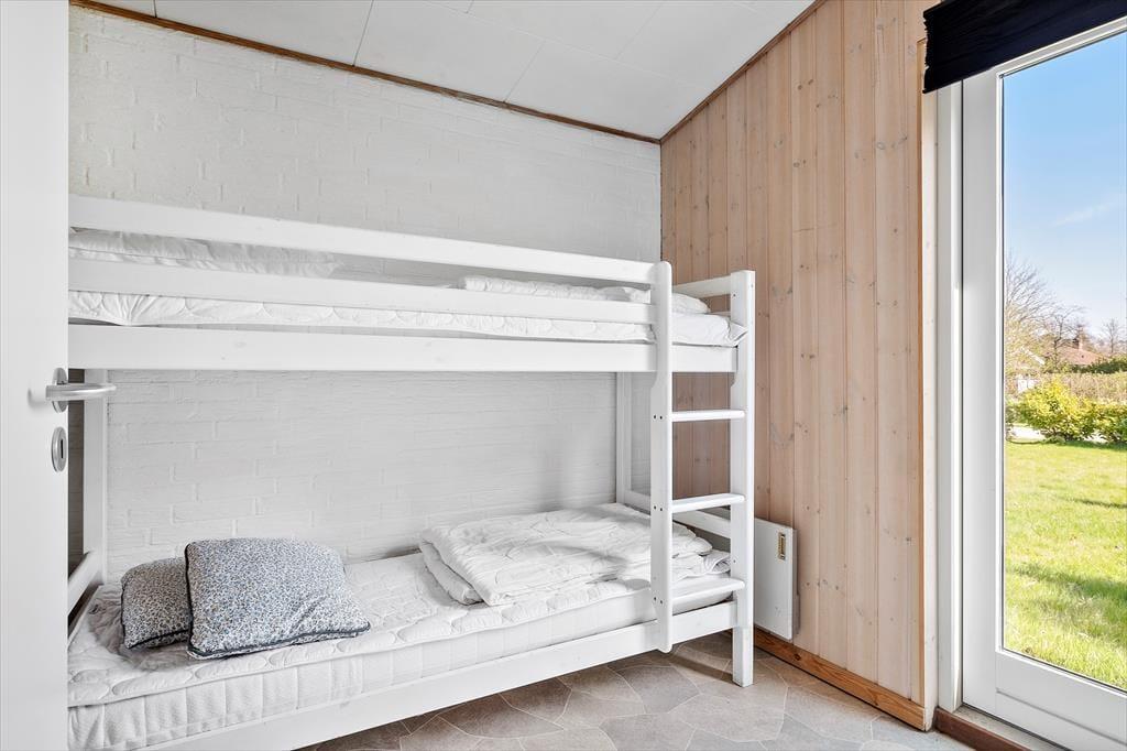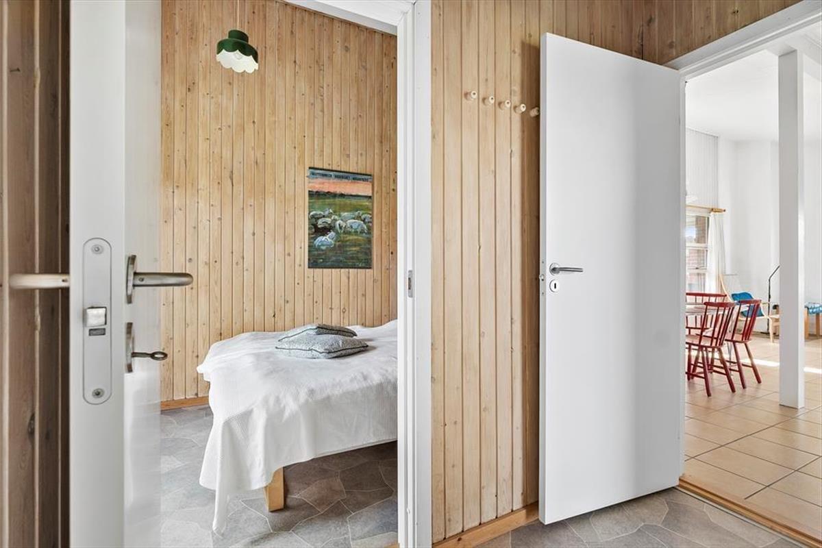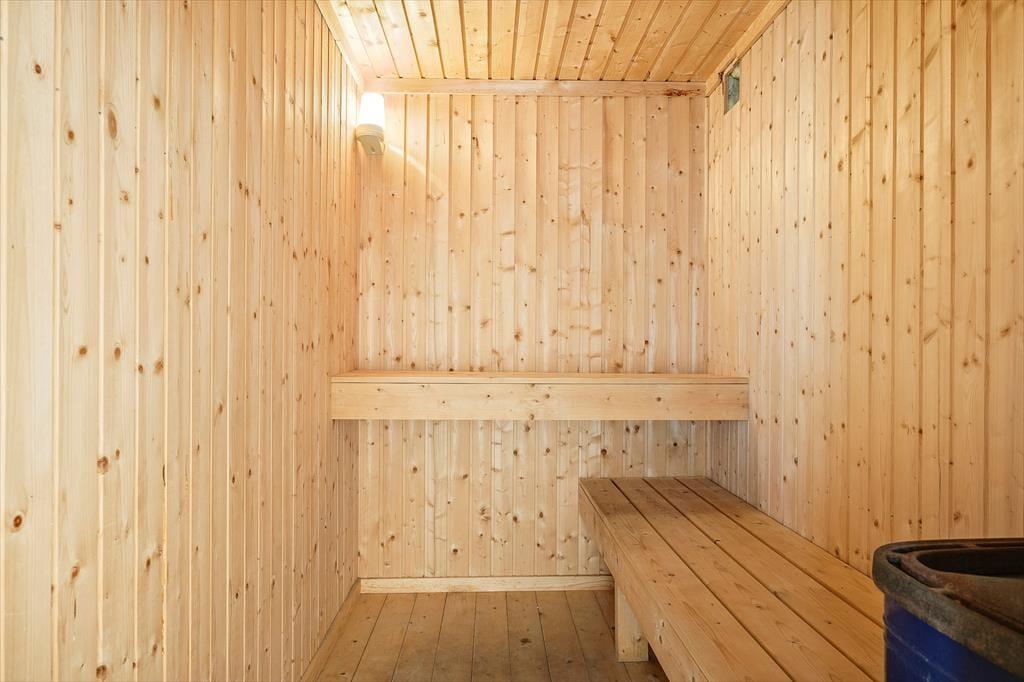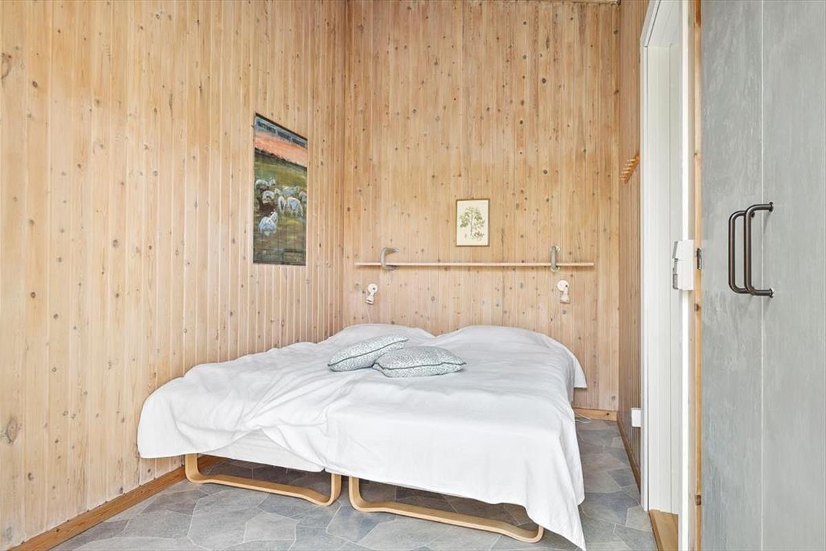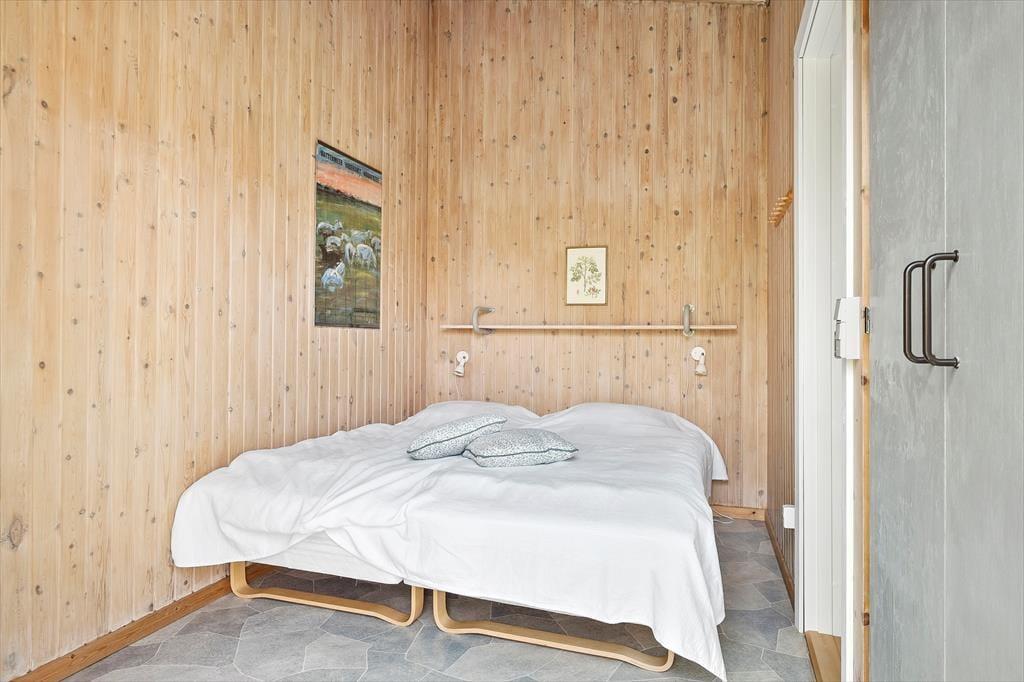Dieses interessante Ferienhaus beinhaltet eine offen mit dem Wohn- und Essbereich kombinierte Küche. Im Wohnraum sorgt eine energiesparende Wärmepumpe für angenehme Temperaturen. Ein Badezimmer, ein Schlafraum mit zwei Einzelbetten und ein Schlafraum mit einem Etagenbett sind vorhanden. Beide Schlafräume bestechen mit einem eigenen Zugang zum Garten. Von der Terrasse gelangen Sie in das Nebengebäude, in dem Ihnen ein weiterer Schlafraum mit ein Dobbelbettbett und ein gesonderter Raum mit einer Sauna zur Verfügung stehen.