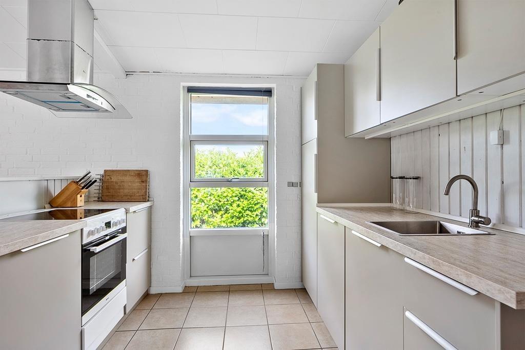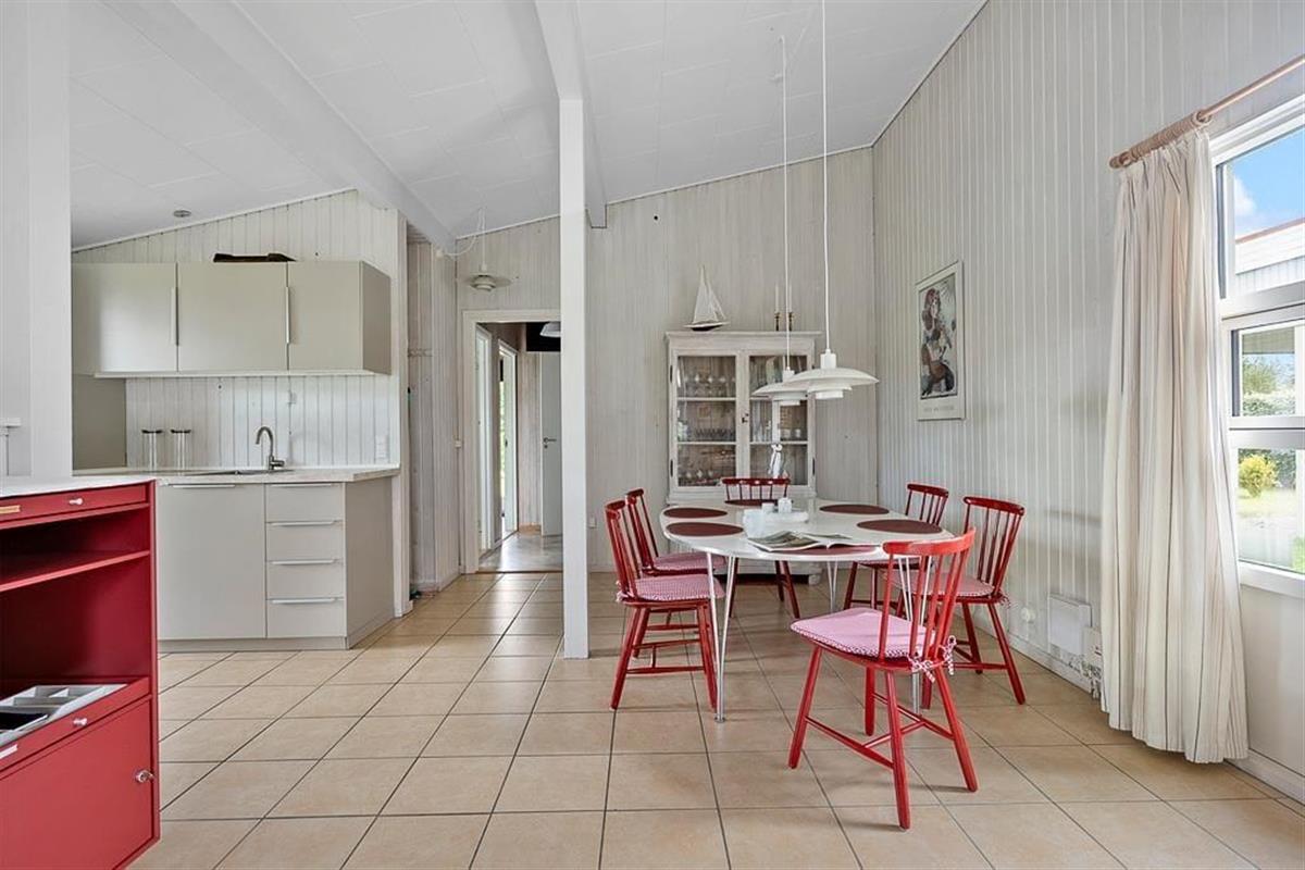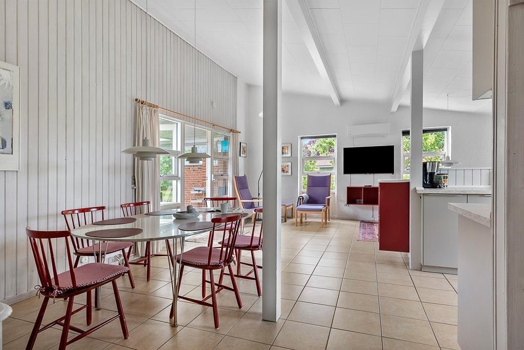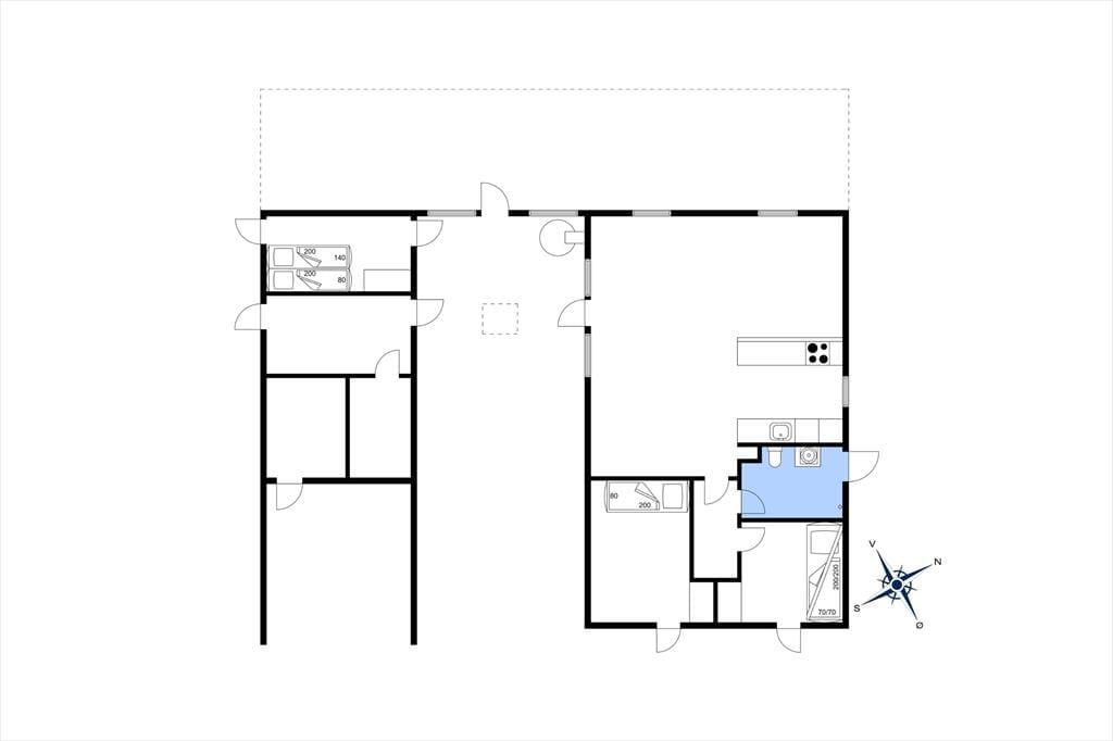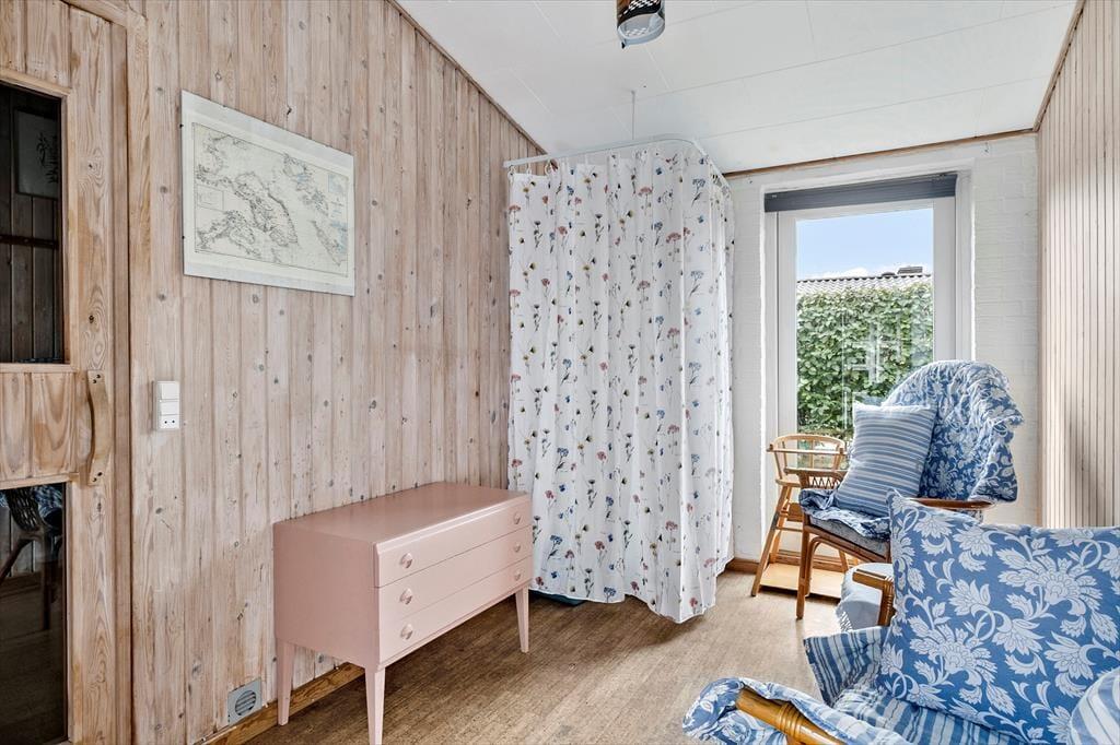 Dieses interessante Ferienhaus beinhaltet eine offen mit dem Wohn- und Essbereich kombinierte Küche. Im Wohnraum sorgt eine energiesparende Wärmepumpe für angenehme Temperaturen. Ein Badezimmer, ein Schlafraum mit zwei Einzelbetten und ein Schlafraum mit einem Etagenbett sind vorhanden. Beide Schlafräume bestechen mit einem eigenen Zugang zum Garten. Von der Terrasse gelangen Sie in das Nebengebäude, in dem Ihnen ein weiterer Schlafraum mit ein Dobbelbettbett und ein gesonderter Raum mit einer Sauna zur Verfügung stehen.