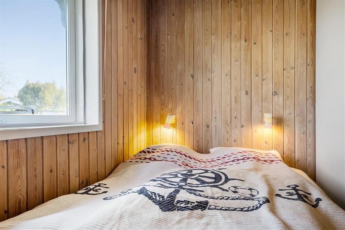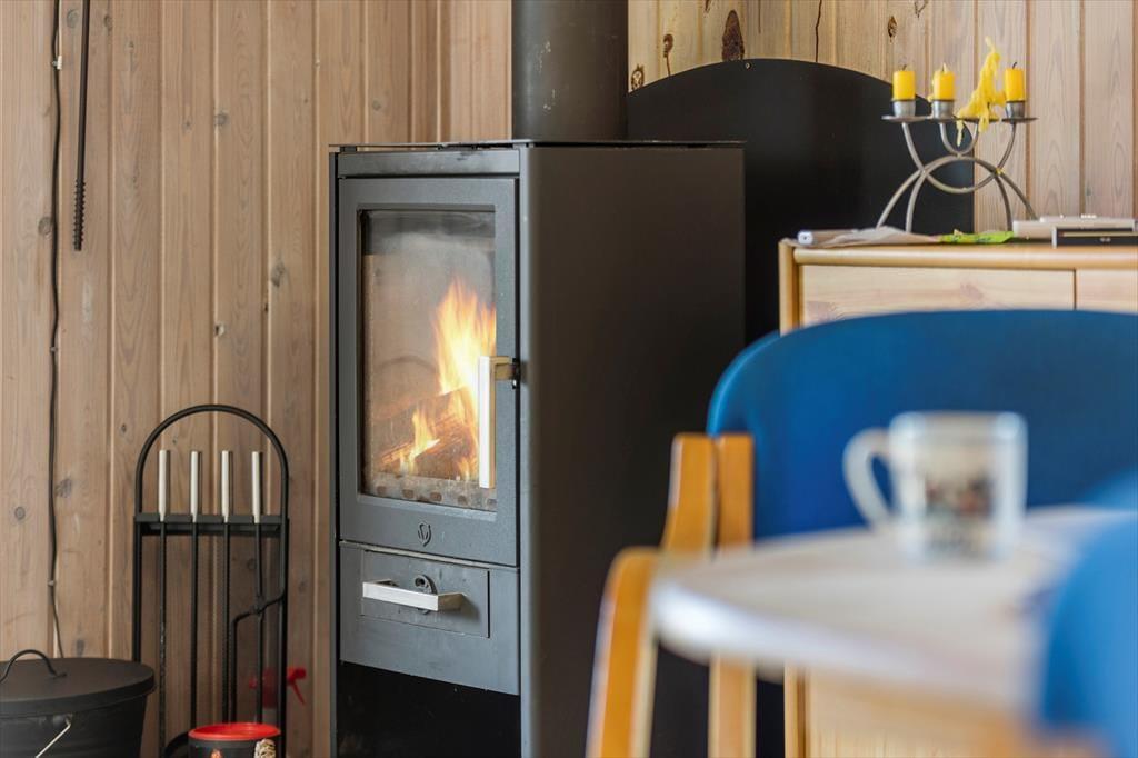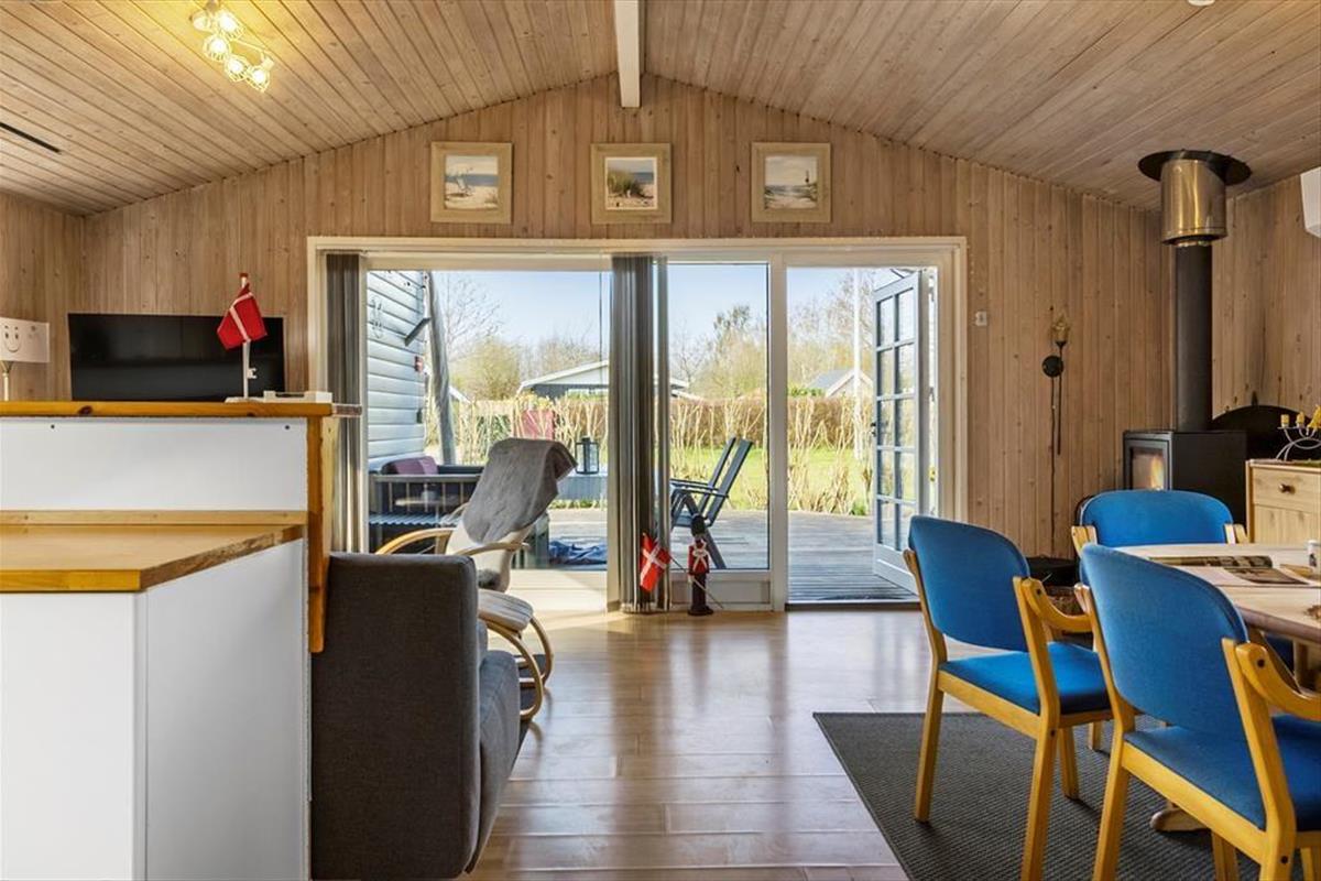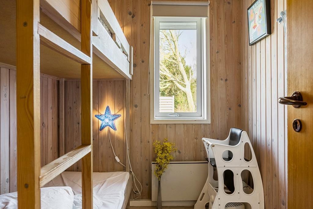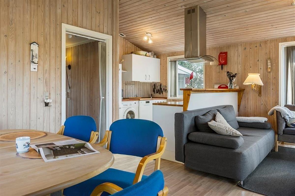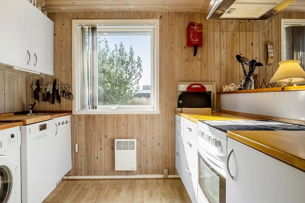 Gut eingerichtetes Ferienhaus mit zwei Schlafzimmern, jeweils mit einem Doppelbett, sowie einem Kinderzimmer mit Etagenbetten (Matratzen 70x200 cm). Darüber hinaus gibt es eine schöne, helle Küche in offener Verbindung mit dem Wohnzimmer, das über einen Essbereich, einen Holzofen, eine energiesparende Wärmepumpe und Zugang zur Terrasse verfügt. Außerdem gibt es ein Badezimmer, das im Sommer 2023 renoviert wurde.
