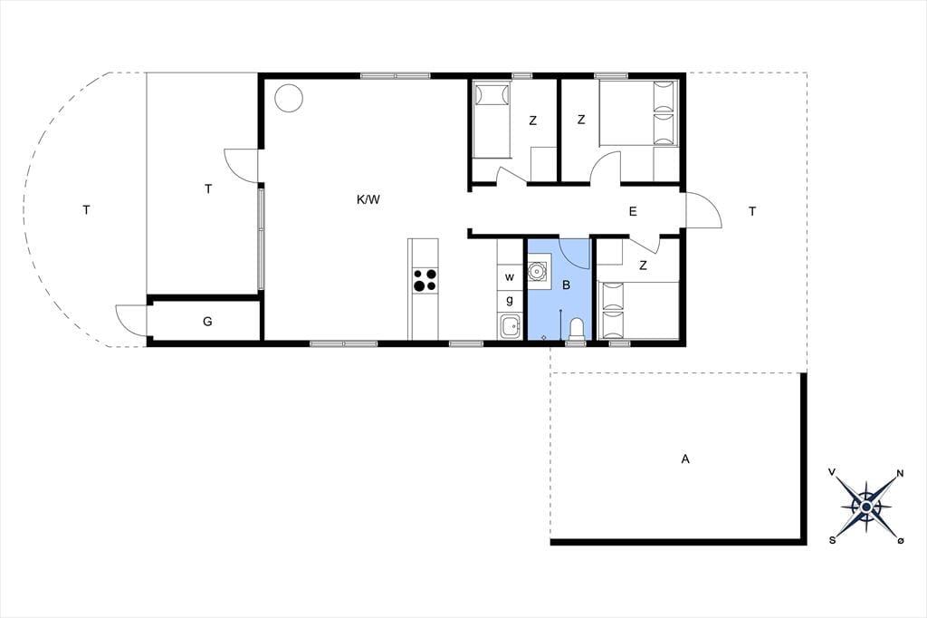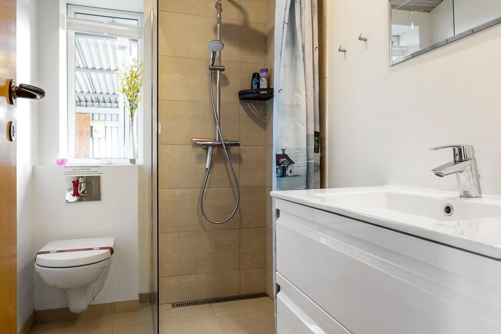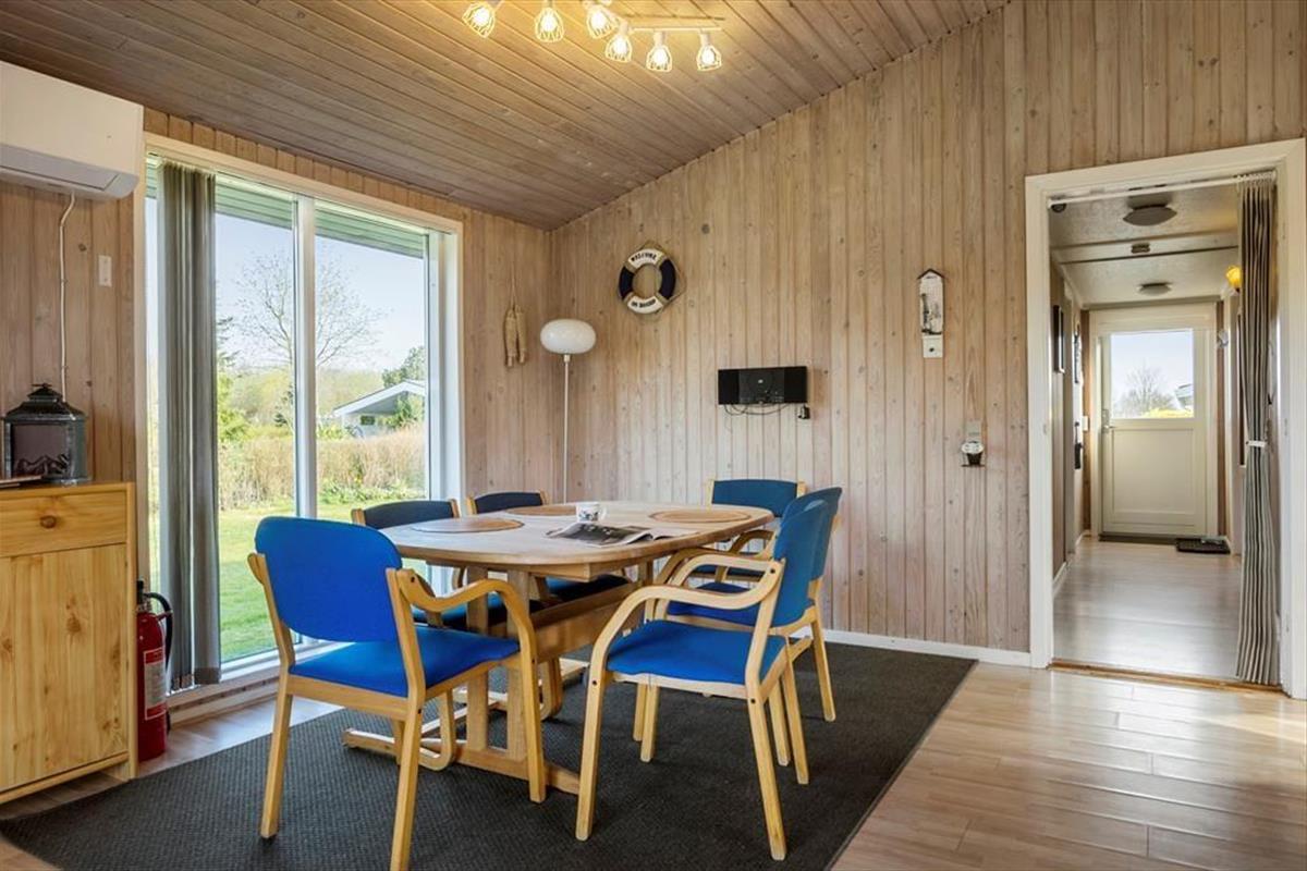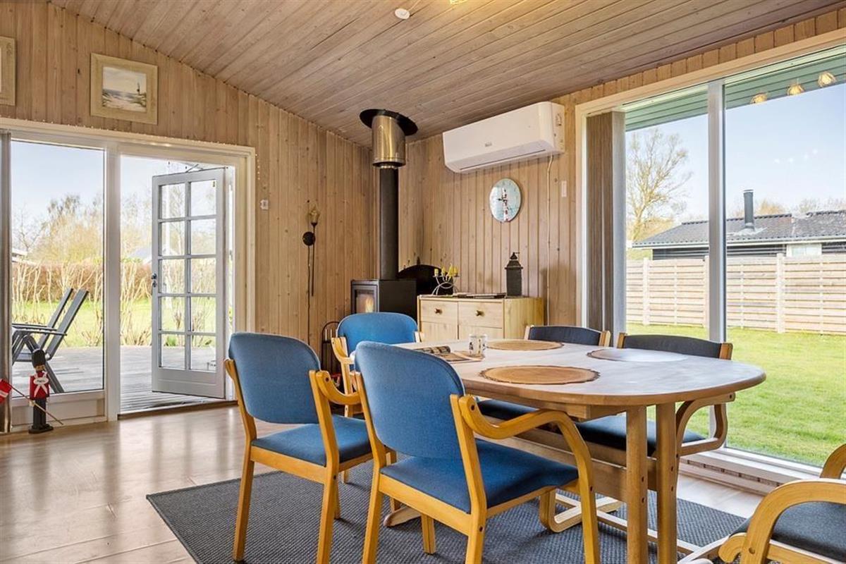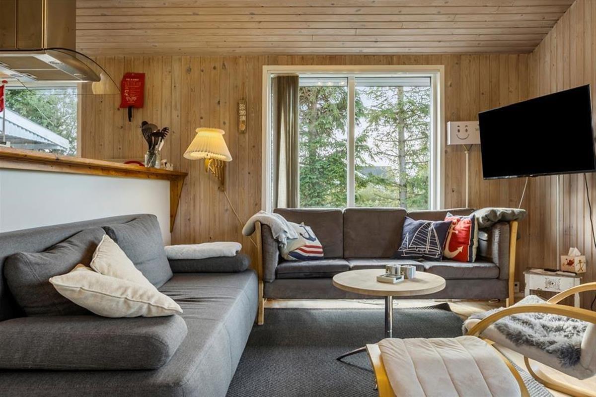 Gut eingerichtetes Ferienhaus mit zwei Schlafzimmern, jeweils mit einem Doppelbett, sowie einem Kinderzimmer mit Etagenbetten (Matratzen 70x200 cm). Darüber hinaus gibt es eine schöne, helle Küche in offener Verbindung mit dem Wohnzimmer, das über einen Essbereich, einen Holzofen, eine energiesparende Wärmepumpe und Zugang zur Terrasse verfügt. Außerdem gibt es ein Badezimmer, das im Sommer 2023 renoviert wurde.