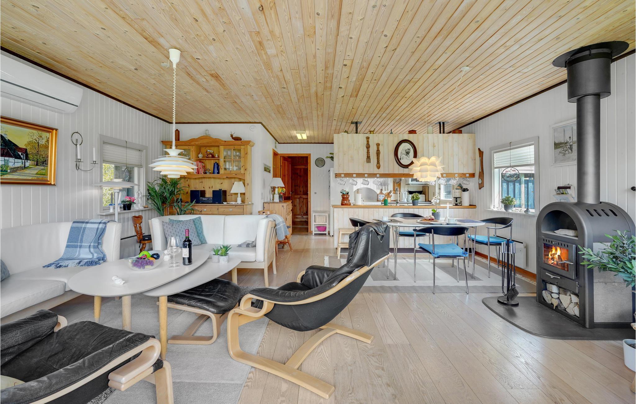 Het hart van het huis is de gezellige woonkamer met houtkachel, die in directe verbinding staat met de open keuken. Op kille dagen kun je opwarmen en ontspannen voor de open haard of in de sauna van het huis.