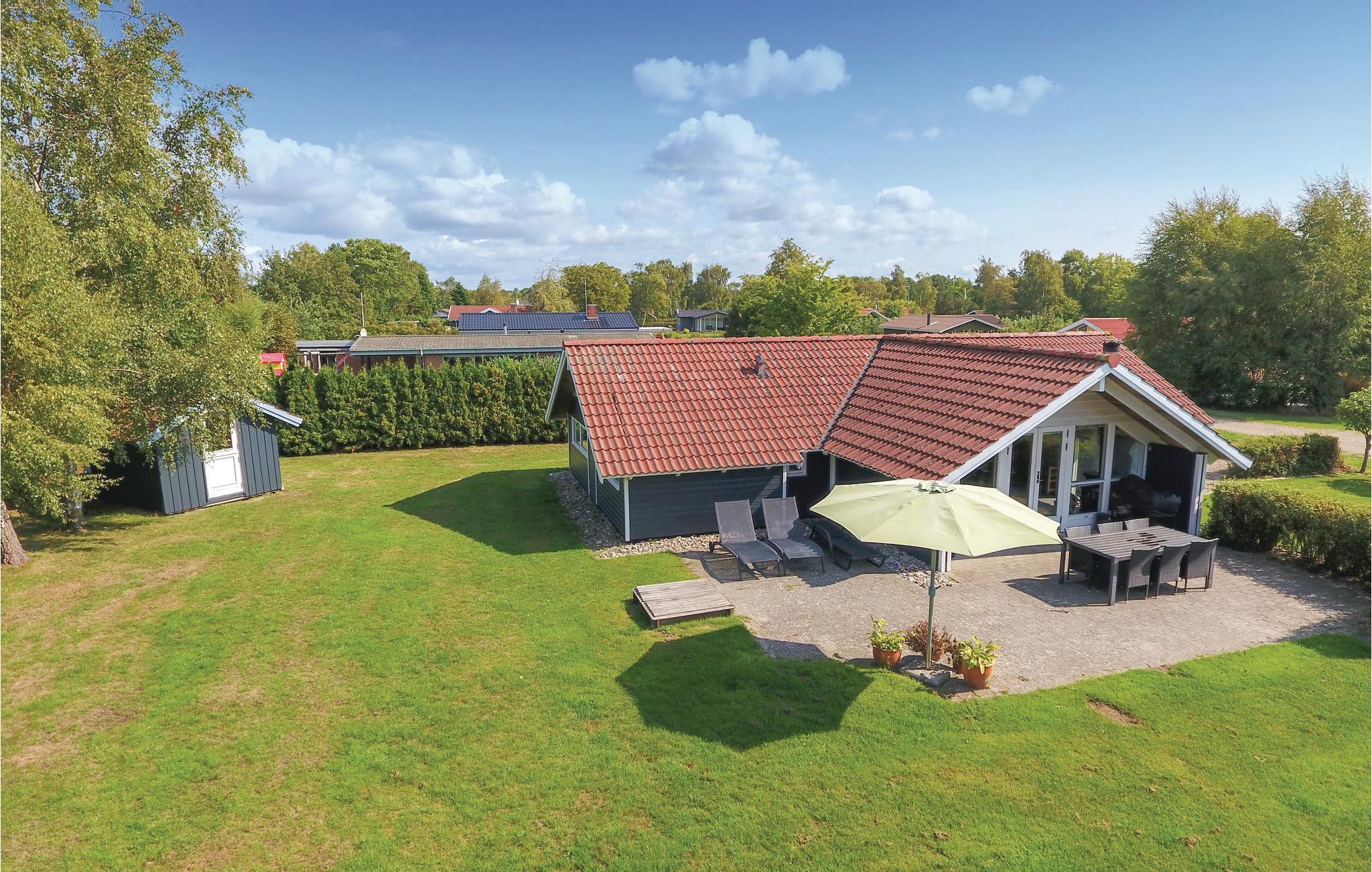 Dit klassieke houten vakantiehuis ligt in het vakantiegebied Skovmose.