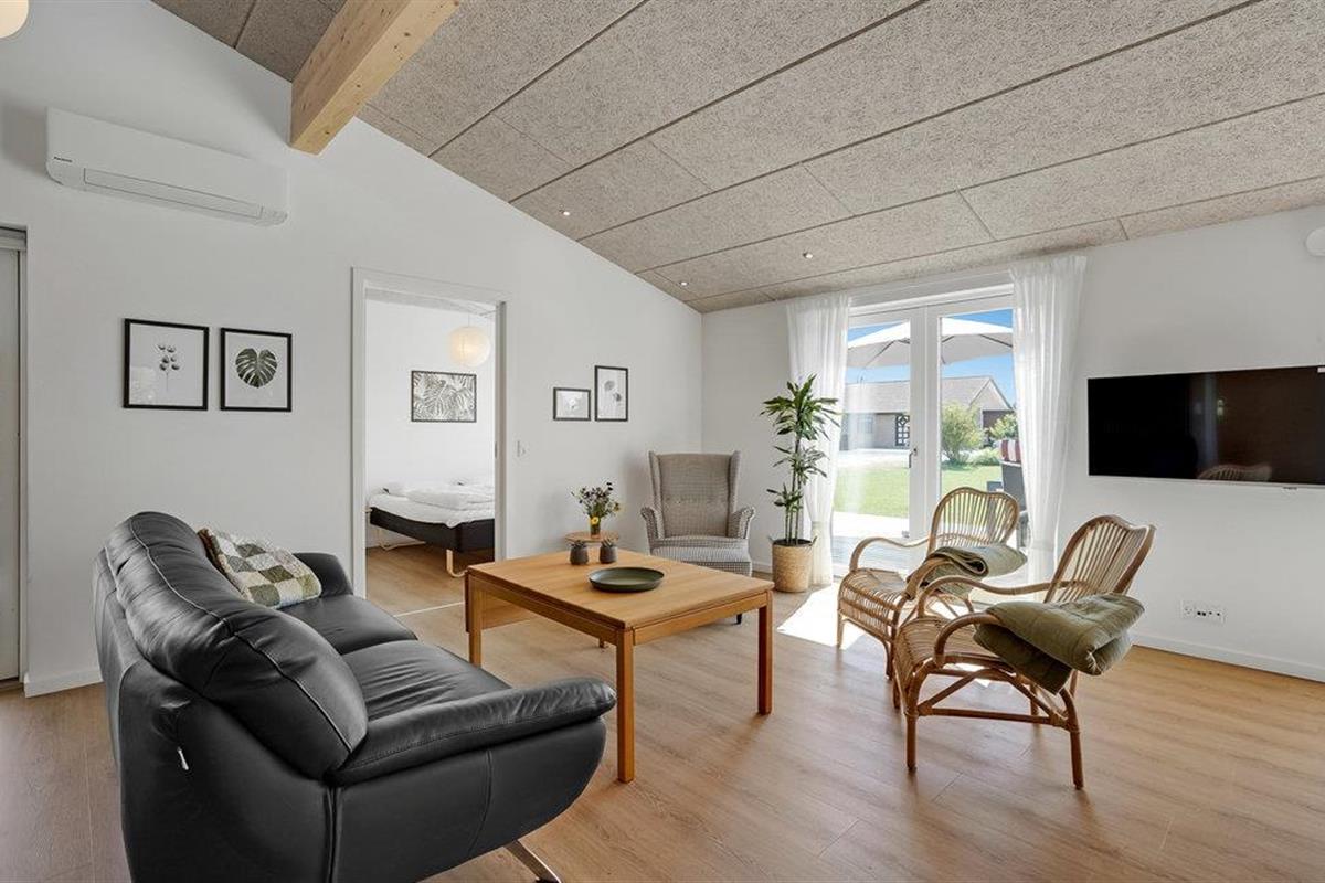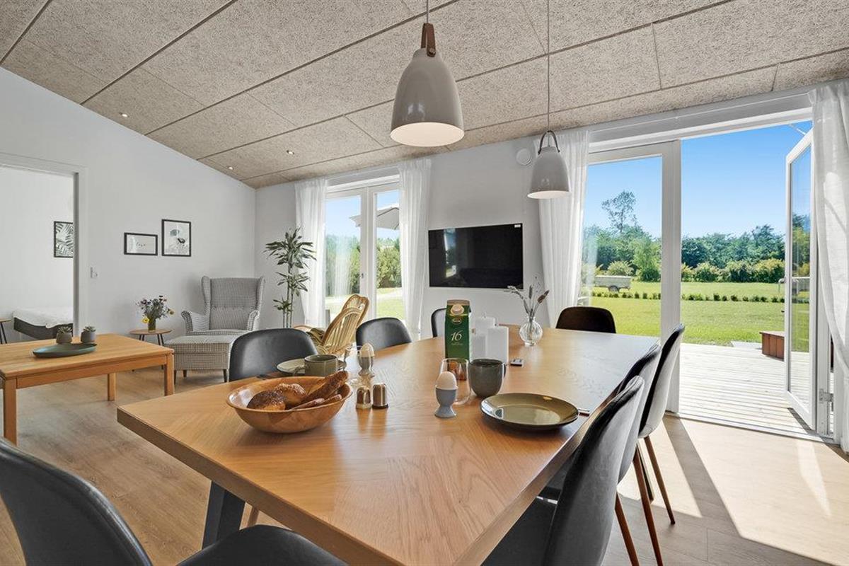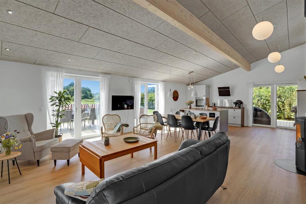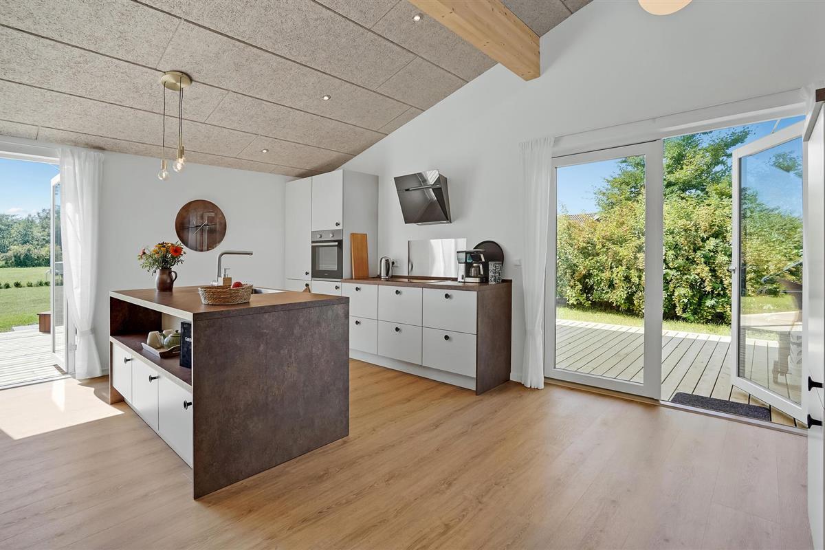 Welkom in Skovmose, waar een stijlvol, eigentijds ontworpen zomerhuis op u wacht. Op het terras met uitzicht op de tuin, in het Finse houten bad of in de open woonkamer voor de open haard - elk element van het interieur ademt een frisse, gezellige sfeer uit waardoor u echt kunt genieten.