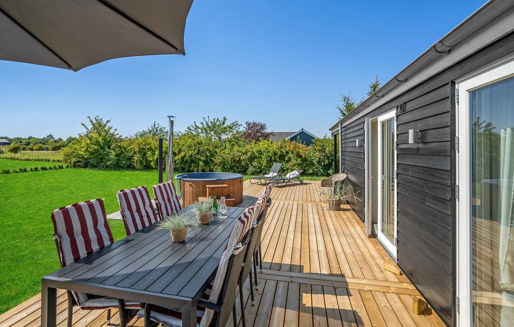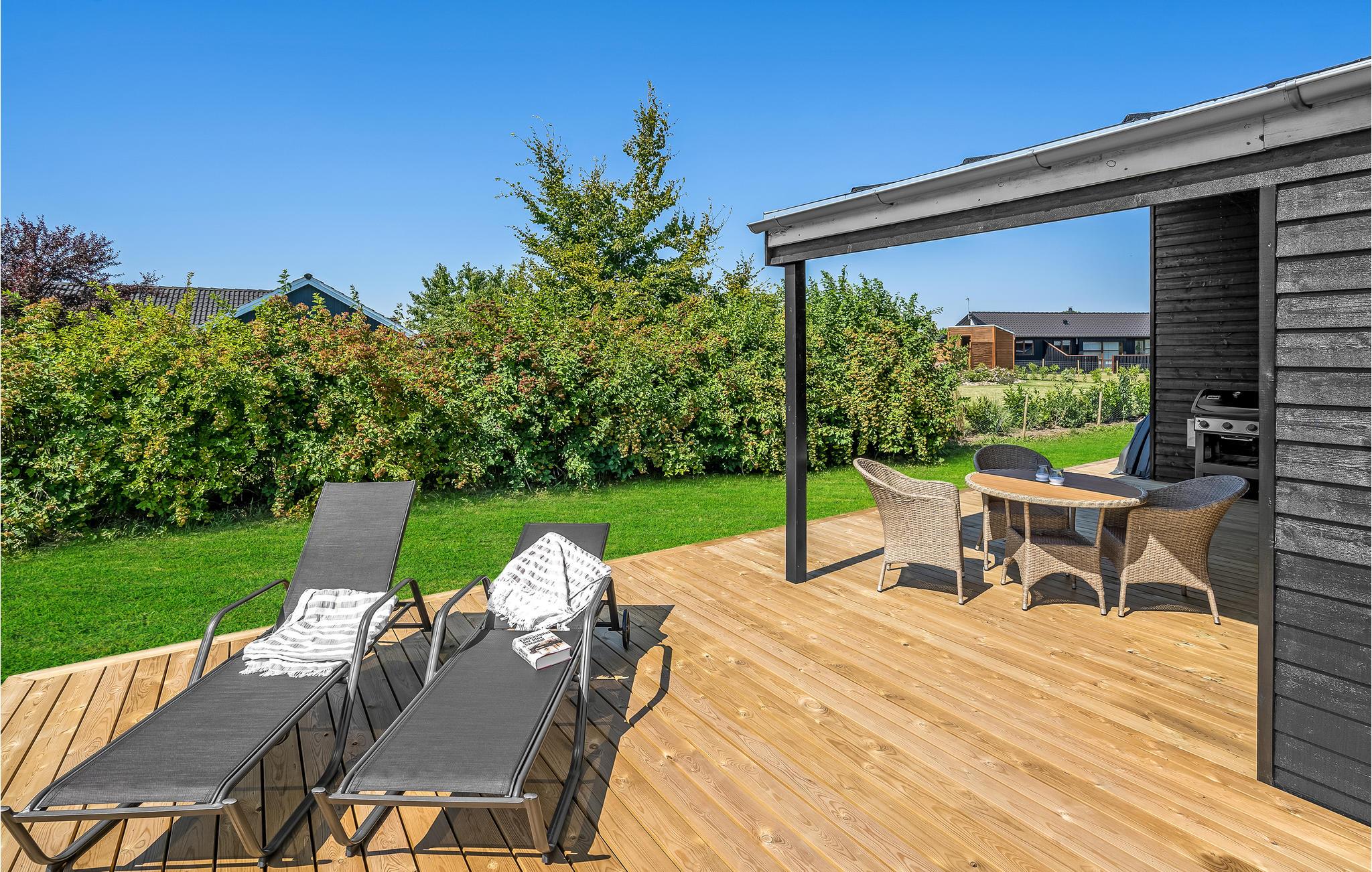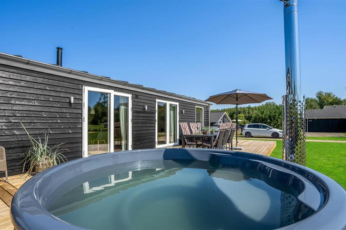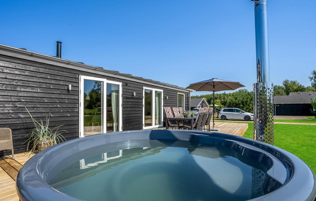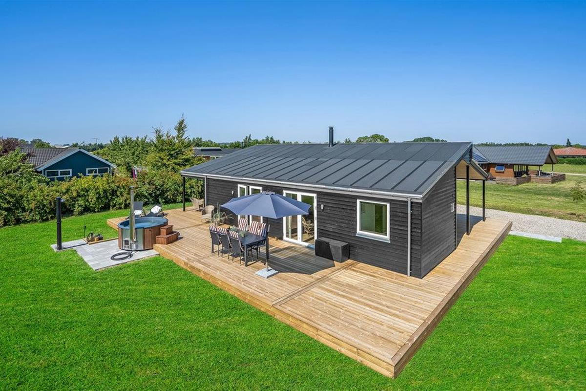 Modern vakantiehuis in Skovmose met Fins houten bad en tuin, perfect voor ontspanning dichtbij de Oostzee.