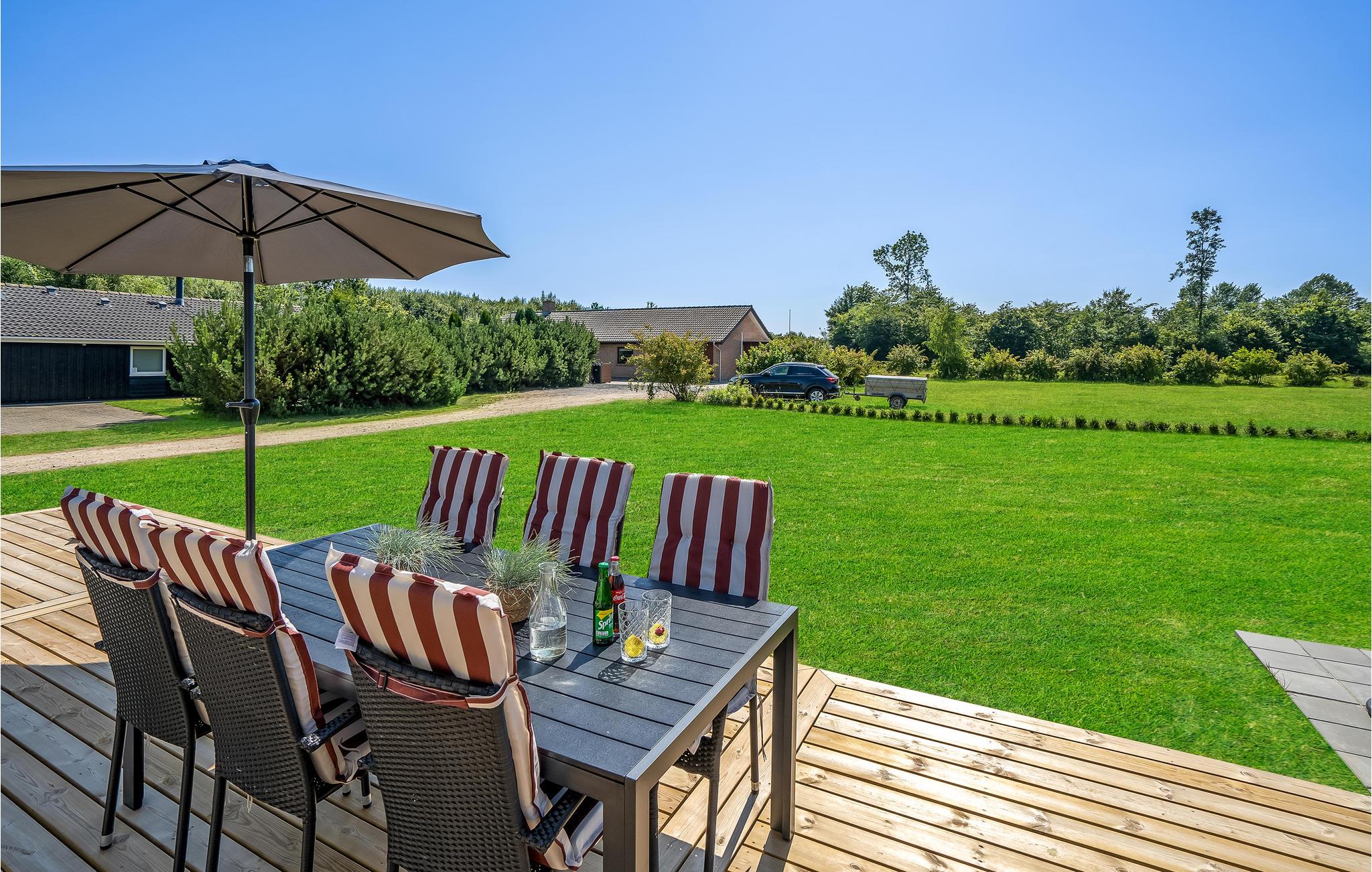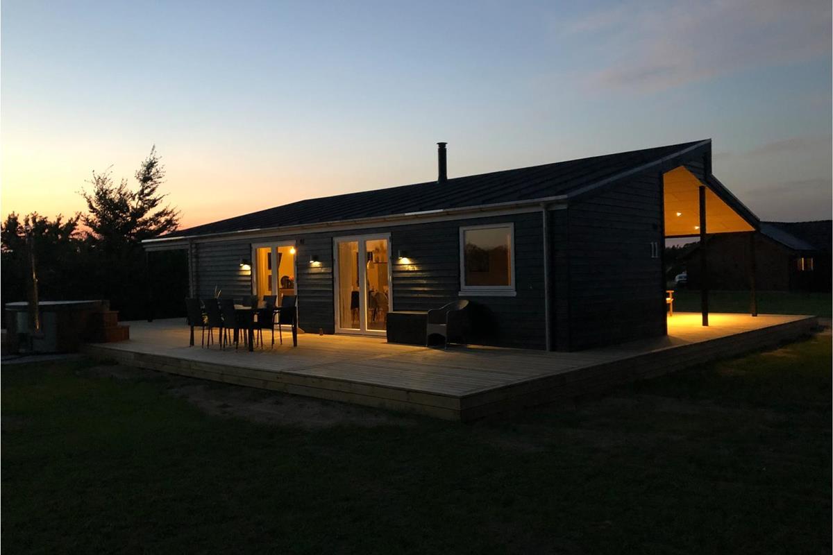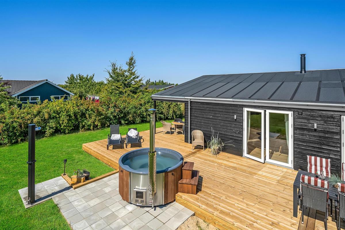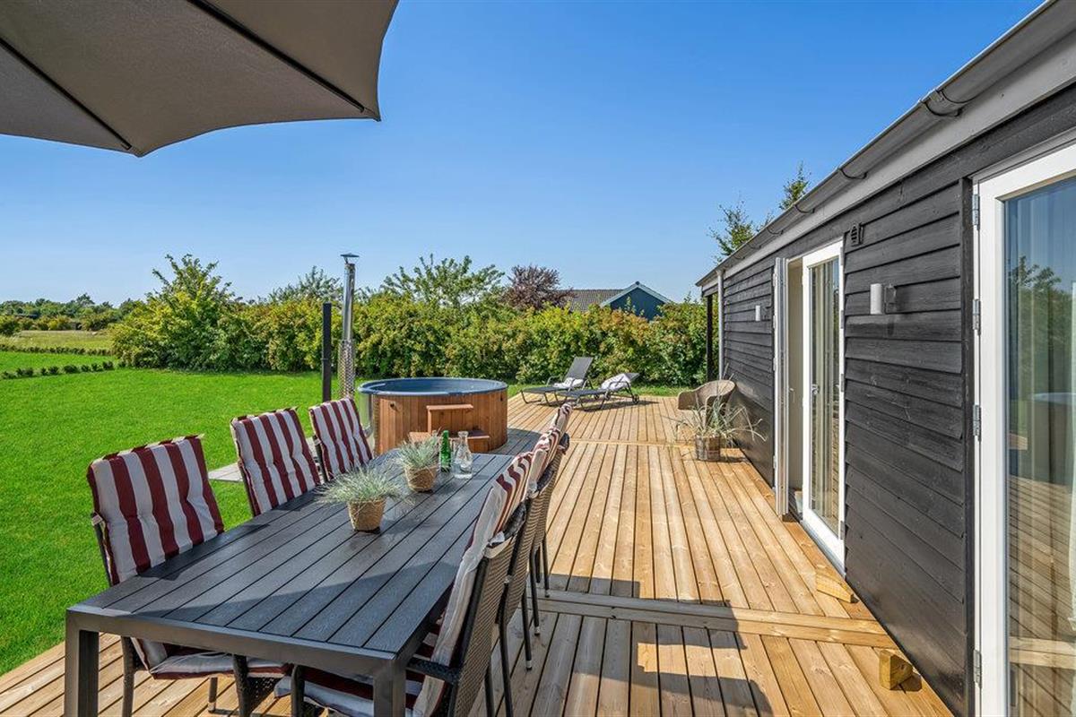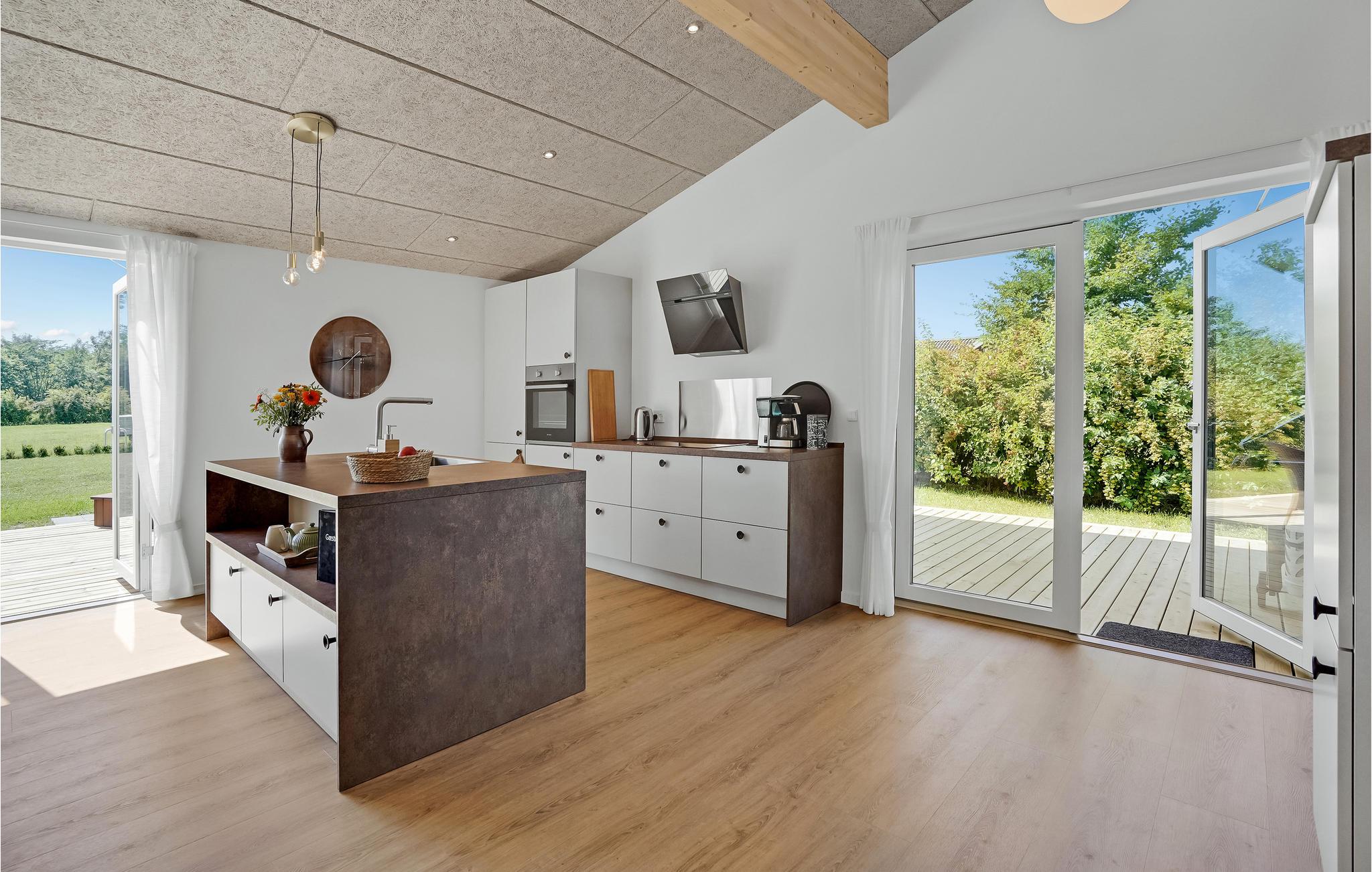 Modern vakantiehuis in Skovmose met Fins houten bad en tuin, perfect voor ontspanning dichtbij de Oostzee.