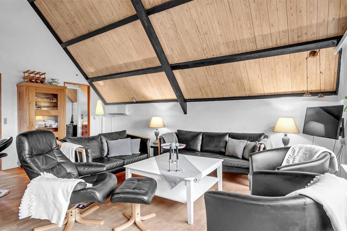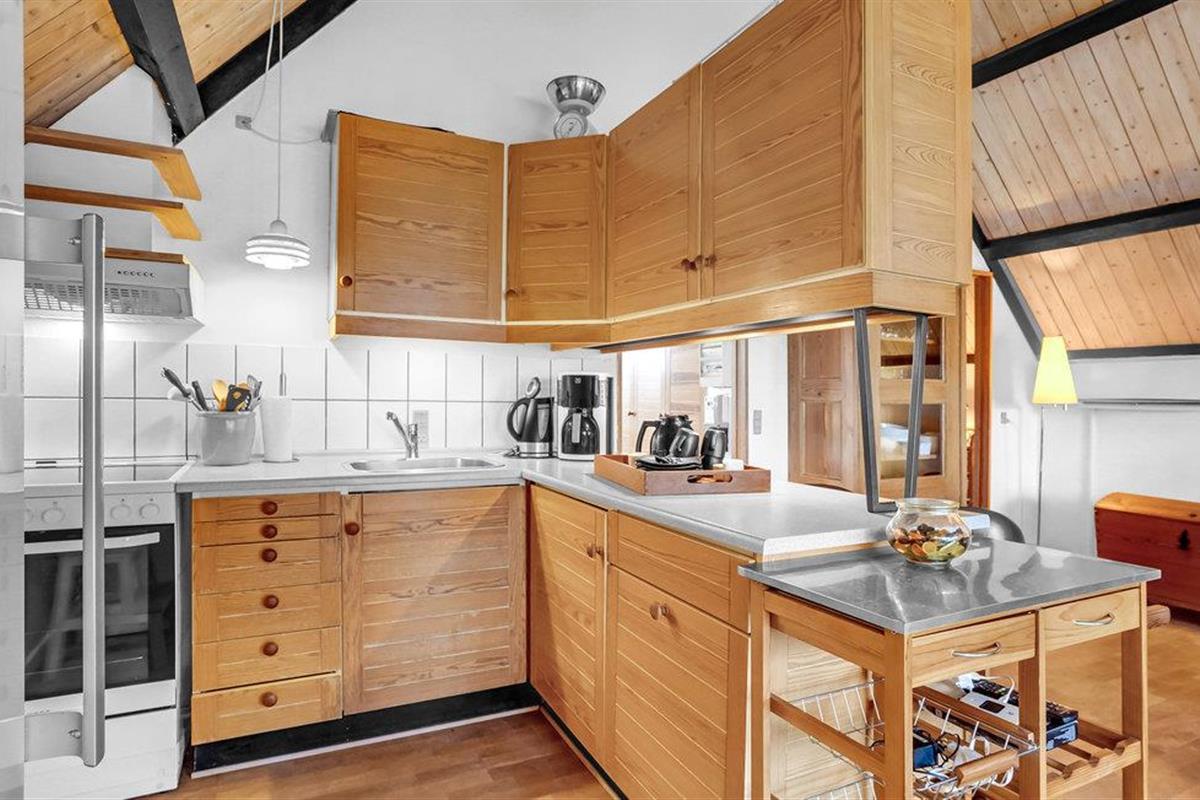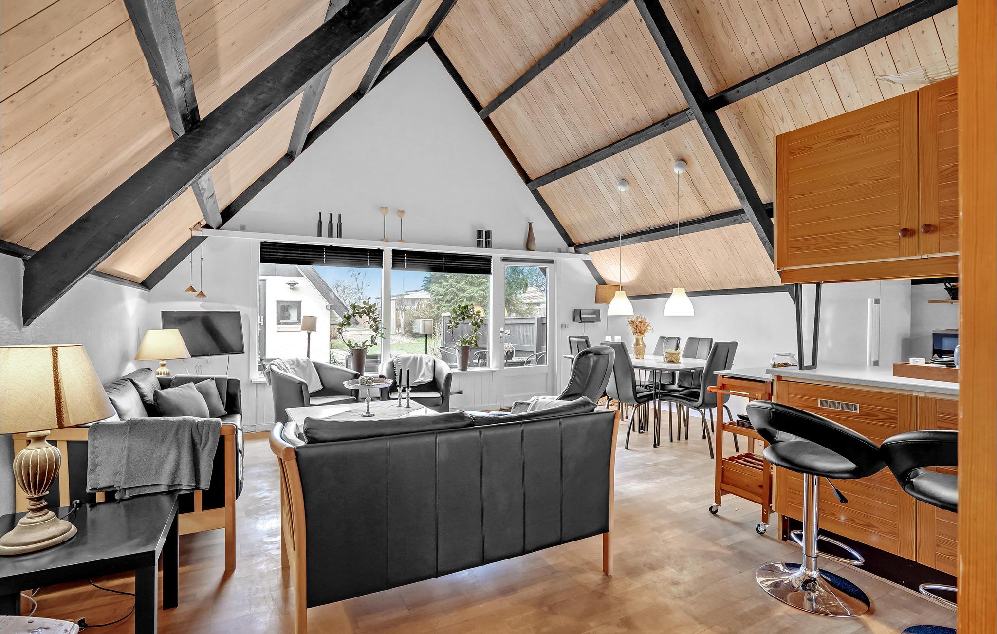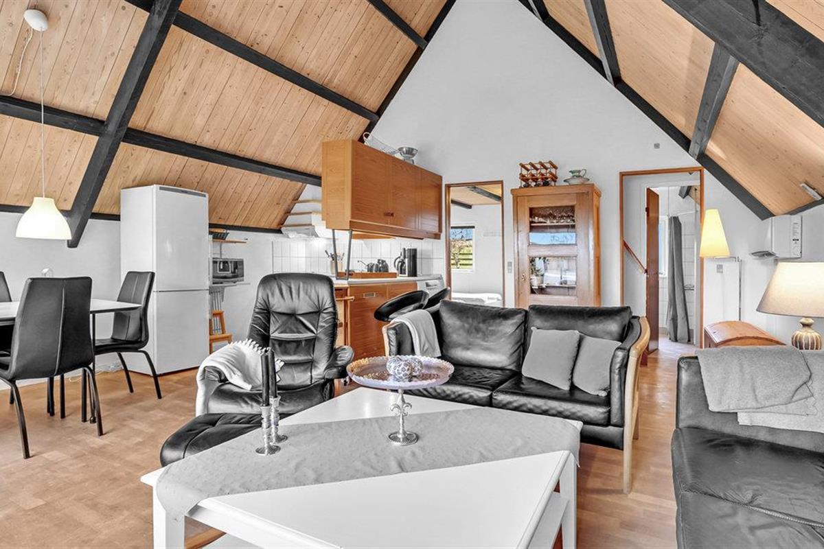 Wanneer u terugkeert van uw stranduitstapje, wacht uw vakantiehuis u op in een ontspannen sfeer. Het hart van het huiselijke leven hier is de open keuken-woonkamer, die hoog onder het puntdak is gebouwd en een bijzondere gezelligheid uitstraalt. U kunt ook buiten op het terras dineren. Gezellige slaapkamers en de sauna ronden het feelgoodpakket af.
