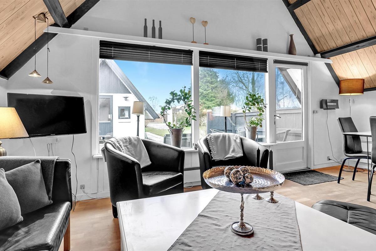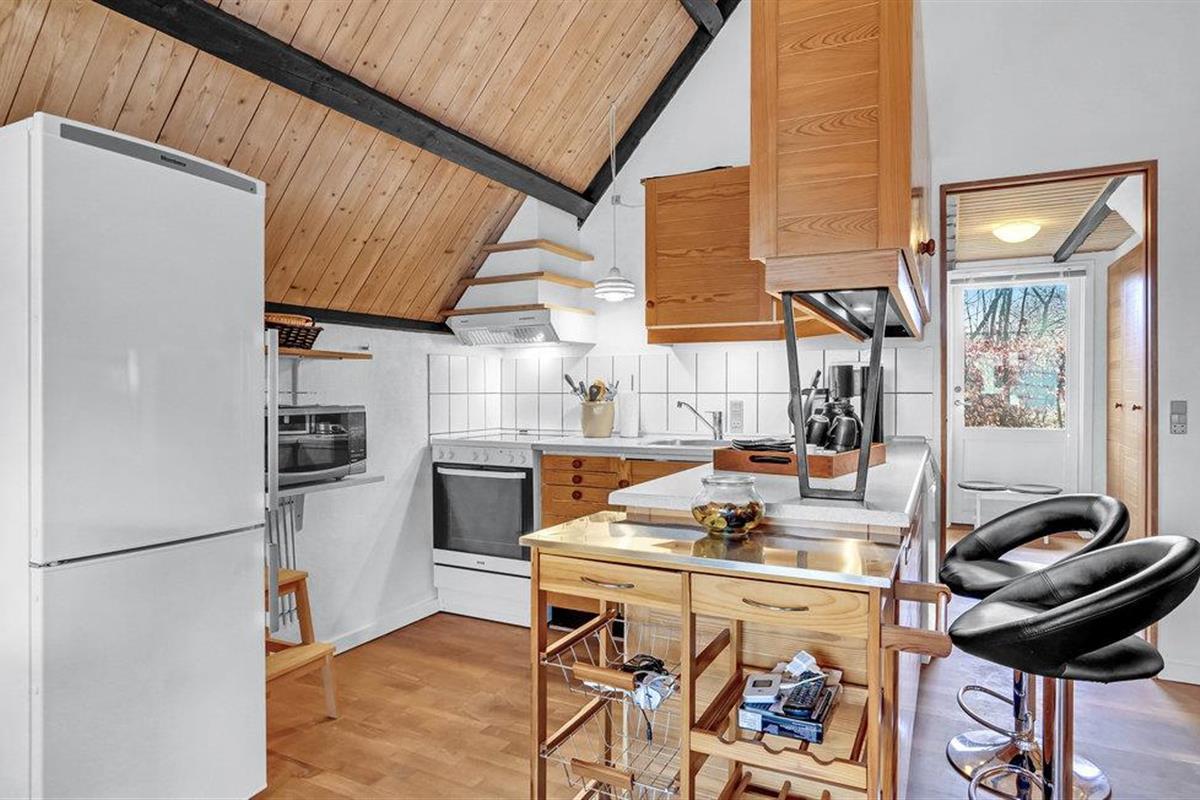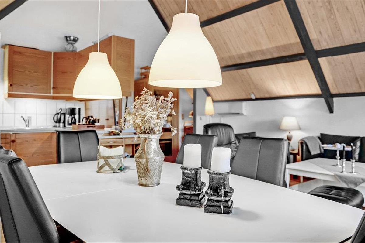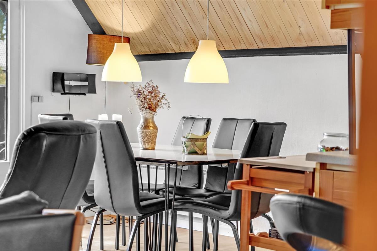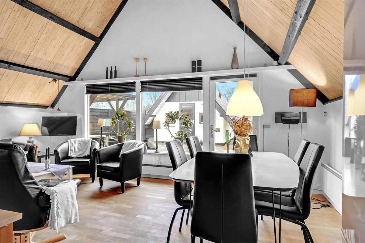Wanneer u terugkeert van uw stranduitstapje, wacht uw vakantiehuis u op in een ontspannen sfeer. Het hart van het huiselijke leven hier is de open keuken-woonkamer, die hoog onder het puntdak is gebouwd en een bijzondere gezelligheid uitstraalt. U kunt ook buiten op het terras dineren. Gezellige slaapkamers en de sauna ronden het feelgoodpakket af.