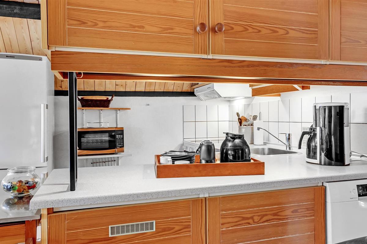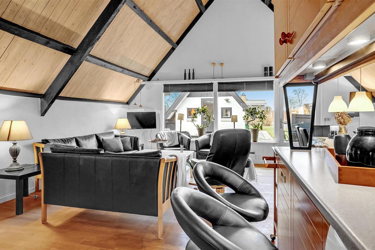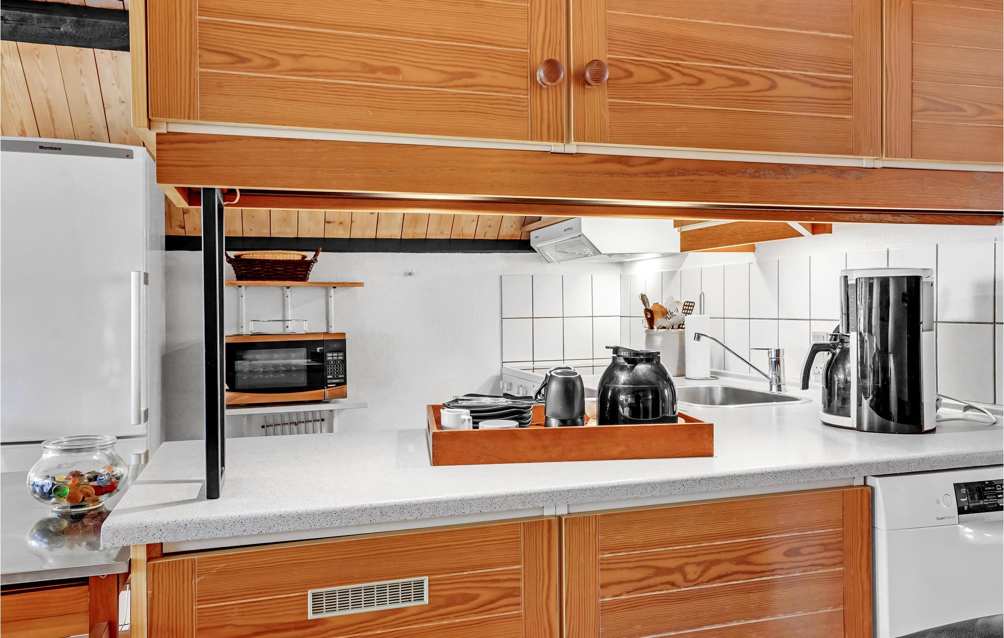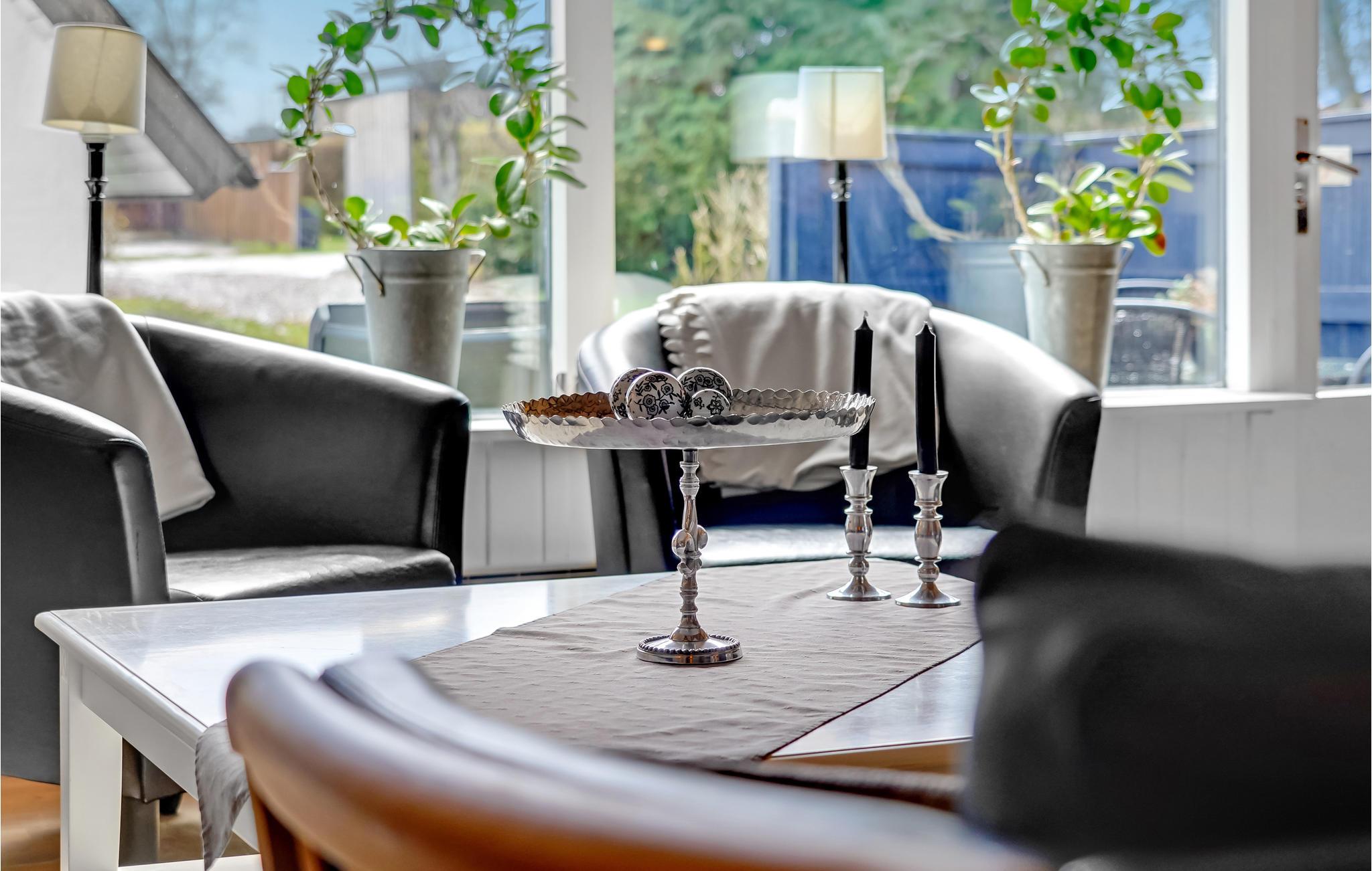 Wanneer u terugkeert van uw stranduitstapje, wacht uw vakantiehuis u op in een ontspannen sfeer. Het hart van het huiselijke leven hier is de open keuken-woonkamer, die hoog onder het puntdak is gebouwd en een bijzondere gezelligheid uitstraalt. U kunt ook buiten op het terras dineren. Gezellige slaapkamers en de sauna ronden het feelgoodpakket af.