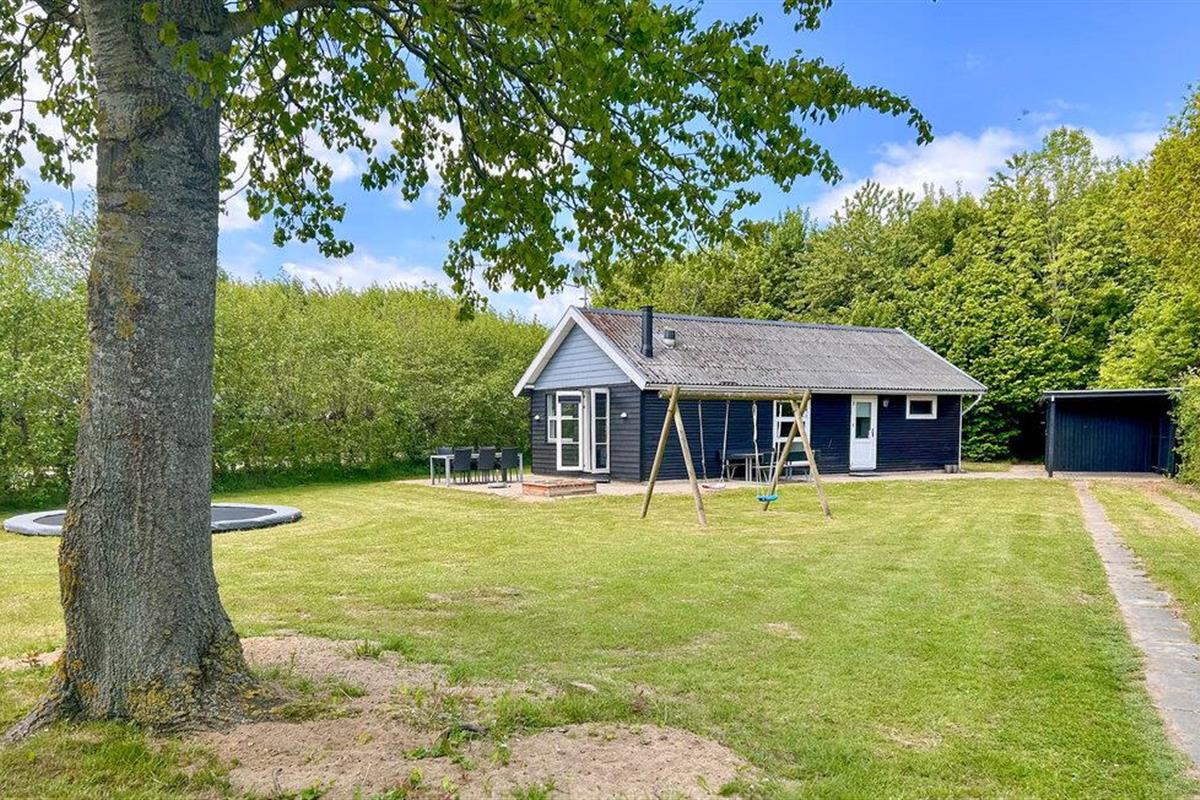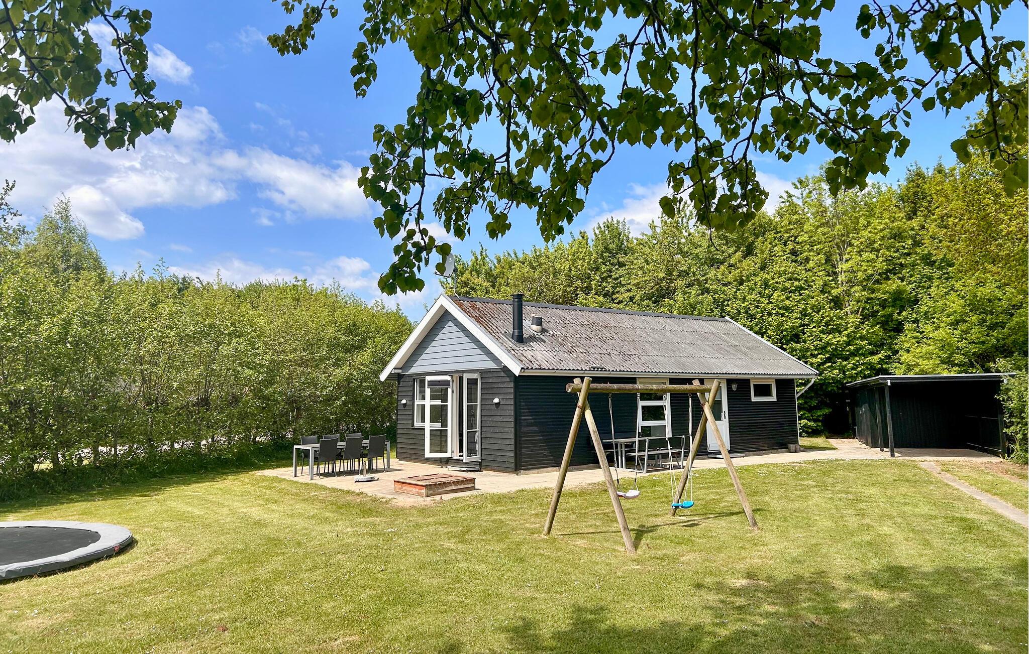 Gezinsvriendelijk vakantiehuis nabij het zandstrand van Skovmose Strand, met ruime tuin en moderne voorzieningen.