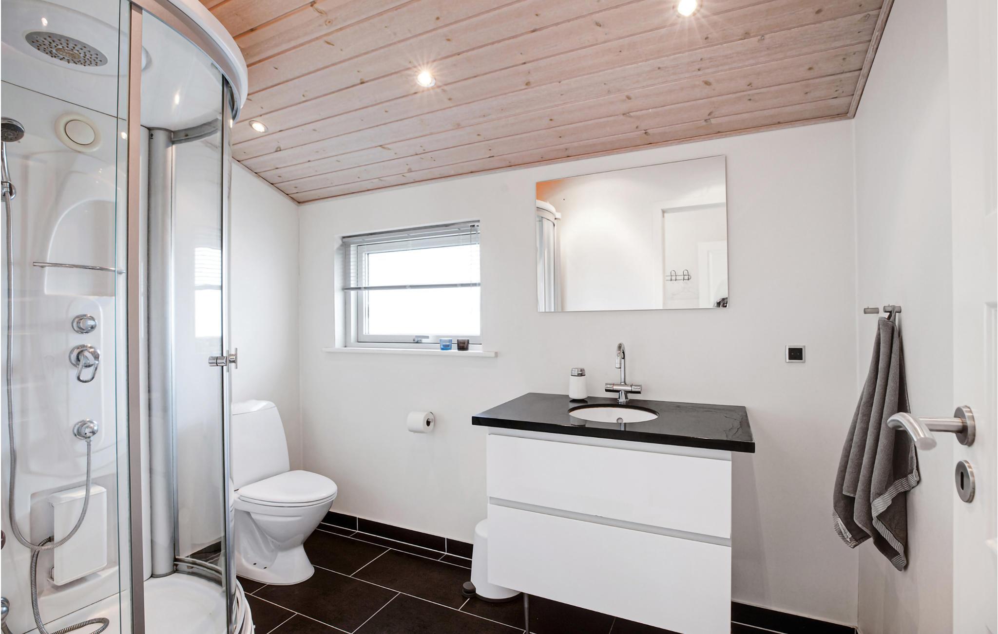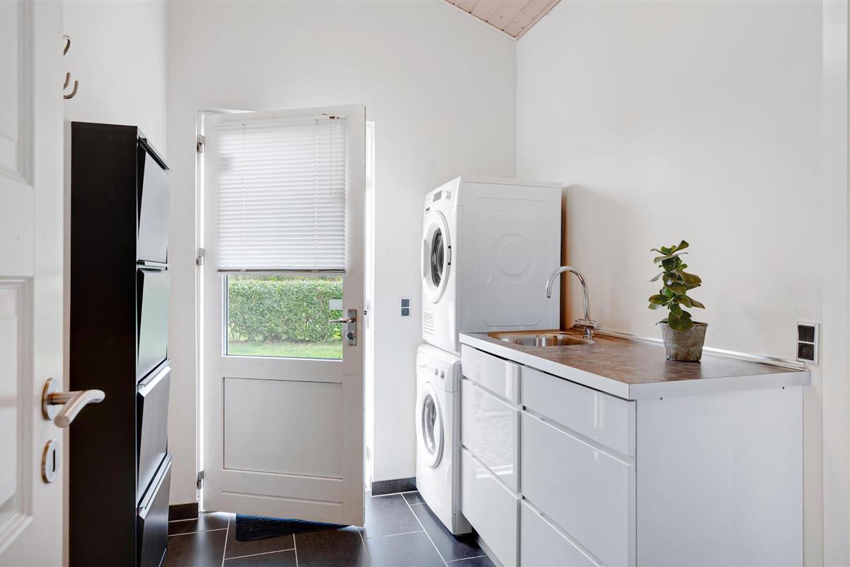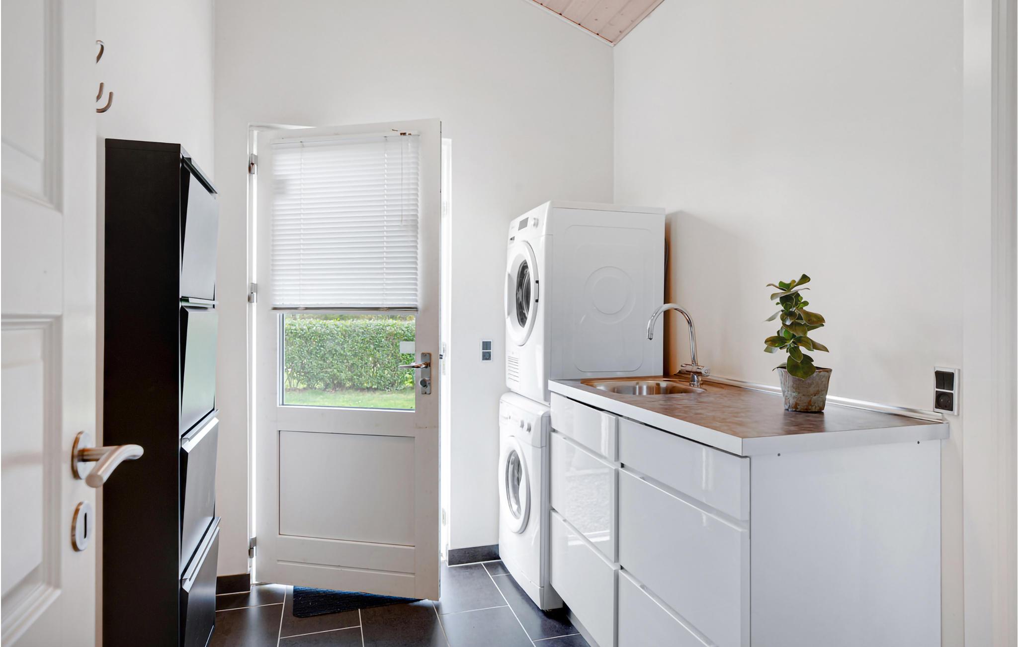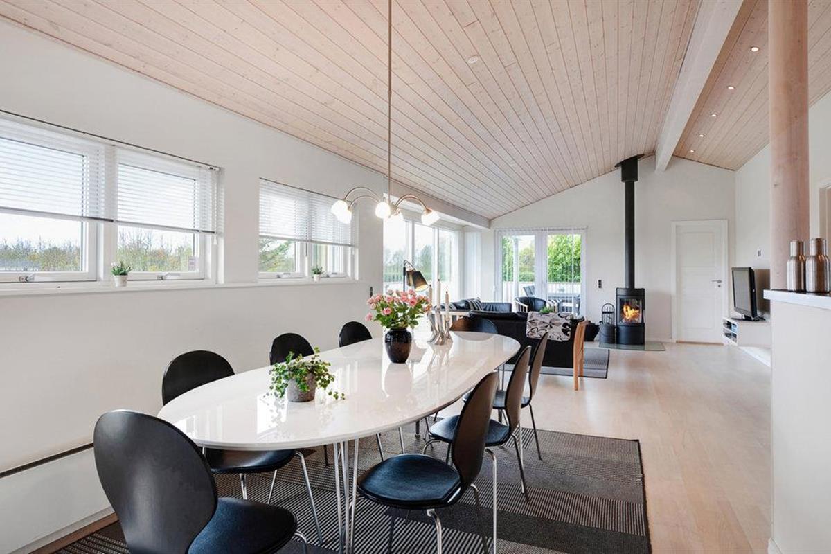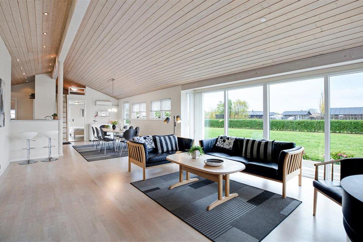 Het uitnodigende vakantiehuis wacht op zijn gasten in Skovsmose Strand en biedt ruimte voor maximaal 8 personen met 3 slaapkamers uitgerust met comfortabele tweepersoonsbedden en 2 badkamers. Door de ramen van vloer tot plafond in de woonkamer heeft u een prachtig uitzicht op het groen. Maak het uzelf op koele avonden comfortabel bij de open haard en geniet van de gezellige sfeer.