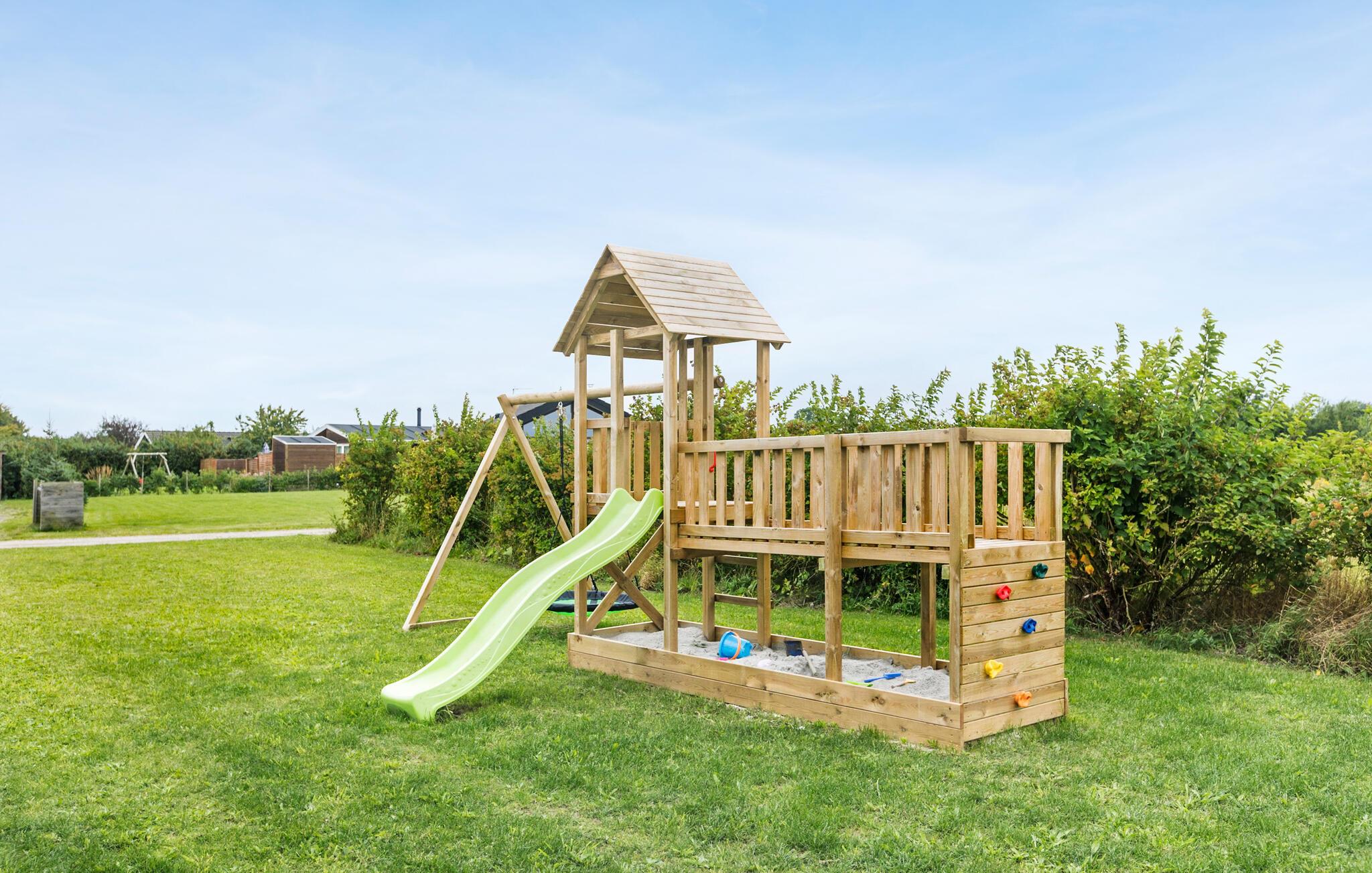 Je ruime vakantiehuis biedt ruimte voor het hele gezin en ligt in een rustige en gezinsvriendelijke omgeving, op slechts een klein stukje lopen van het kindvriendelijke zandstrand. Begin je dag met een gezellig ontbijt op het terras en laat je kinderen daarna spelen met de speeltoestellen in de tuin. Profiteer van de nabijheid van het strand om samen te ontspannen aan zee, zandkastelen te bouwen of te zwemmen in het heldere water.