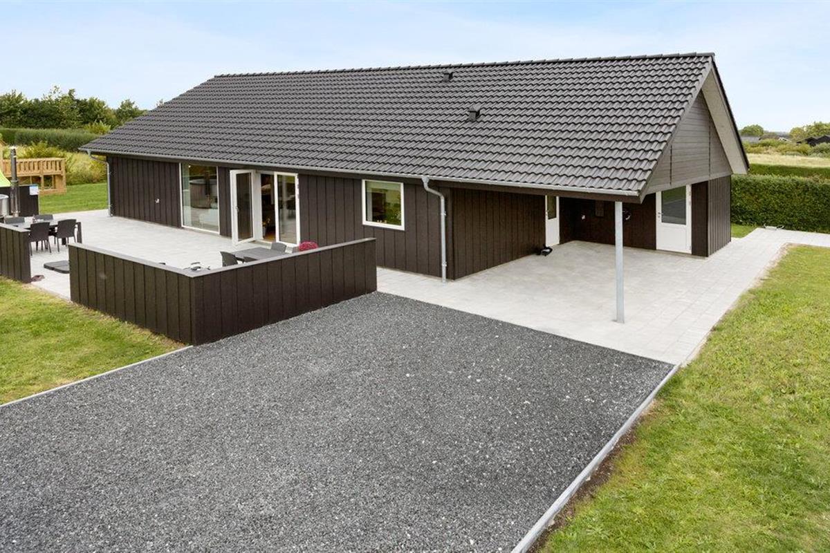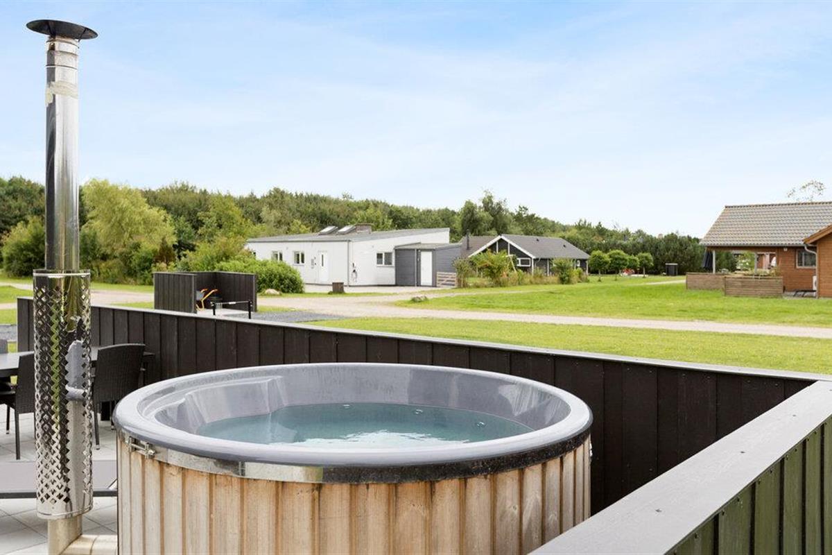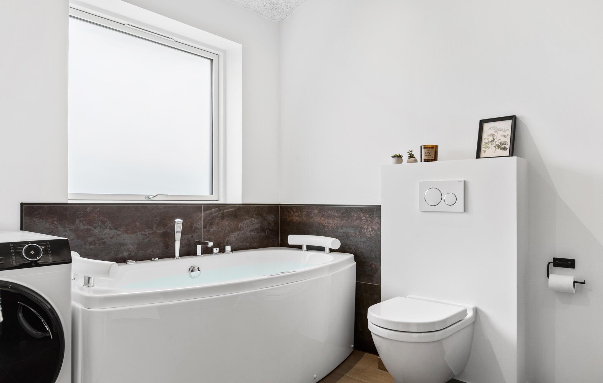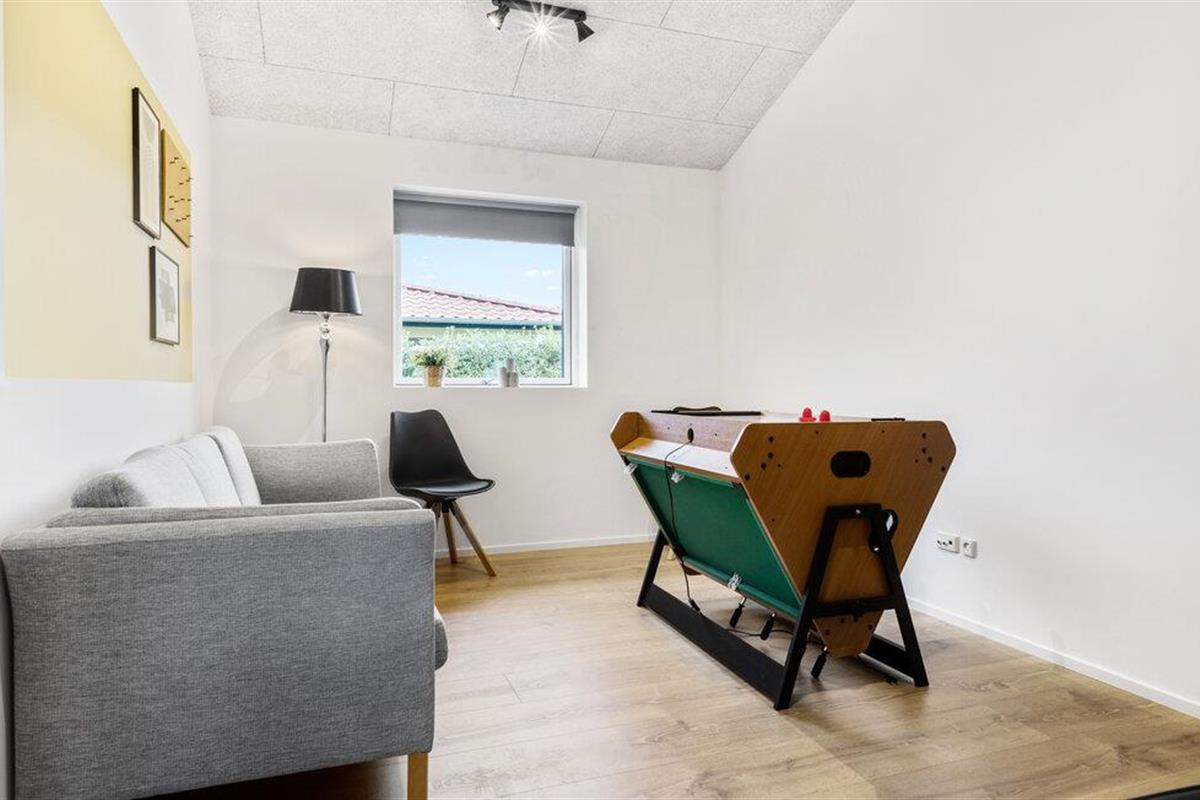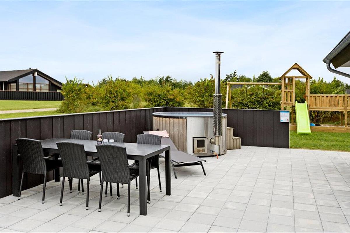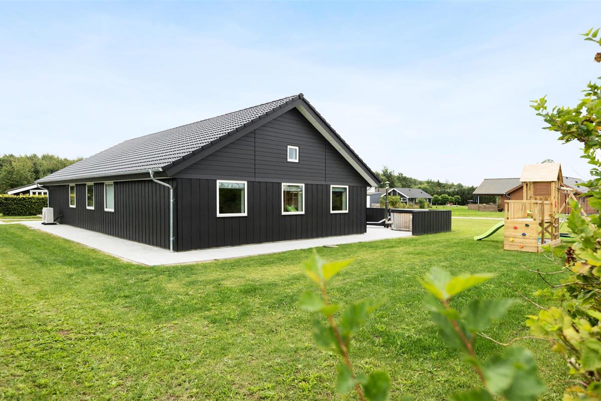 Modern familiehuis nabij het kindvriendelijke Skovmose Strand met hottub, spelvoorzieningen en nabijheid van zee.