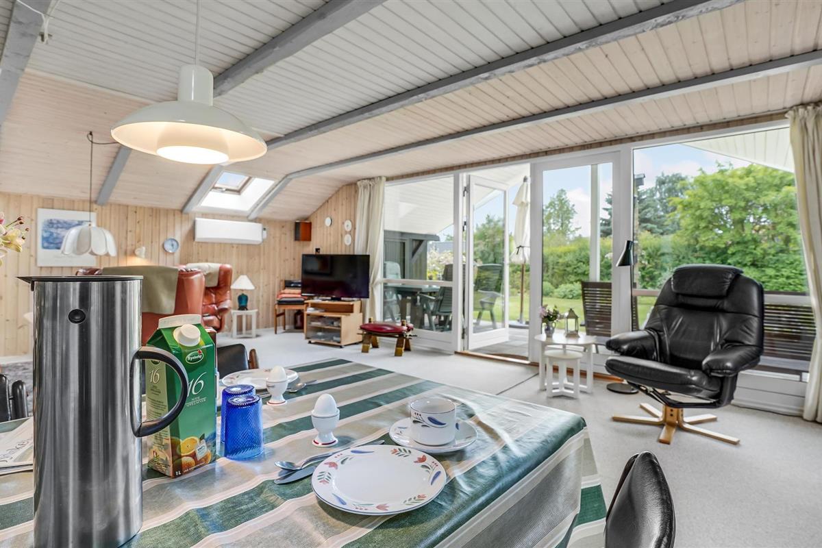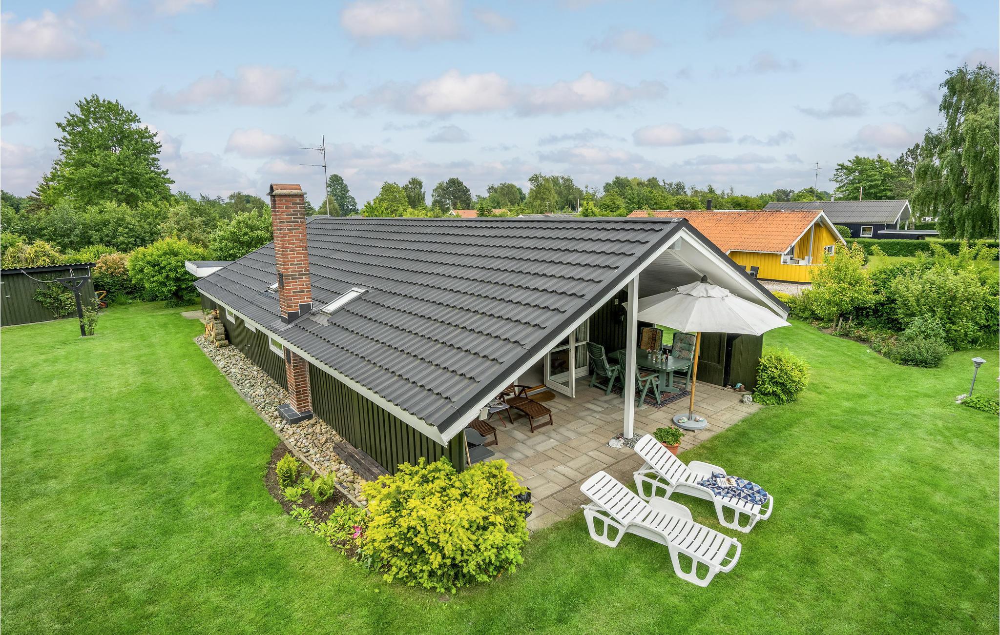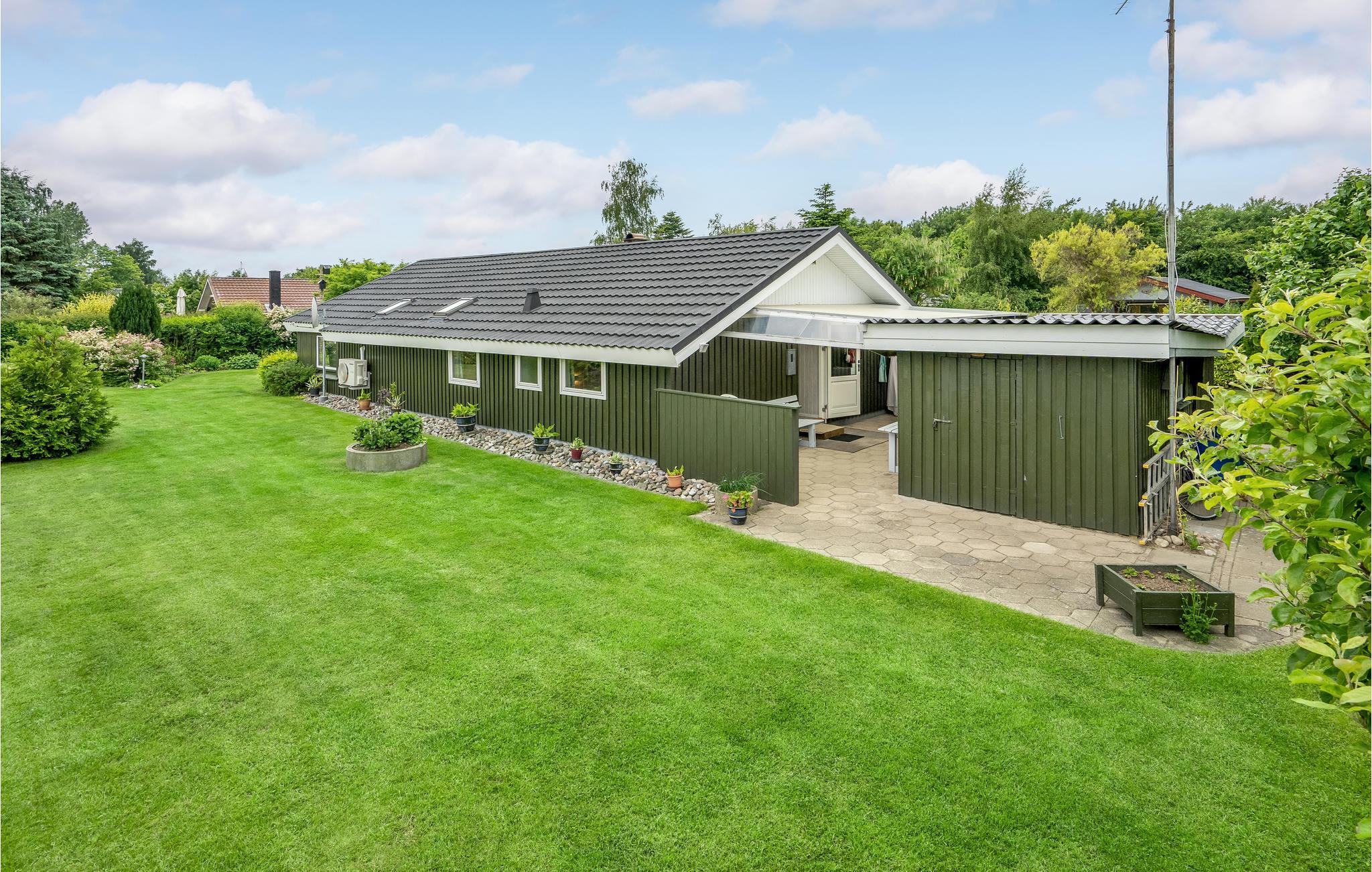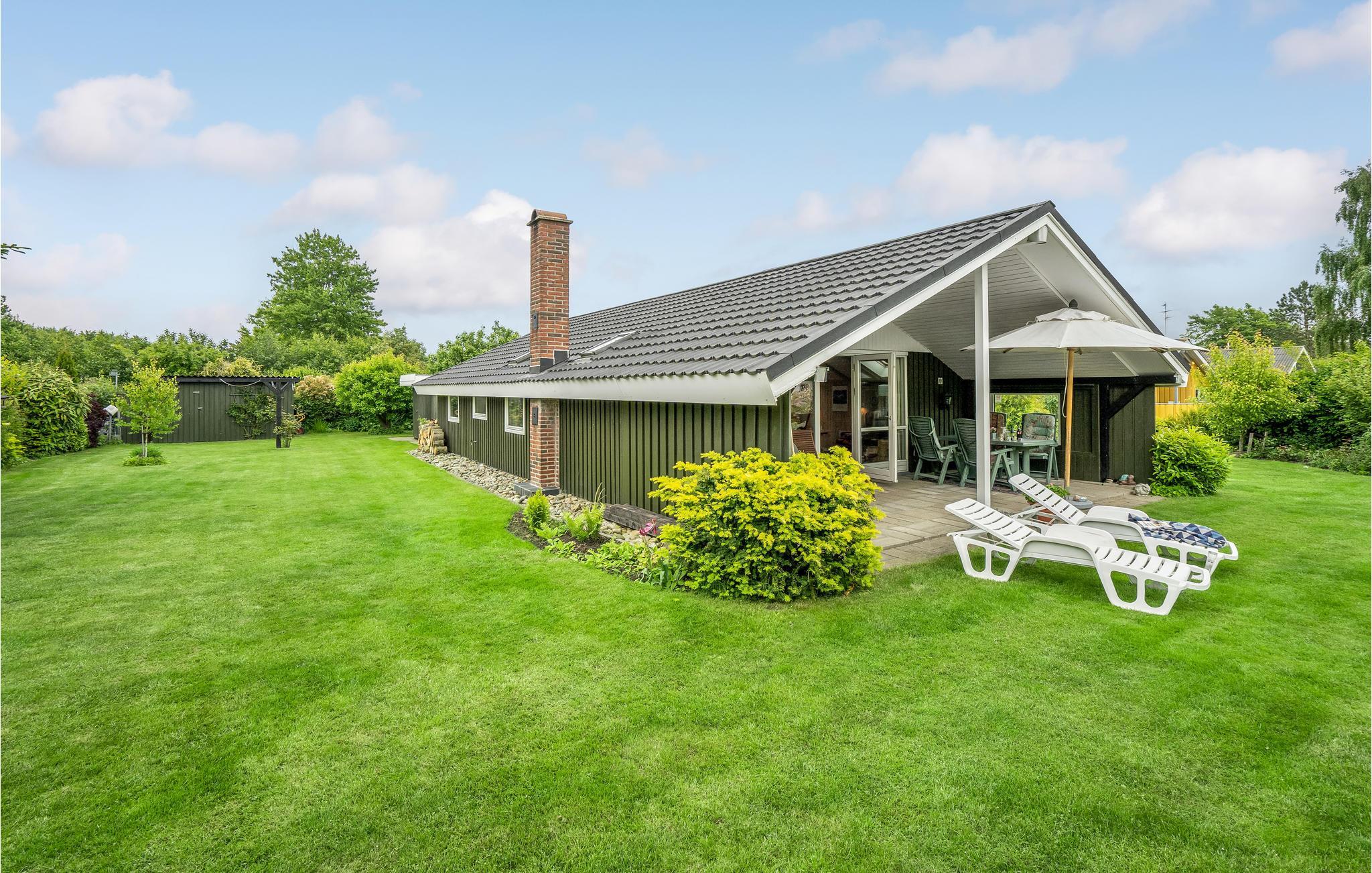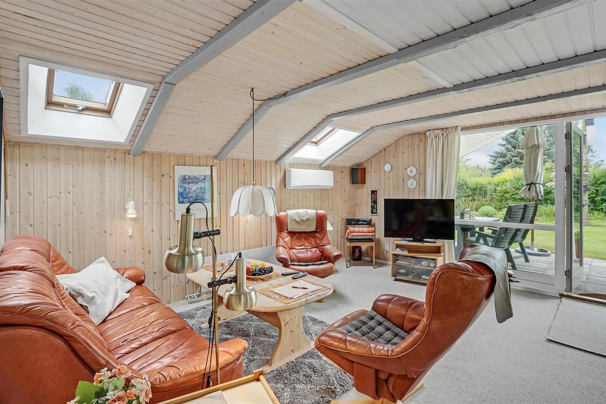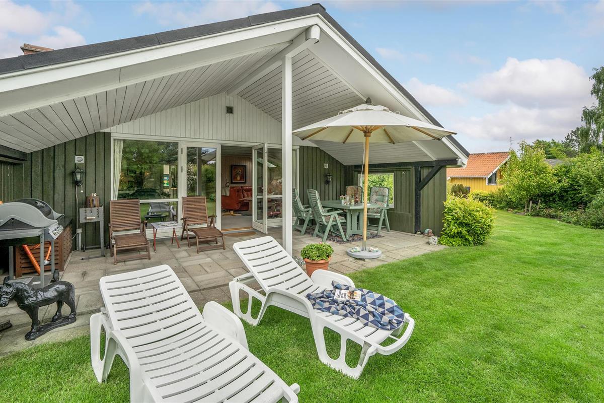 Gezellig vakantiehuis nabij Skovmose Strand met ruime tuin, houten terras en prachtig uitzicht op de natuur.