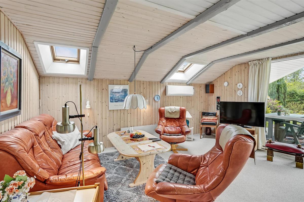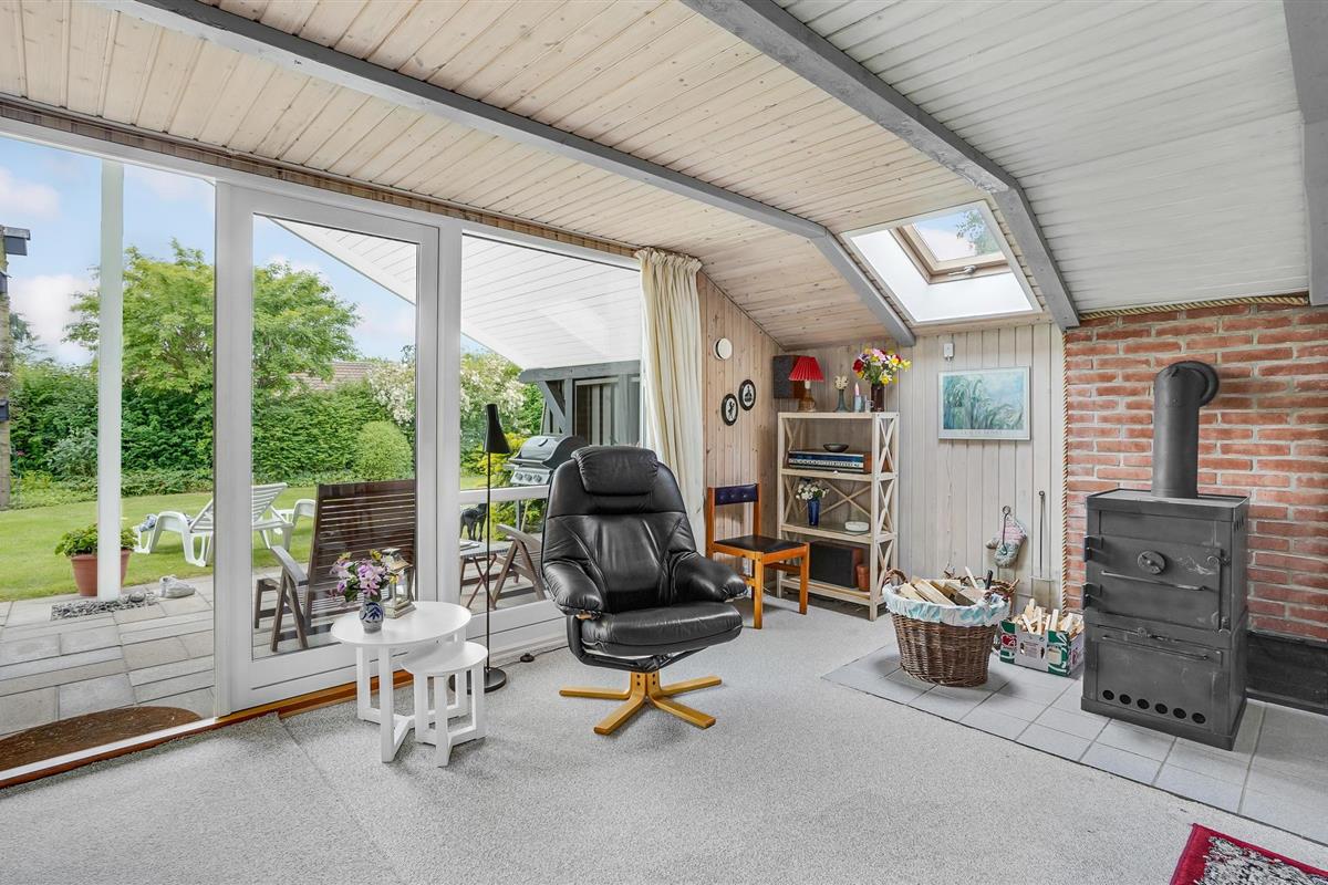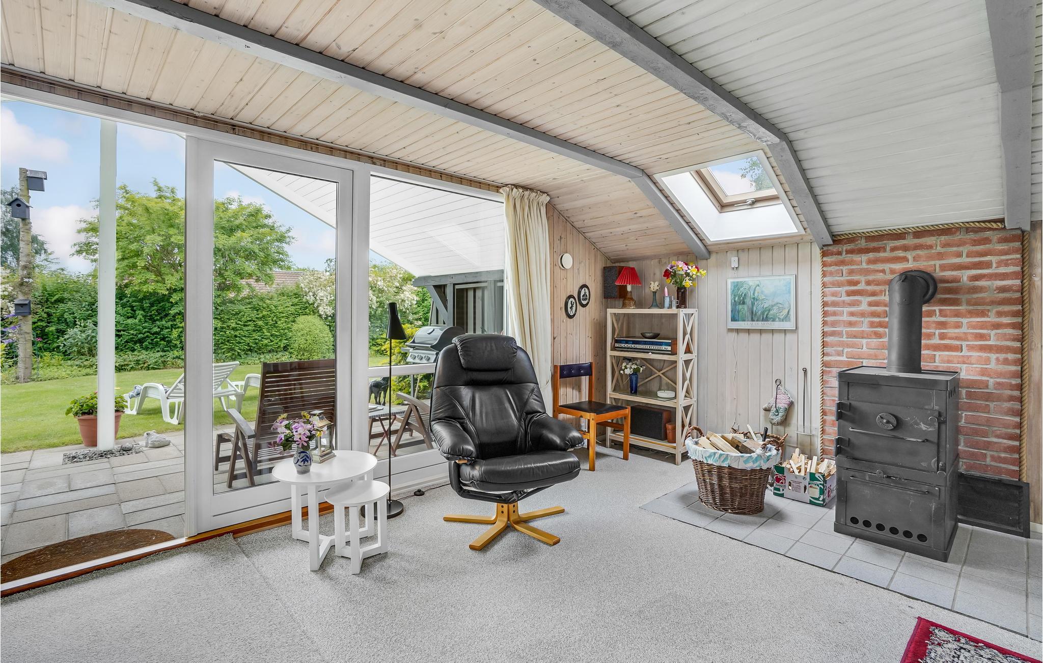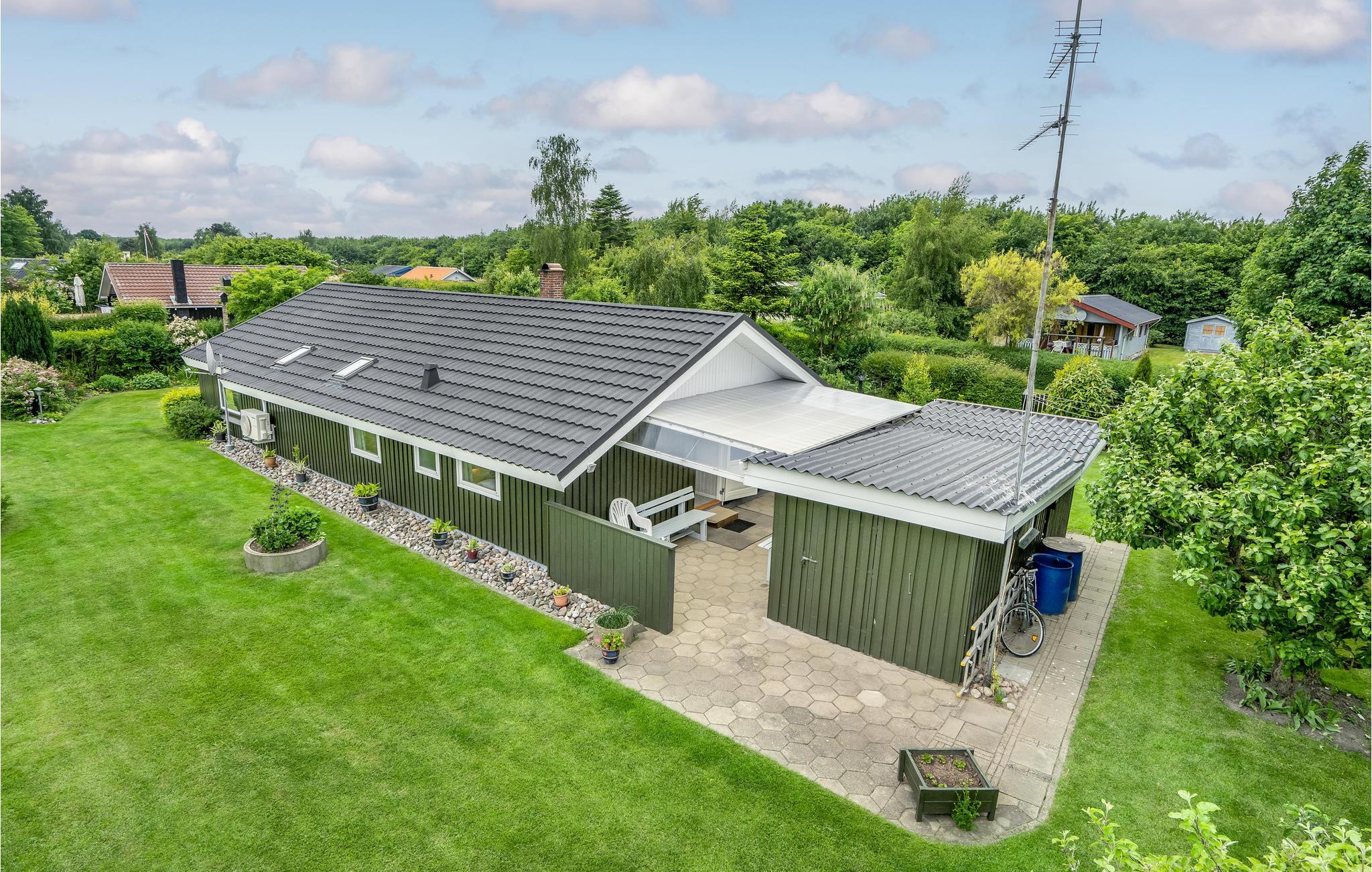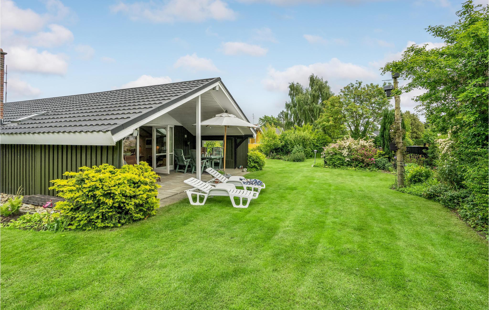 Gezellig vakantiehuis nabij Skovmose Strand met ruime tuin, houten terras en prachtig uitzicht op de natuur.