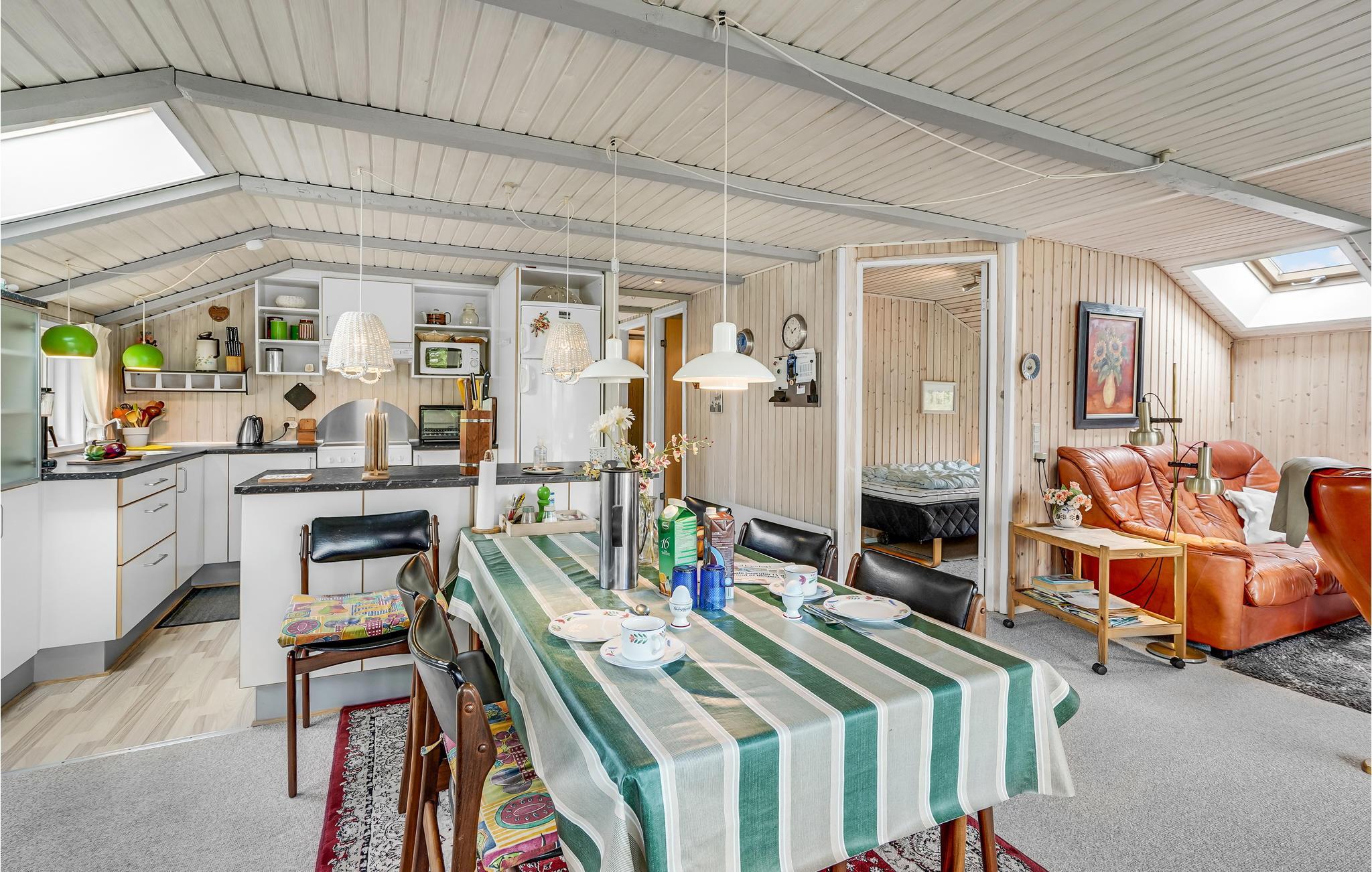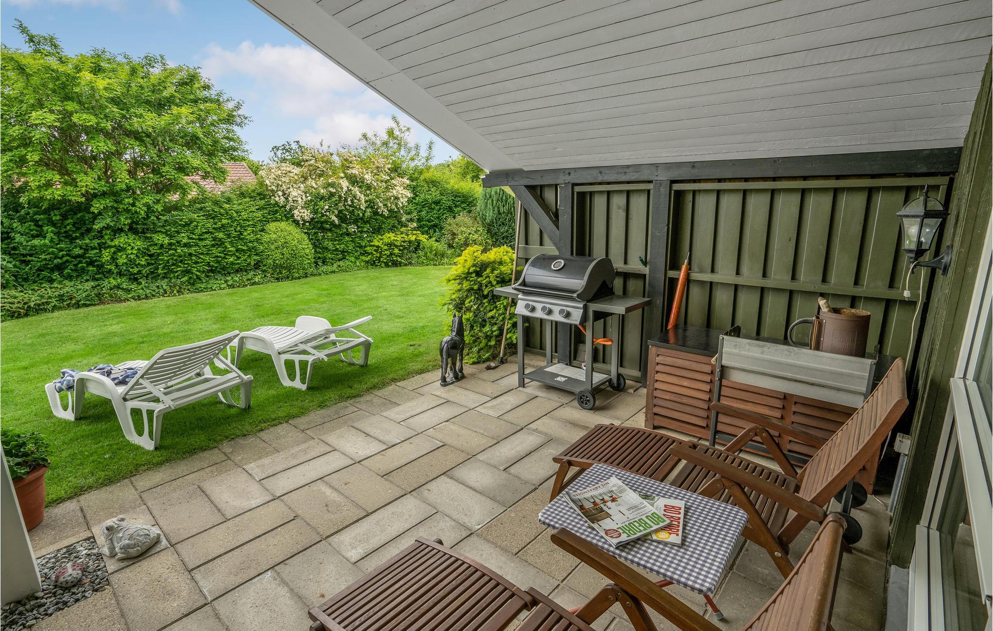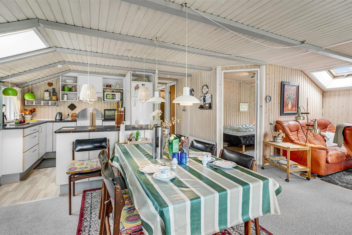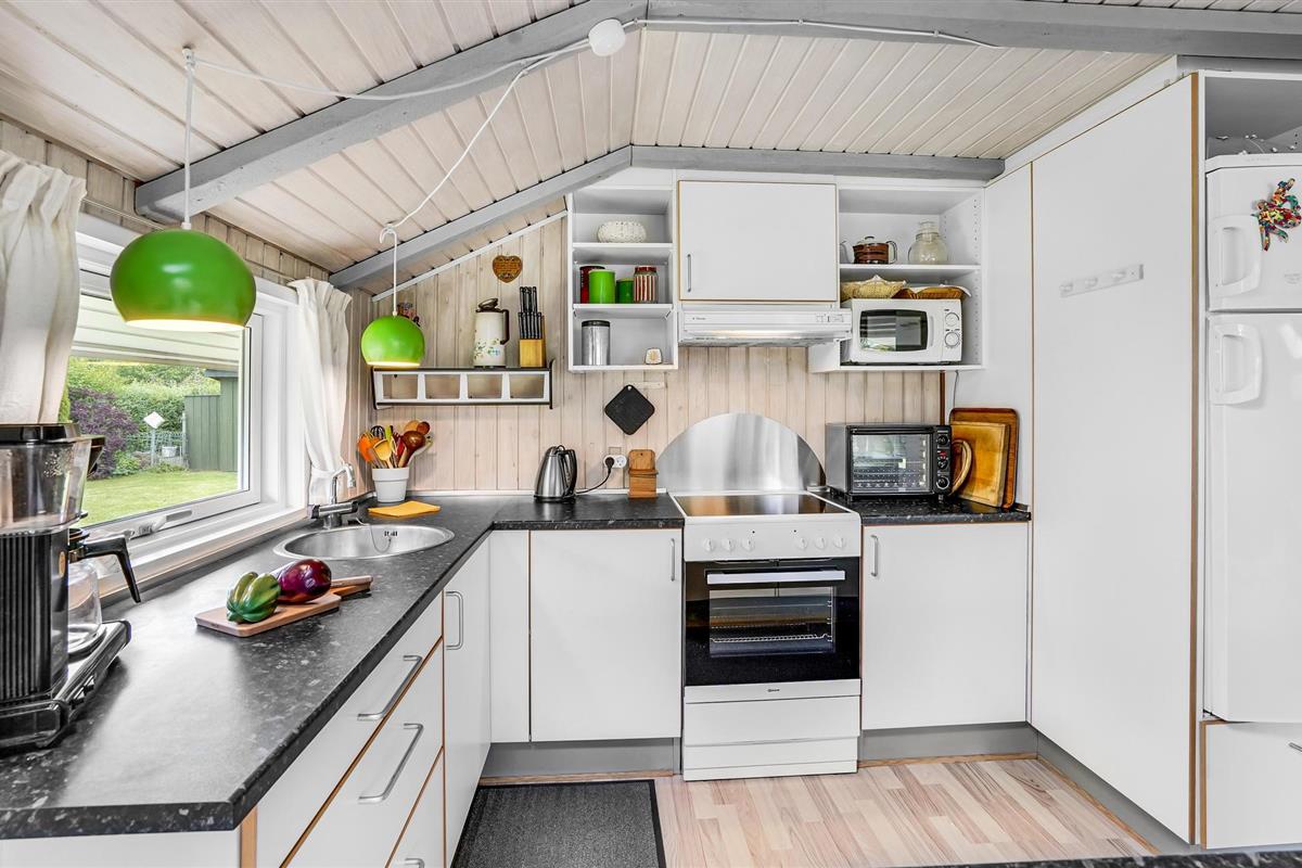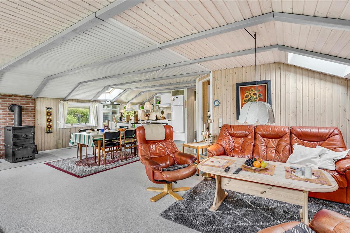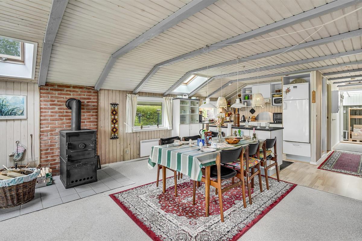 Gezellig vakantiehuis nabij Skovmose Strand met ruime tuin, houten terras en prachtig uitzicht op de natuur.