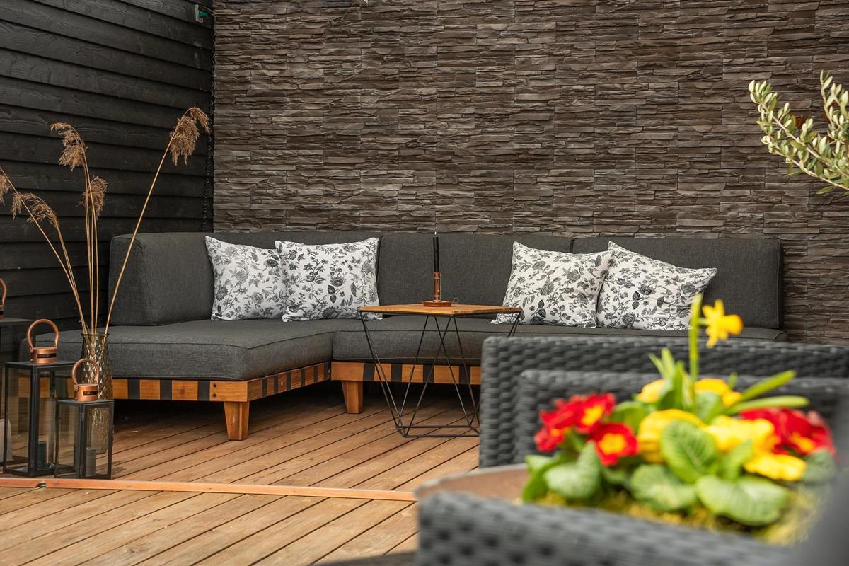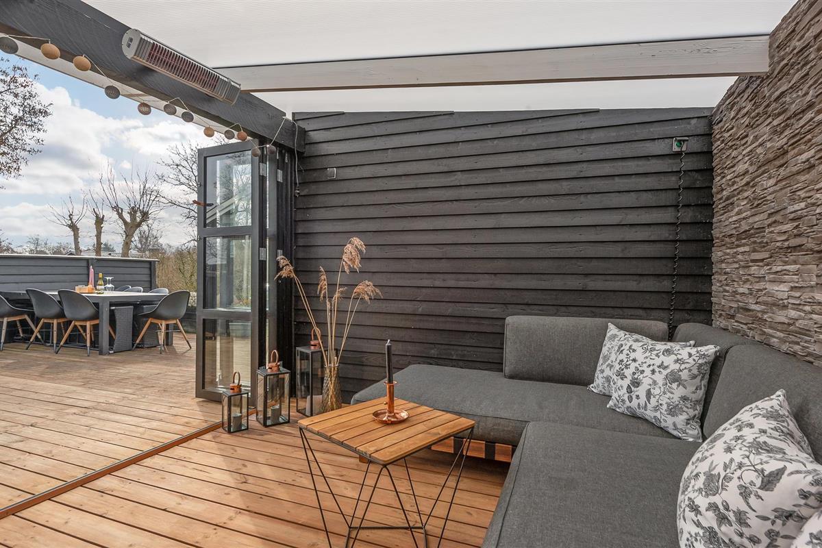 De gezellige zithoek op het overdekte terras nodigt u uit om 's avonds te genieten van een glas wijn, terwijl de grote eettafel op het open terras ideaal is voor het ontbijt in de ochtend. Het gazon biedt veel ruimte om te spelen.