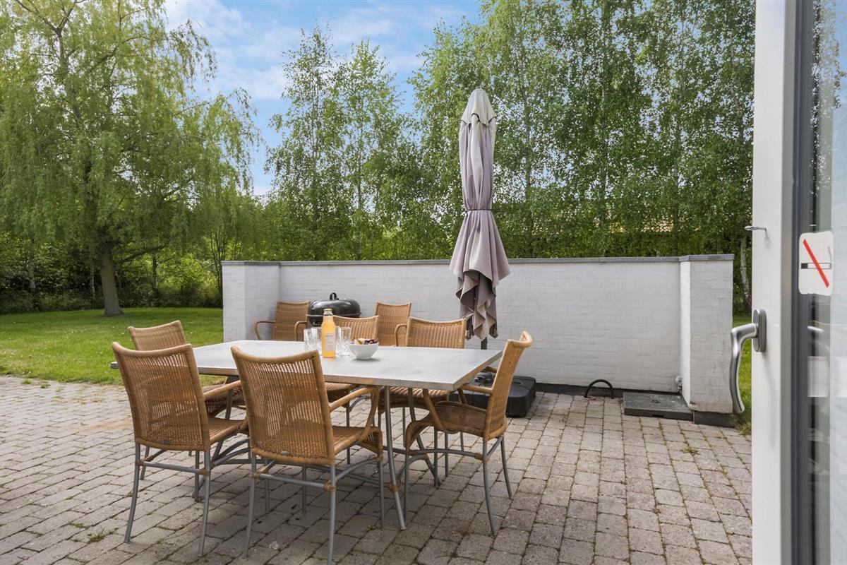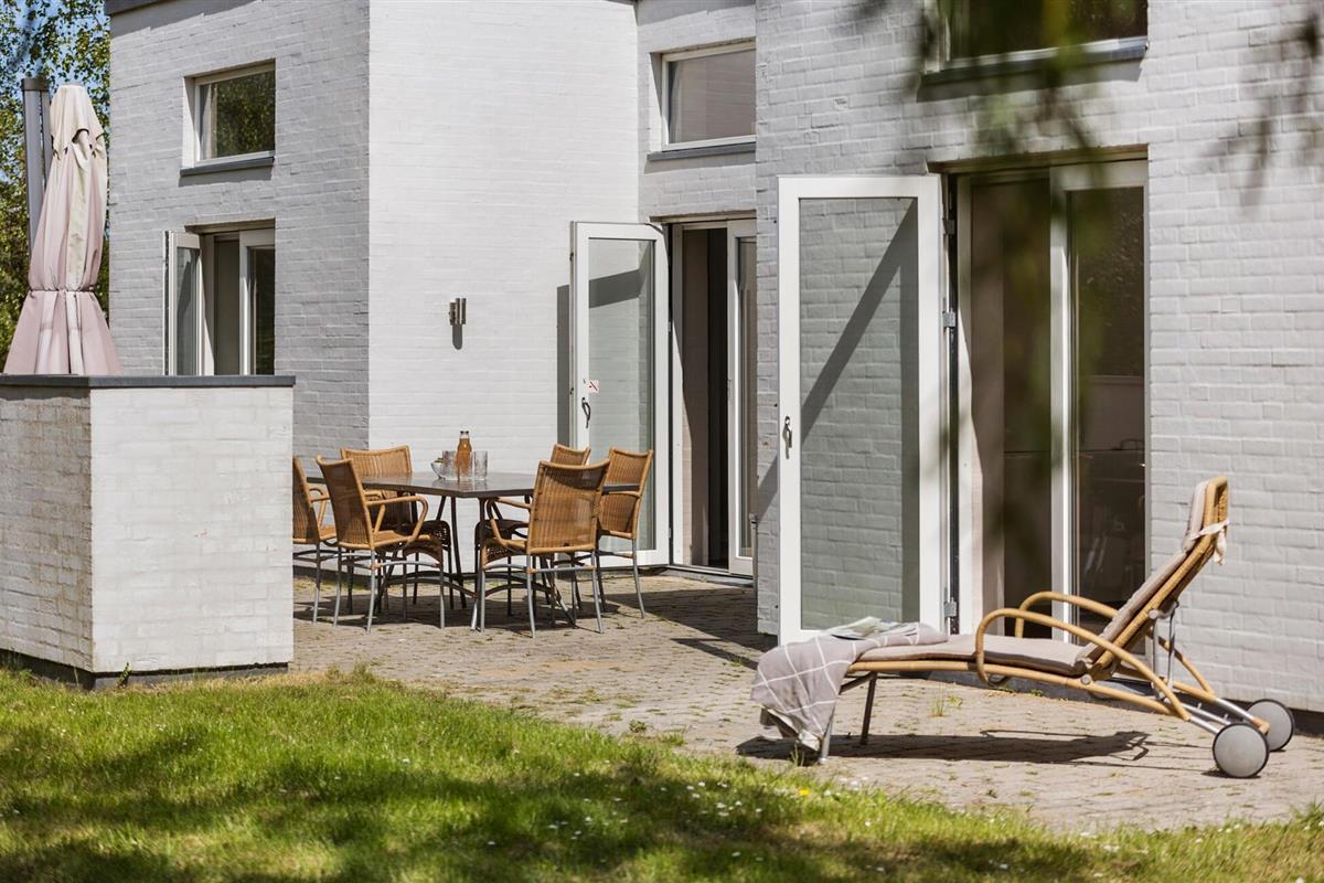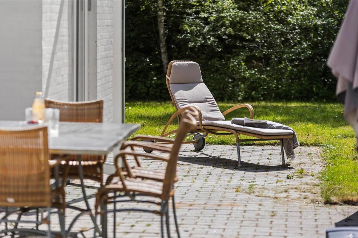 Buiten nodigt het grote terras je uit om buiten te dineren en te genieten van de zon op de ligstoelen. De goed onderhouden tuin biedt ruimte voor activiteiten en speeltoestellen voor kinderen.