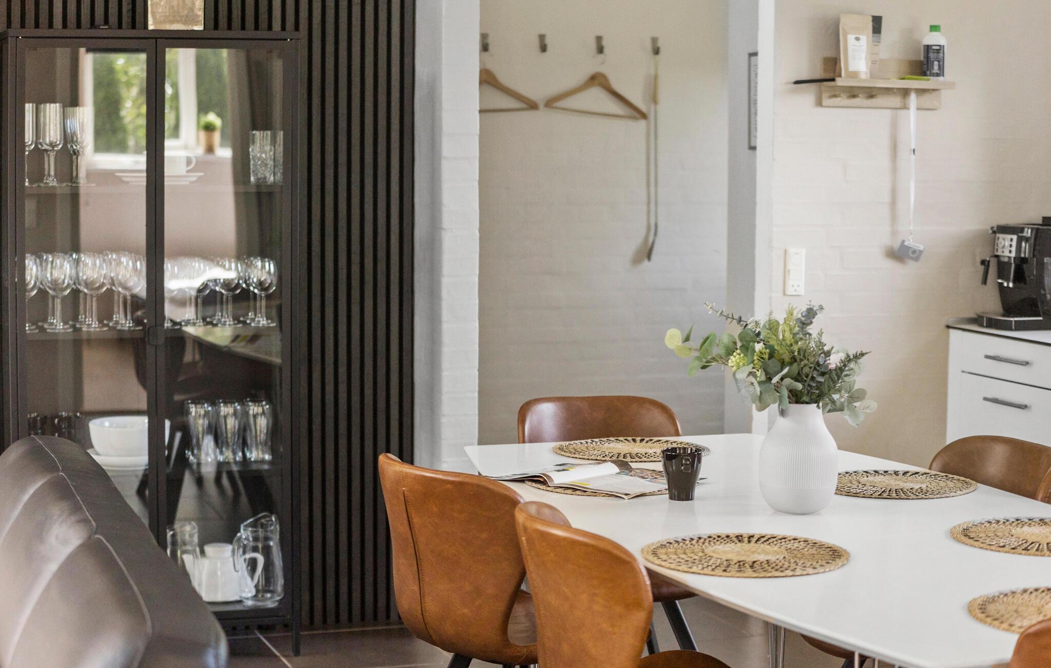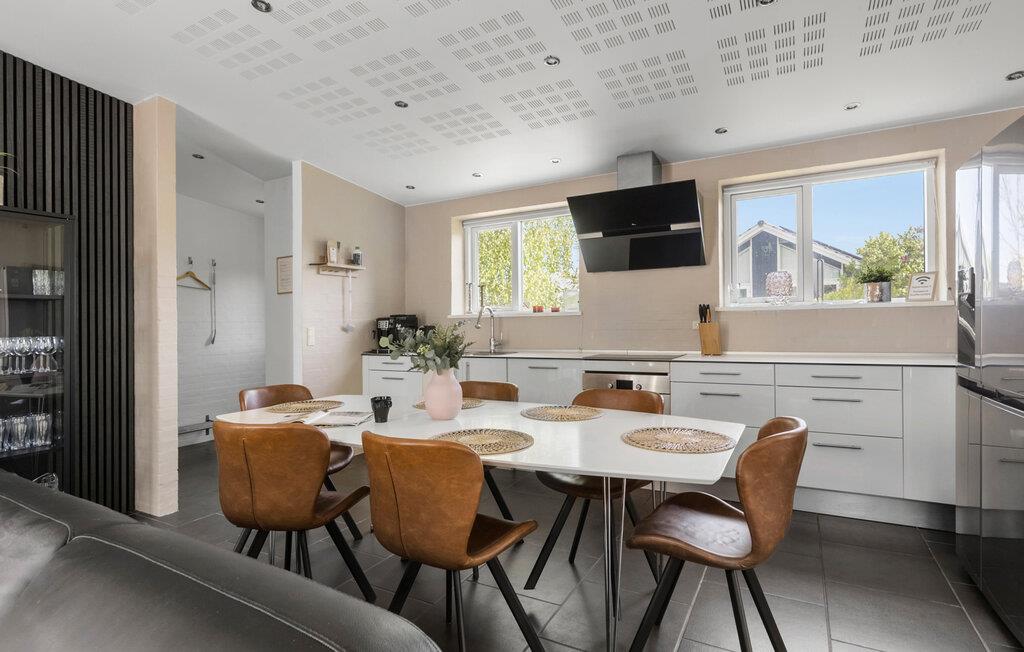 Beleef een ontspannen vakantie in je stijlvolle vakantiehuis, dat niets te wensen overlaat met zijn lichte sfeer en faciliteiten. Geniet van rust en comfort in de prachtige omgeving van Skovmose Strand. De inrichting van het vakantiehuis is modern en uitnodigend. De grote ramen zorgen voor veel licht in de woonkamer, die je uitnodigt om te blijven hangen met comfortabele meubels en een gemetselde kachel. De open keuken biedt genoeg ruimte om samen heerlijke maaltijden te bereiden en te dineren in gezellig gezelschap. De eigen sauna en whirlpool zijn bijzonder ontspannend en bieden je rustgevende ontspanning na een dag vol leuke ervaringen.