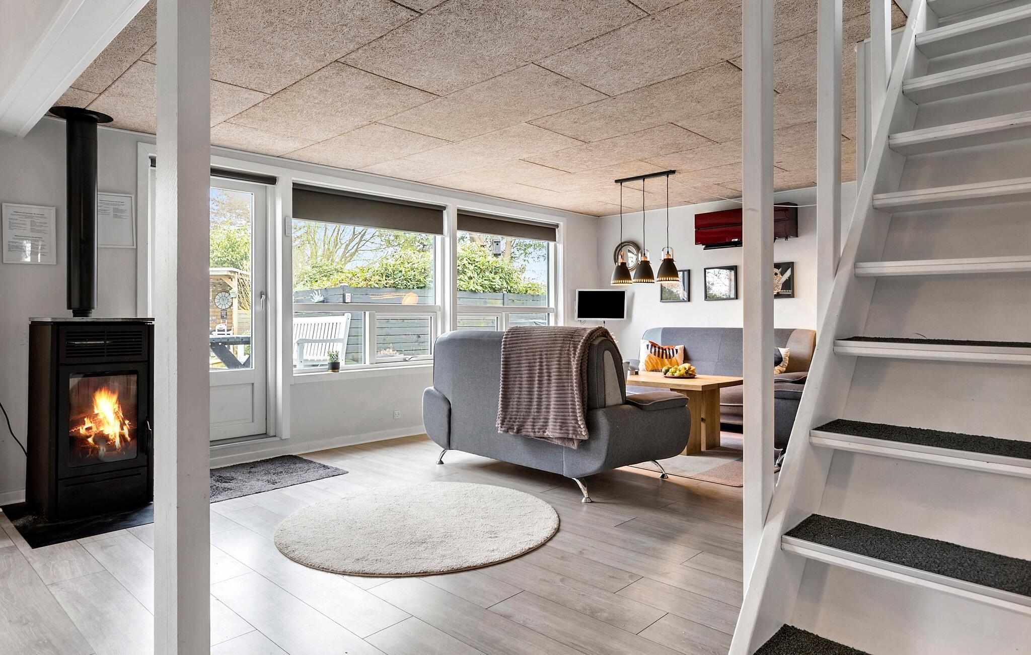 Ontspan in dit sfeervolle vakantiehuis vlakbij Skovmose Strand met tuin en open haard.