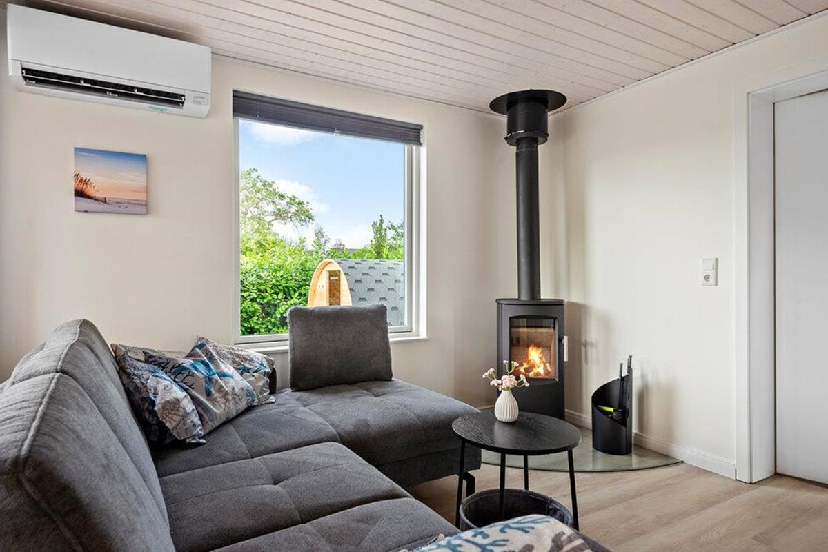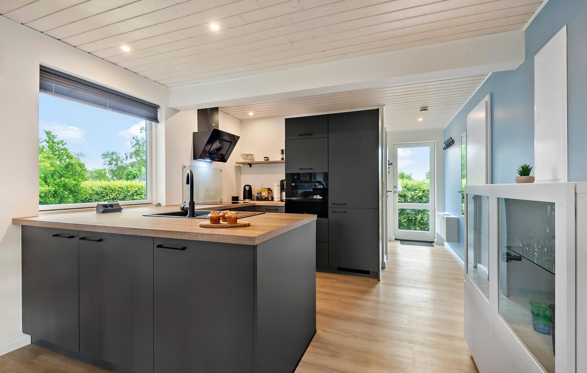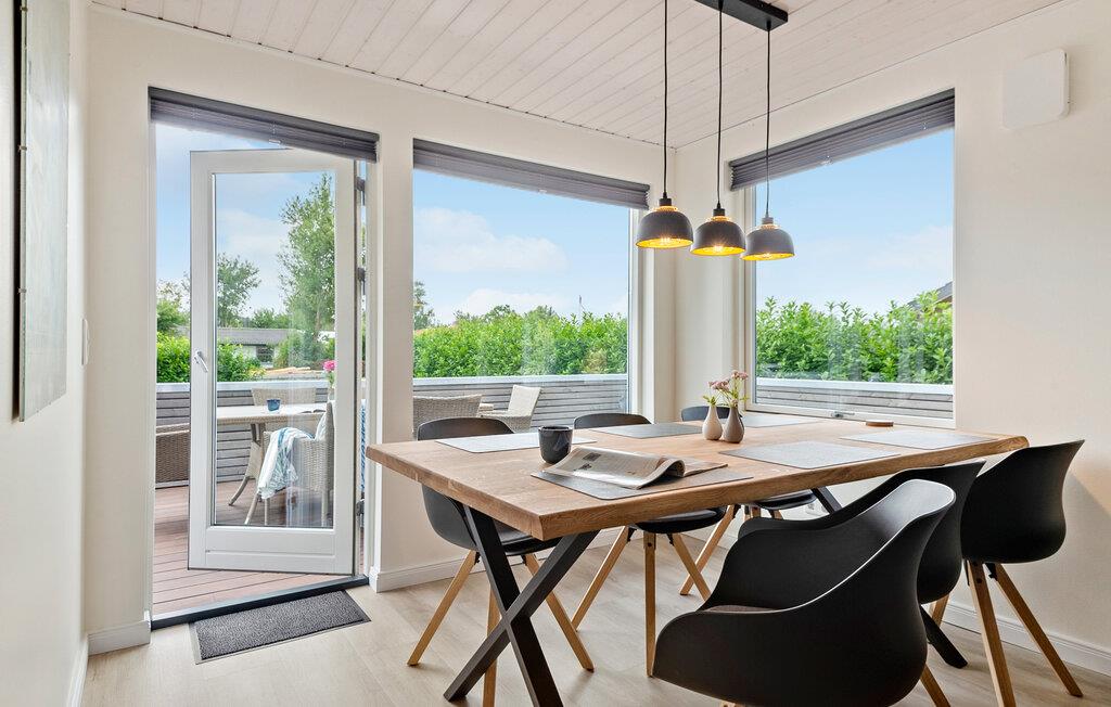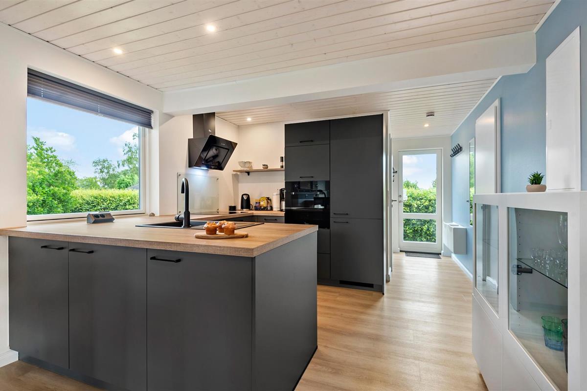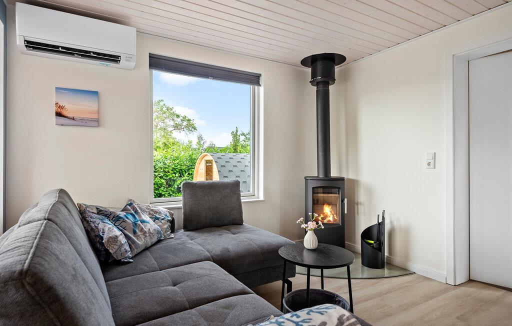 Geniet van een ontspannen vakantie in dit stijlvolle vakantiehuis, dat je comfort en een gastvrije sfeer biedt. Je vakantiehuis ligt op slechts een paar minuten lopen van het Skovmose-strand, een van de beste en meest gezinsvriendelijke zandstranden in de omgeving. Binnen vind je een lichte, moderne sfeer met grote ramen die het woongedeelte overspoelen met natuurlijk licht. Maak het jezelf gemakkelijk op de knusse hoekbank en geniet van de gezellige warmte van de open haard. De open keuken nodigt uit om samen te koken, terwijl de ruime eethoek ruimte biedt voor gezellige maaltijden. De eigen sauna biedt pure ontspanning, de ideale plek om je terug te trekken na een actieve dag.