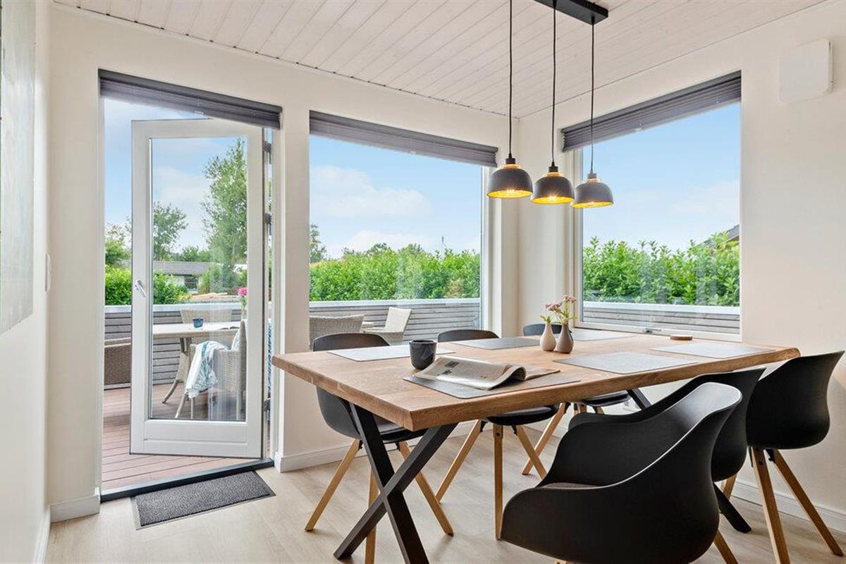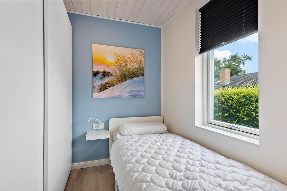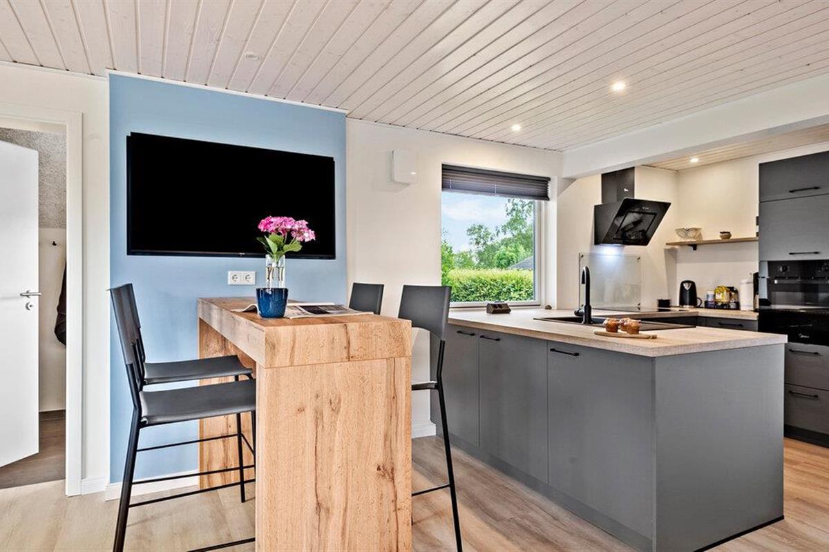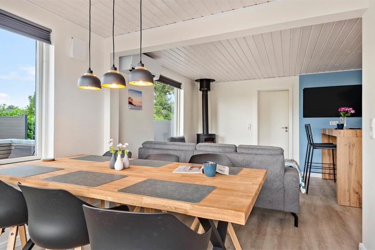 Geniet van een ontspannen vakantie in dit stijlvolle vakantiehuis, dat je comfort en een gastvrije sfeer biedt. Je vakantiehuis ligt op slechts een paar minuten lopen van het Skovmose-strand, een van de beste en meest gezinsvriendelijke zandstranden in de omgeving. Binnen vind je een lichte, moderne sfeer met grote ramen die het woongedeelte overspoelen met natuurlijk licht. Maak het jezelf gemakkelijk op de knusse hoekbank en geniet van de gezellige warmte van de open haard. De open keuken nodigt uit om samen te koken, terwijl de ruime eethoek ruimte biedt voor gezellige maaltijden. De eigen sauna biedt pure ontspanning, de ideale plek om je terug te trekken na een actieve dag.