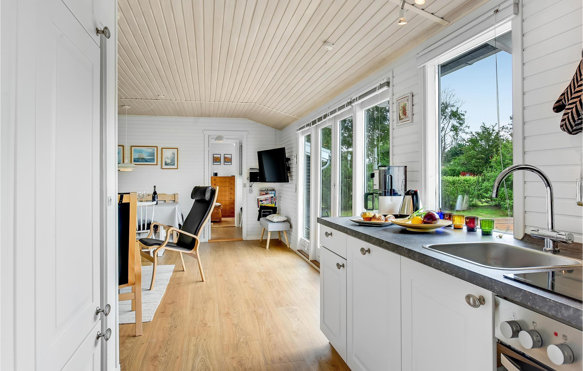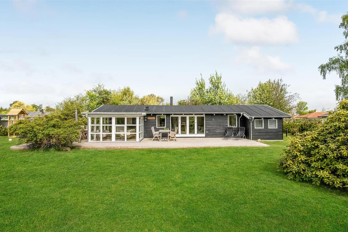 Gezellig vakantiehuis nabij Skovmose Strand met moderne keuken, houtkachel en serre, op 100 m van het water.