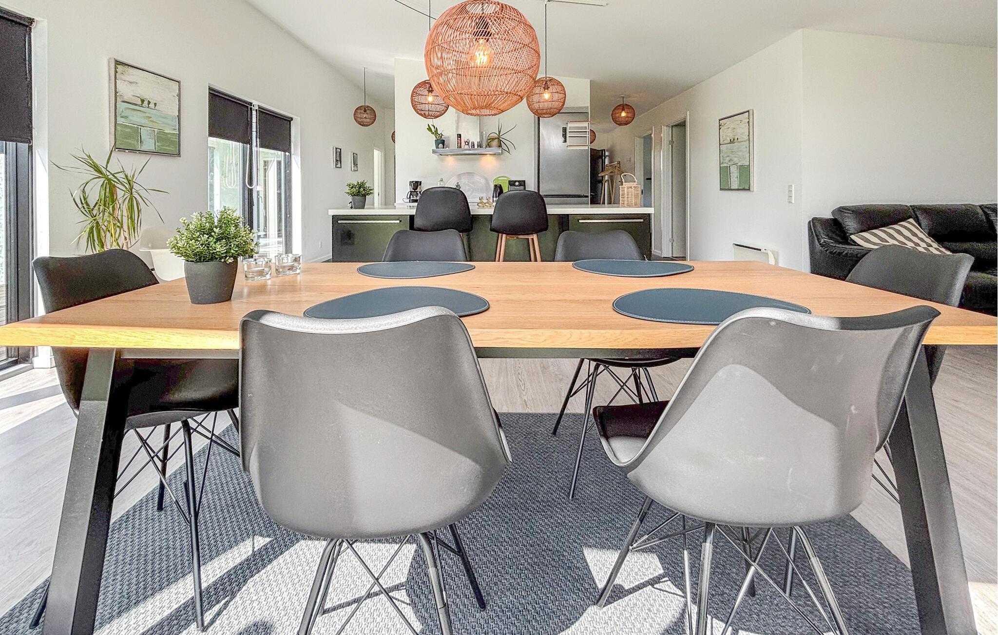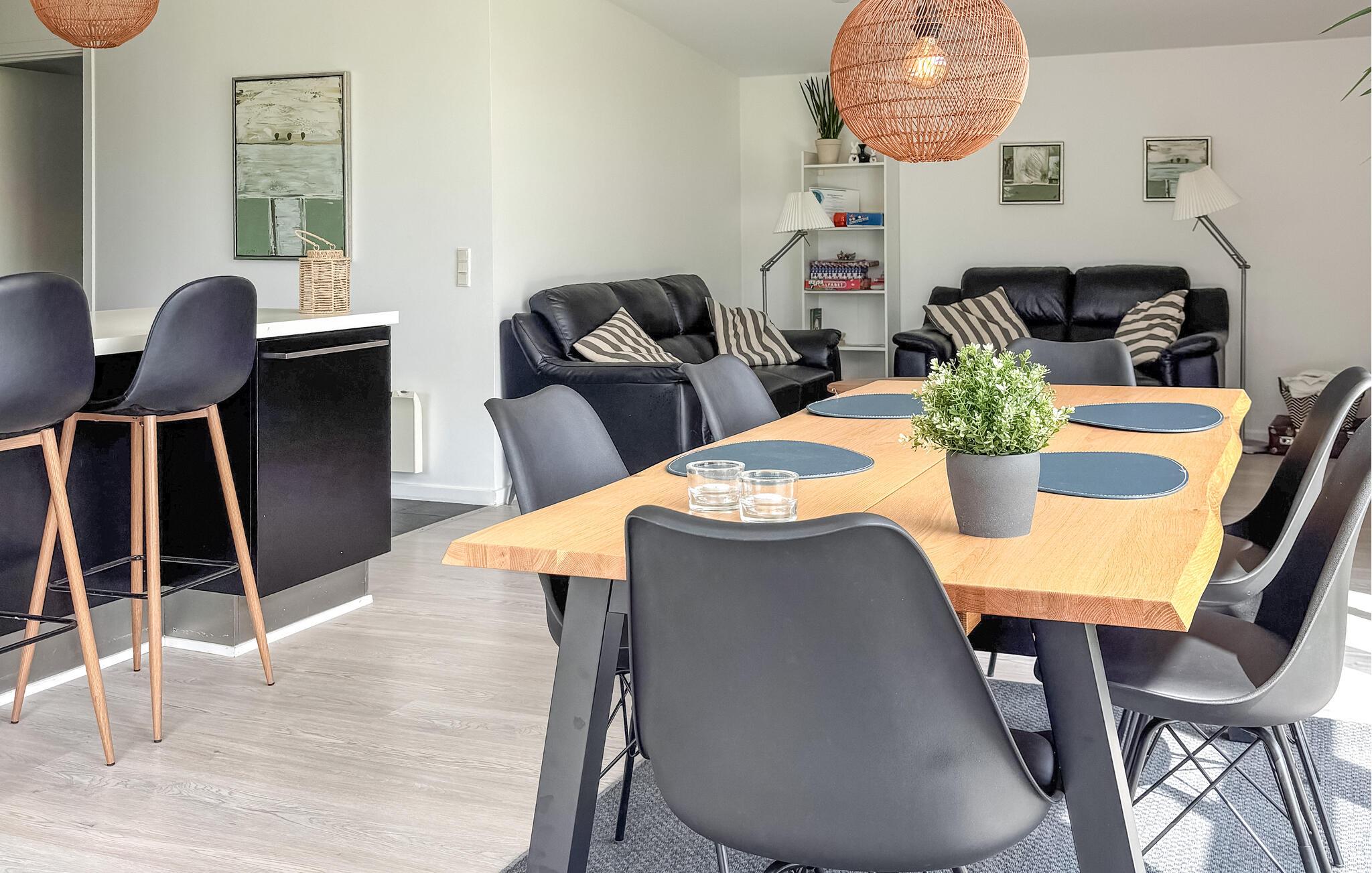 Dit stijlvol ingerichte huis verwelkomt je op een prachtige locatie in het aantrekkelijke vakantiehuizencomplex Skovmose. Grote ramen zorgen voor veel natuurlijk daglicht en uitzicht op de groene tuin. Verheug je op gezellig koken in de moderne keuken en harmonieuze maaltijden bij de houtkachel. Trakteer jezelf na lange wandelingen in de frisse lucht op aangename momenten in de sauna of whirlpool en maak het jezelf gemakkelijk op de bank voor filmavonden samen.