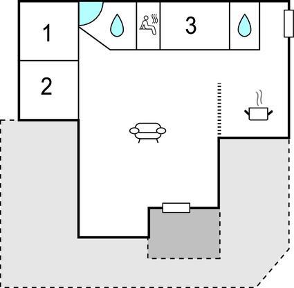 Badkamer 3m2 (nr. 2) - Toilet: warm en koud water. Douche