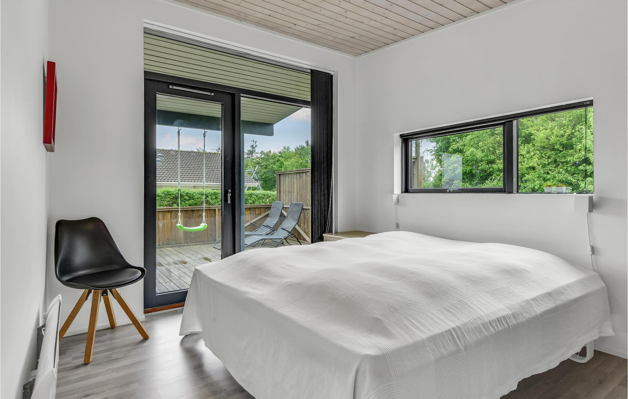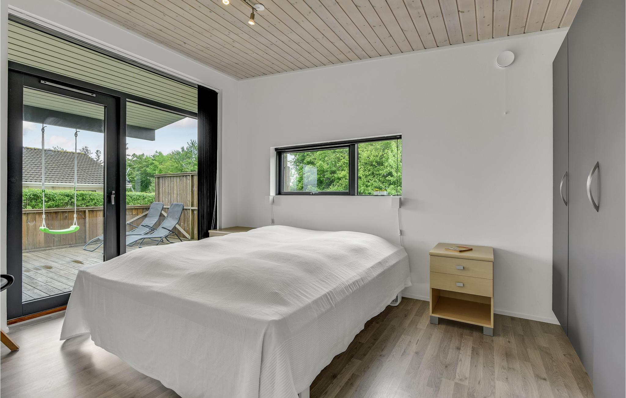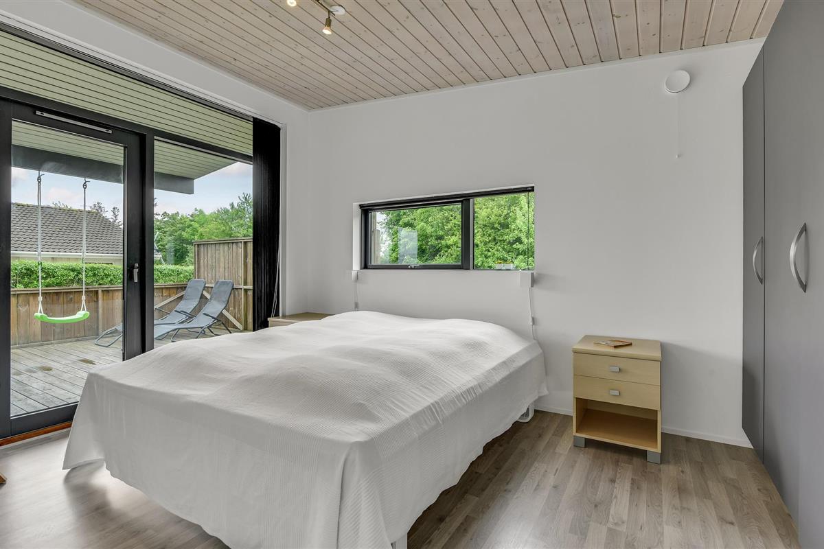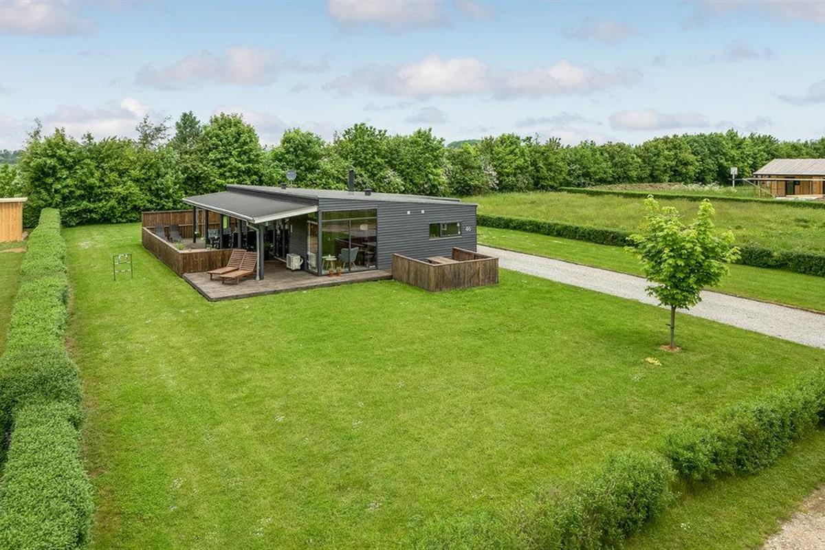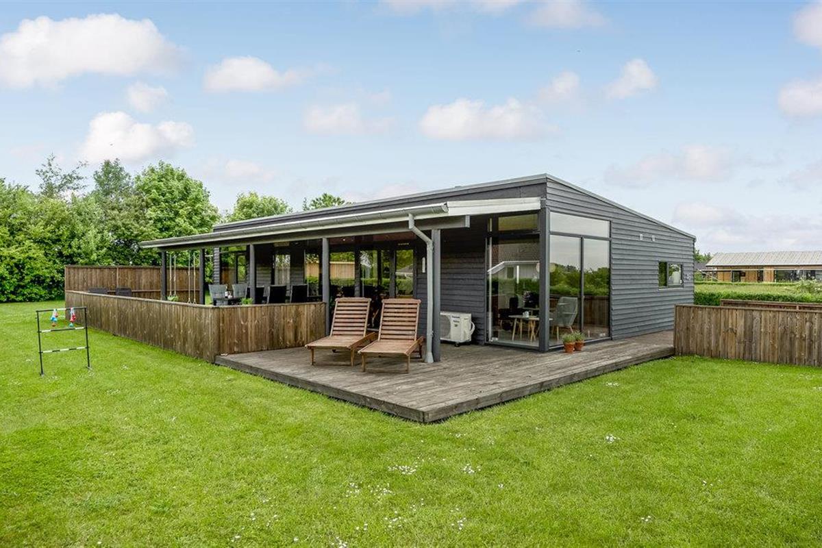Modern en energiezuinig vakantiehuis nabij Skovmose strand met sauna, bubbelbad en ruime tuin voor een ontspannen verblijf.