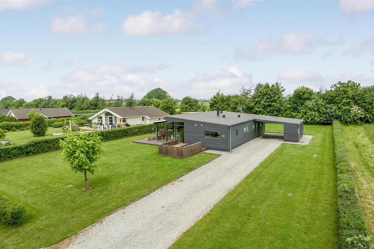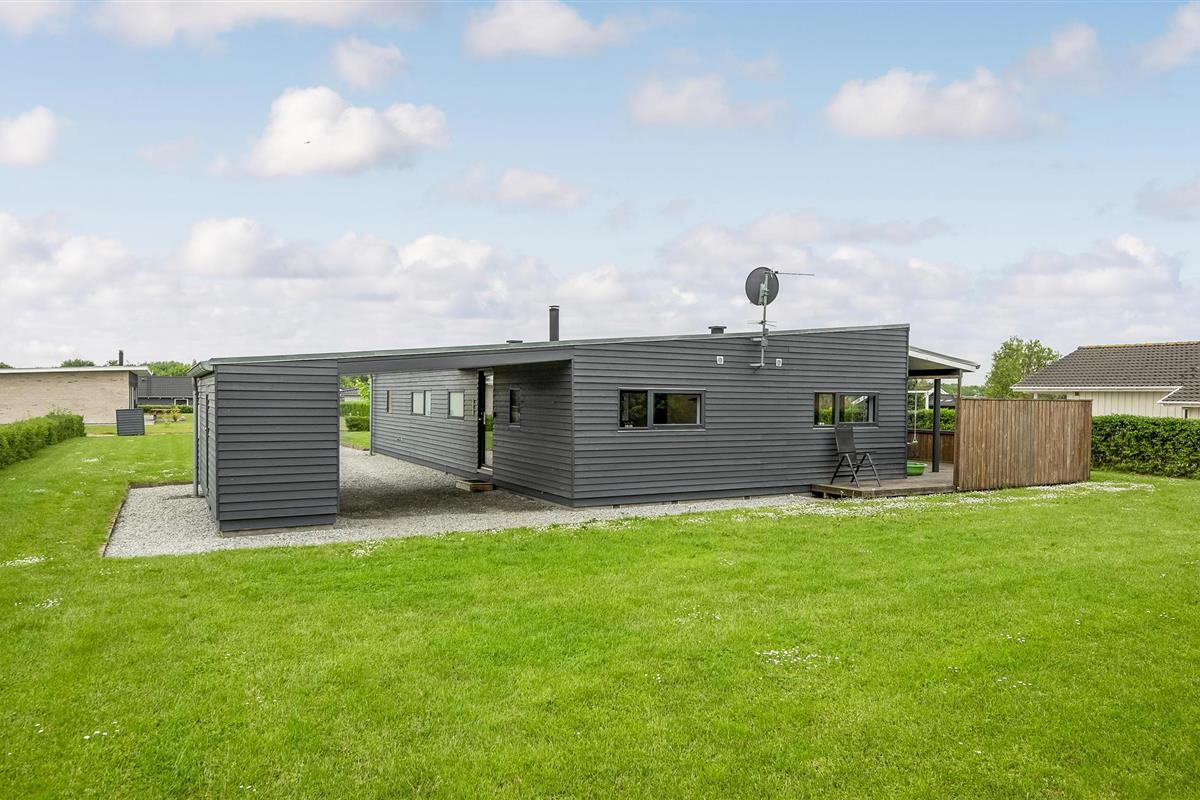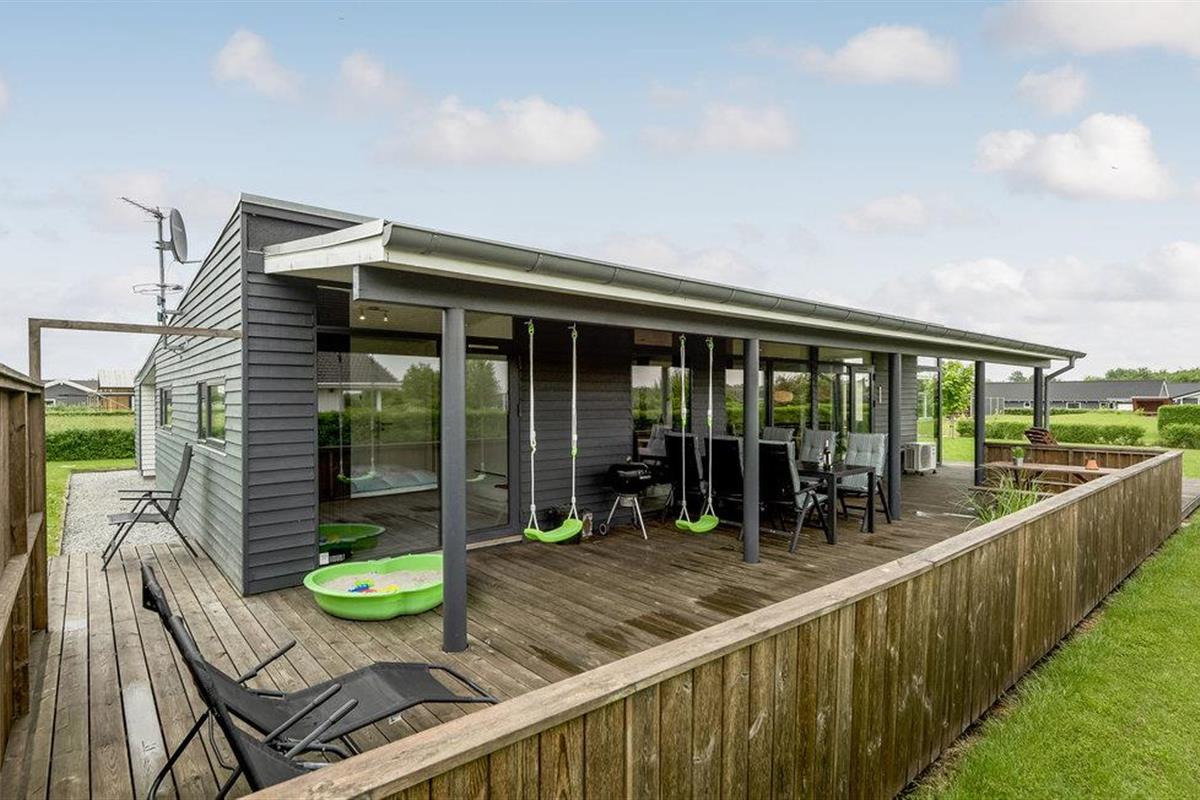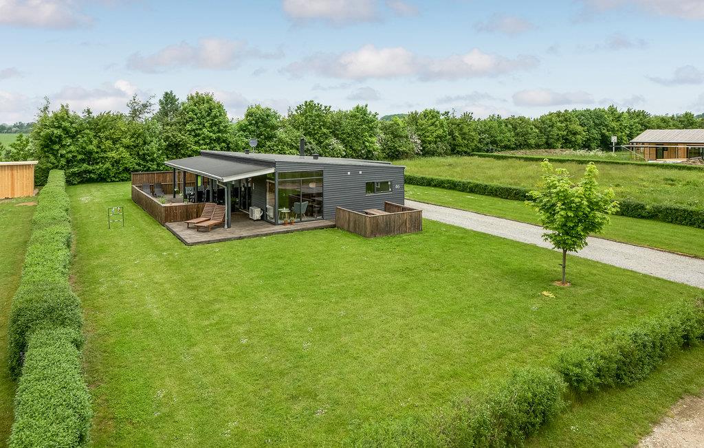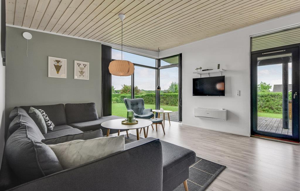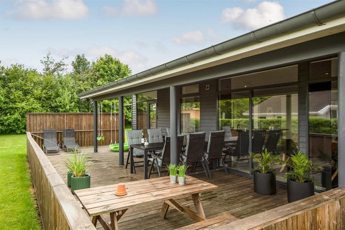 Modern en energiezuinig vakantiehuis nabij Skovmose strand met sauna, bubbelbad en ruime tuin voor een ontspannen verblijf.