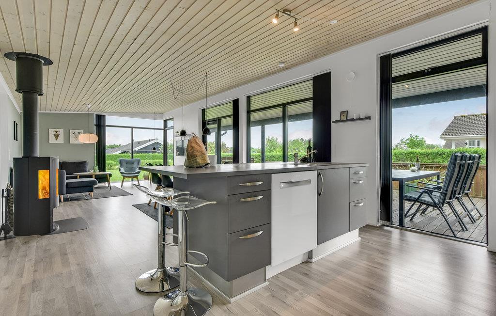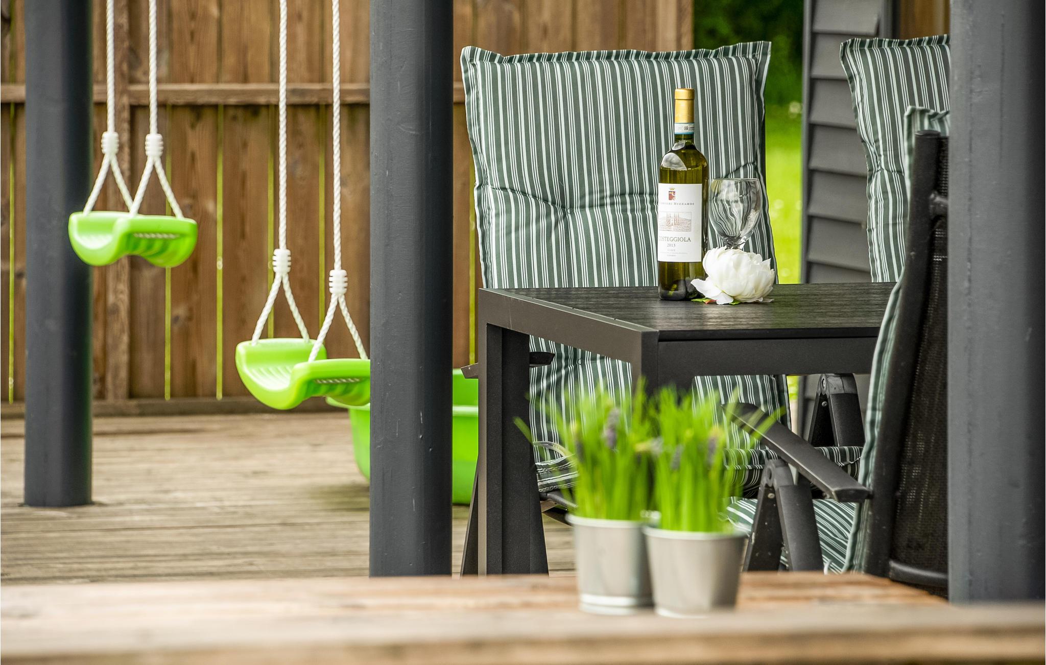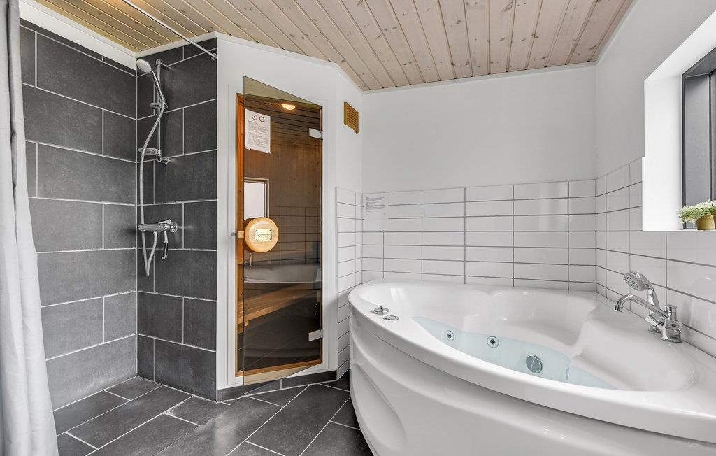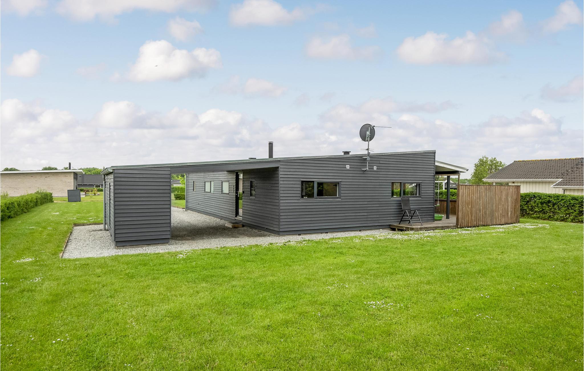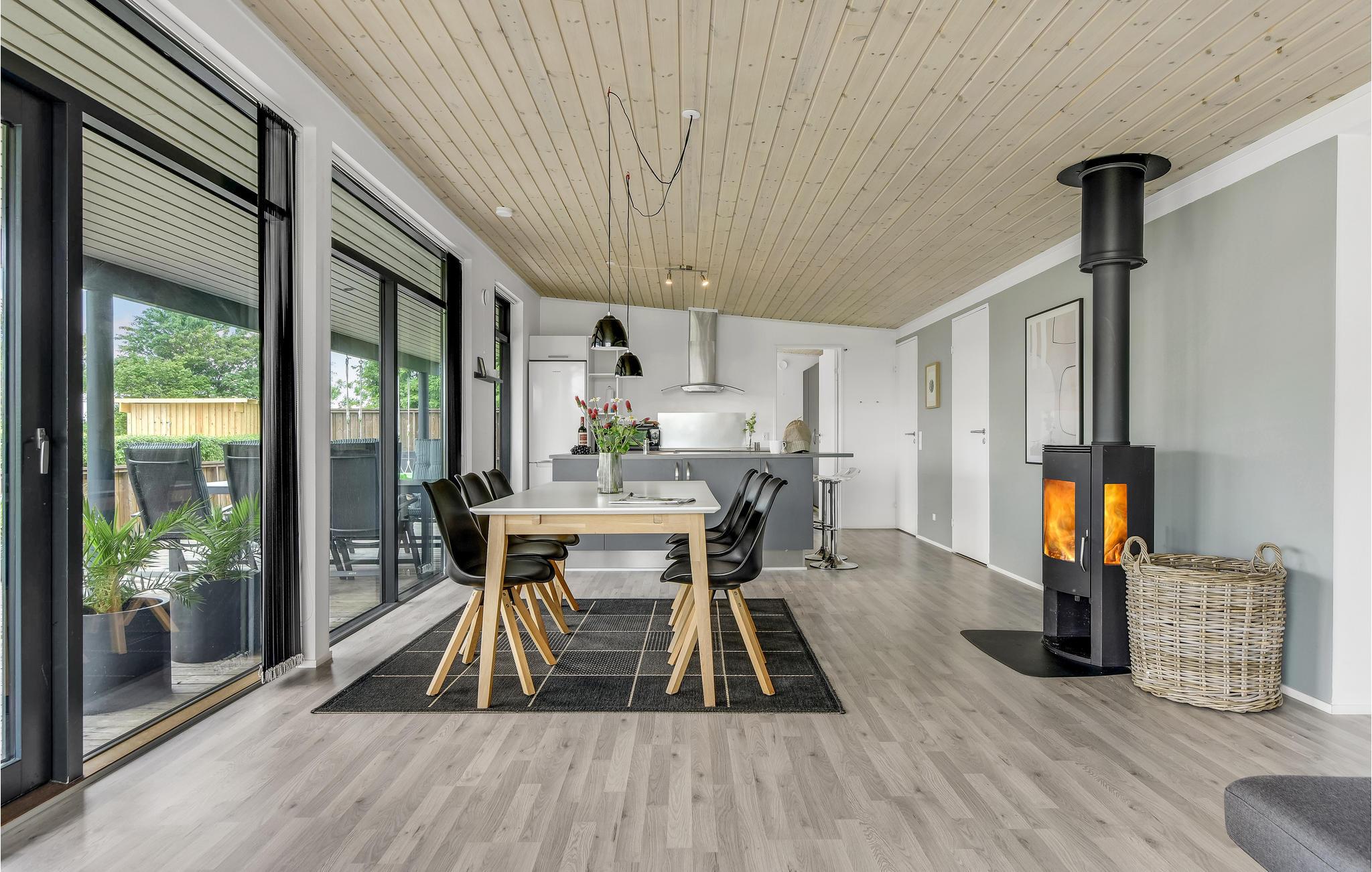 Modern en energiezuinig vakantiehuis nabij Skovmose strand met sauna, bubbelbad en ruime tuin voor een ontspannen verblijf.