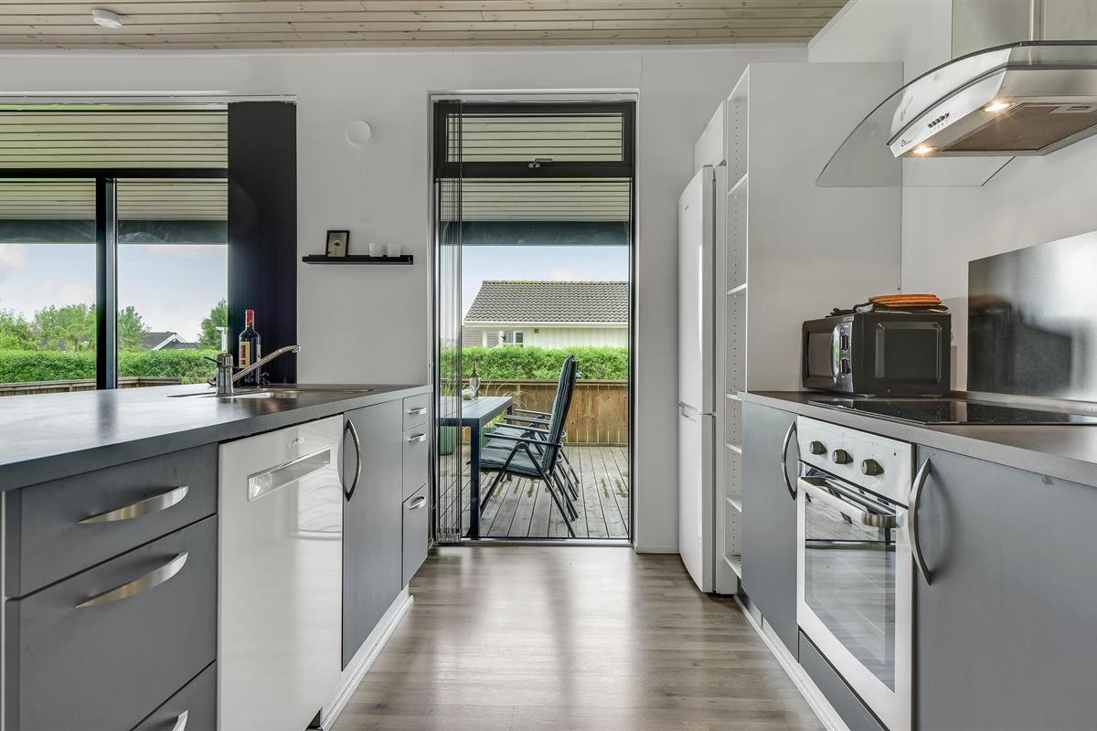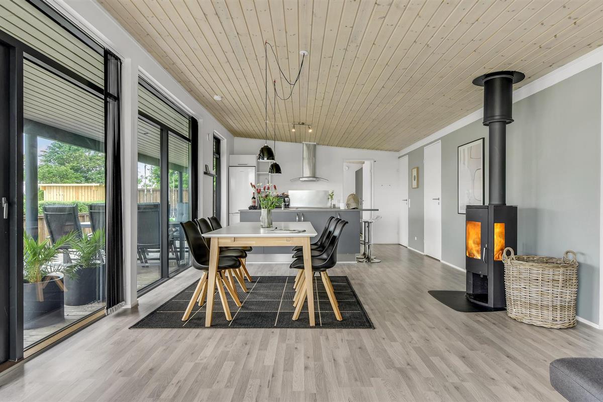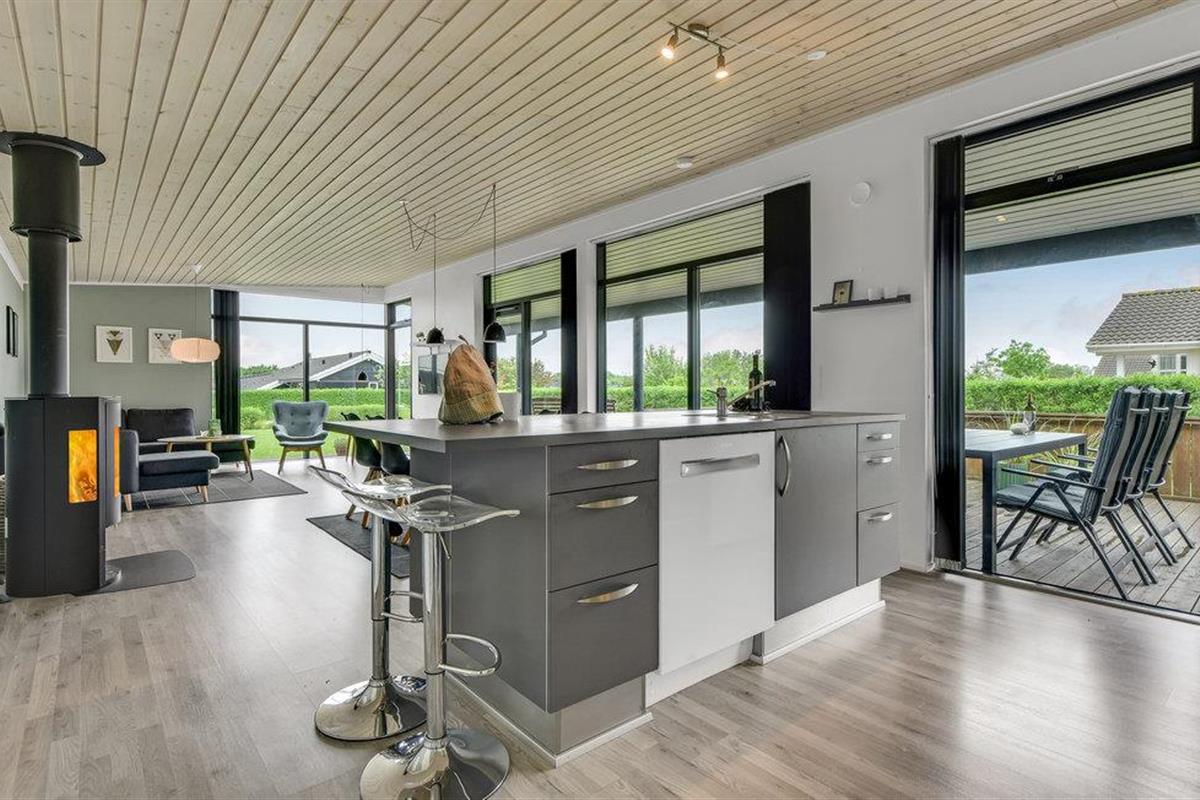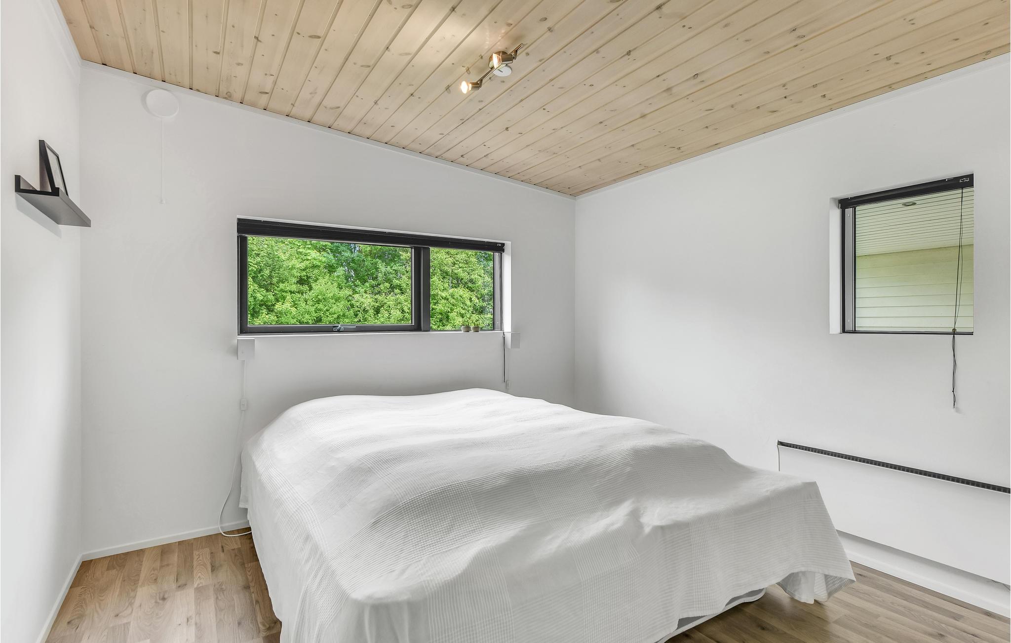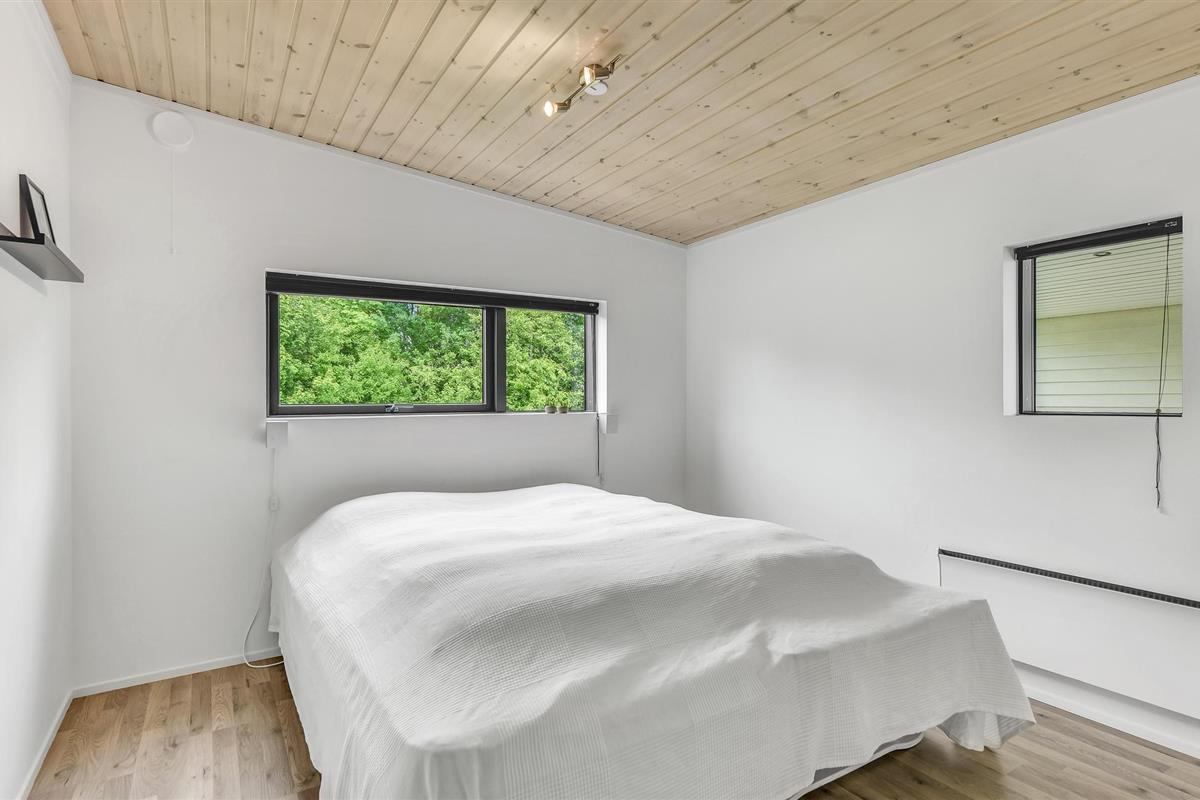 Een huis om je in thuis te voelen, met een interessante lichtinval en een niet-traditionele inrichting. Het ligt in het jongere gedeelte van het populaire vakantiegebied Skovmose, dat een prachtig strand heeft.