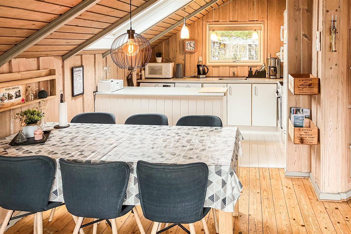 In je vakantiehuis in de buurt van het Skovmose-strand in het zuiden van het eiland Als vind je een huiselijk interieur met een open keuken-woonkamer, ideaal voor gezamenlijke maaltijden. De lichte woonkamer met gezellige banken en houtkachel is de ideale plek om te ontspannen. Geniet van de moderne inrichting en de lichte eetkamer met directe toegang tot het terras, dat een aangename sfeer creëert voor gezellige avonden.