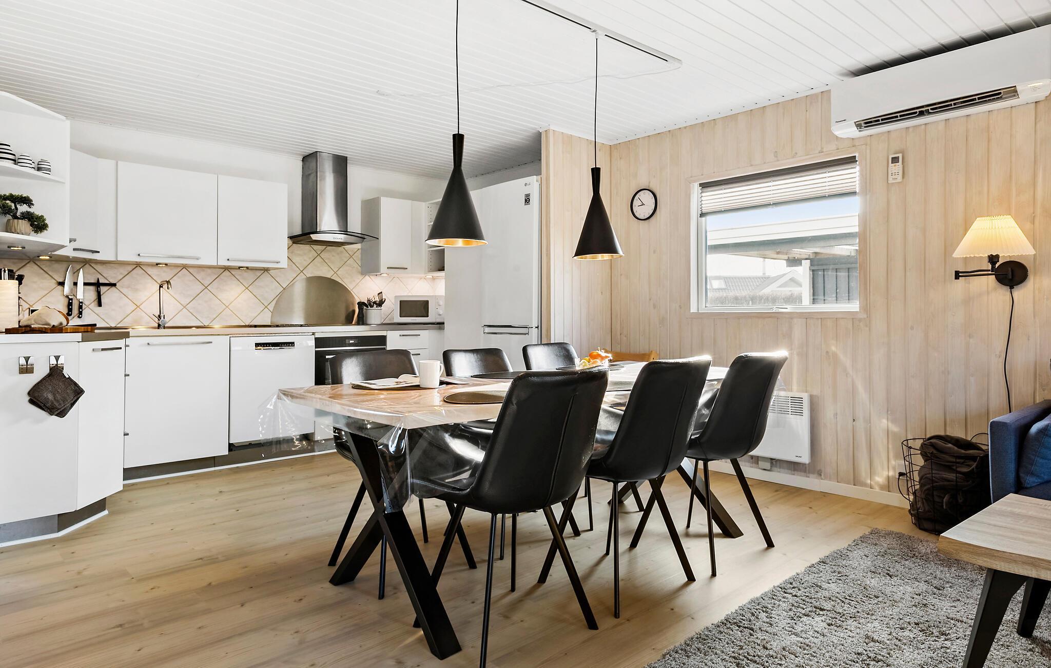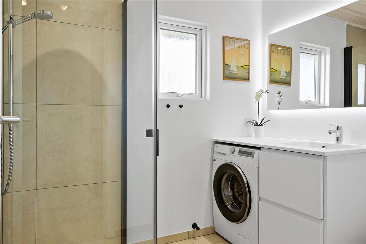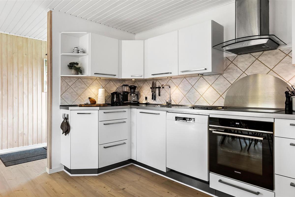 Dit vakantiehuis ligt niet ver van het gezinsvriendelijke strand in Skovmose. De keuken van het huis is open verbonden met het eetgedeelte en de woonkamer. In de woonkamer staat zowel een houtkachel als een energiebesparende warmtepomp die u op koele dagen en avonden kunt gebruiken. In het hele vakantiehuis kunt u gebruik maken van de draadloze internetverbinding. Het huis heeft een heerlijk terras, waarvan een deel overdekt is. Hier kunt u bij elk weer lekker barbecueën. Op het terrein is veel ruimte om te spelen en rond te rennen, leuk voor gasten van alle leeftijden. Op het prachtige strand kunt u heerlijk zwemmen in het heldere water van de Oostzee.