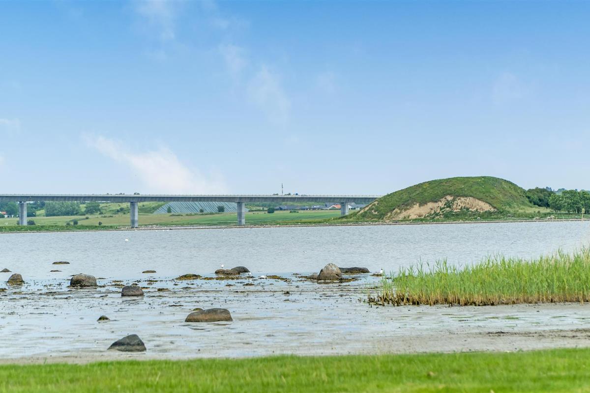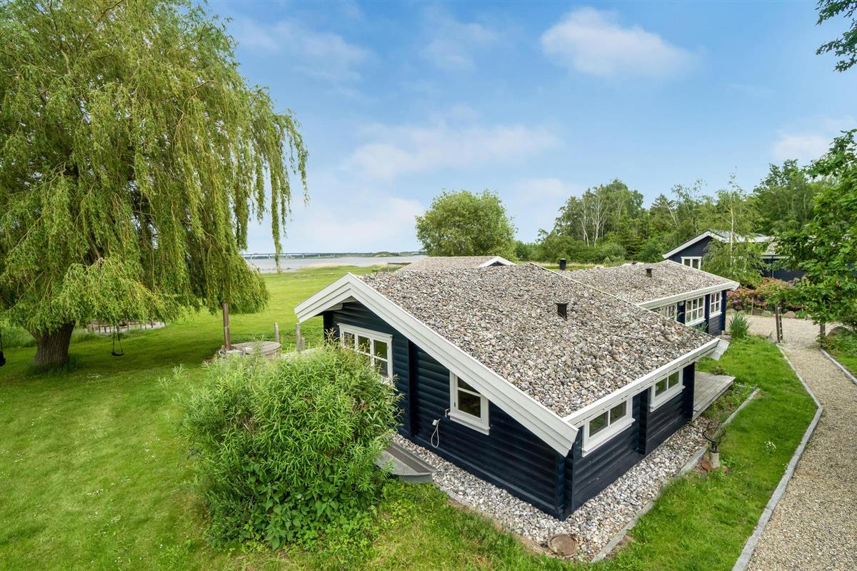 Sfeervol vakantiehuis direct aan de fjord met open haard, terras en natuurrijke omgeving bij Skulderslev Strand.