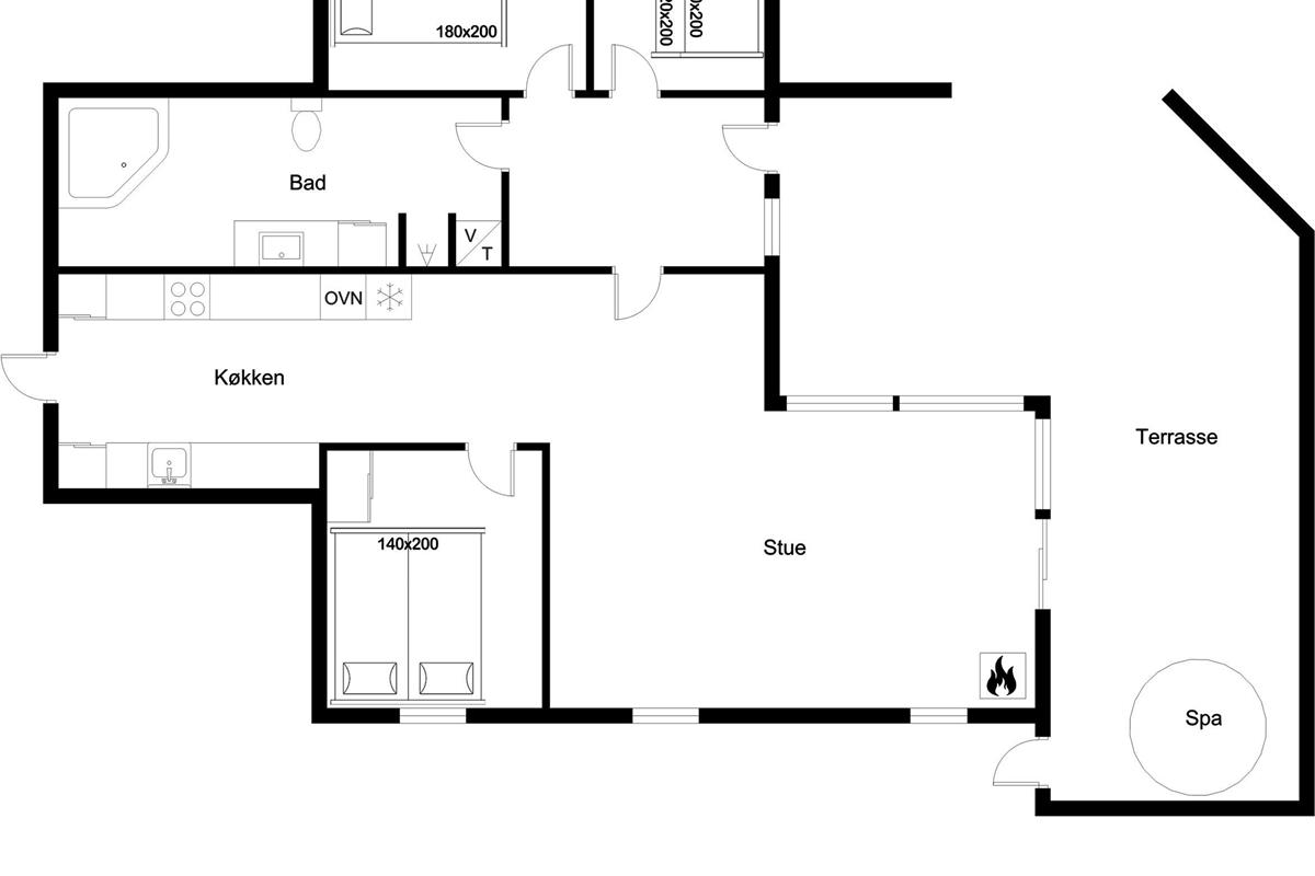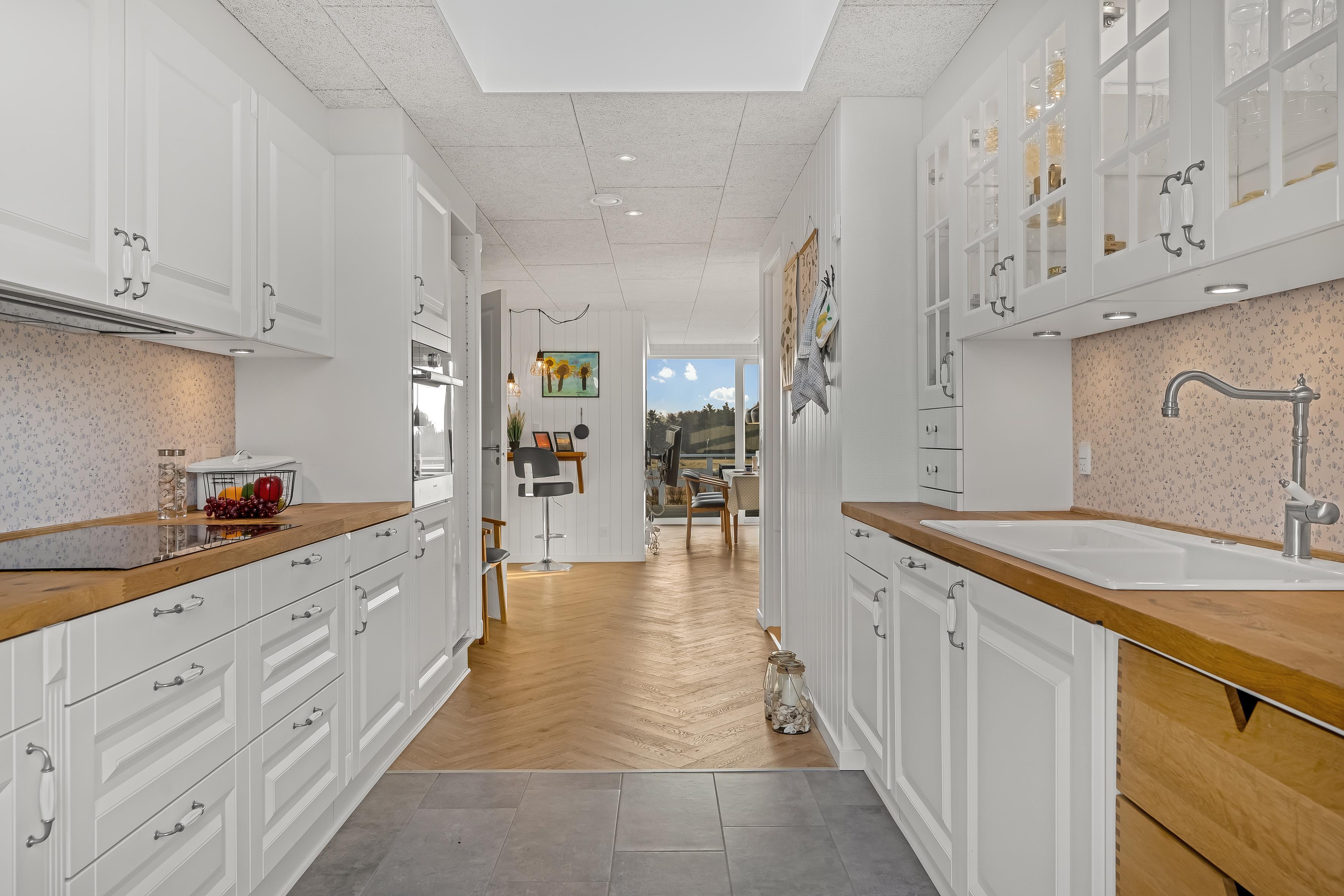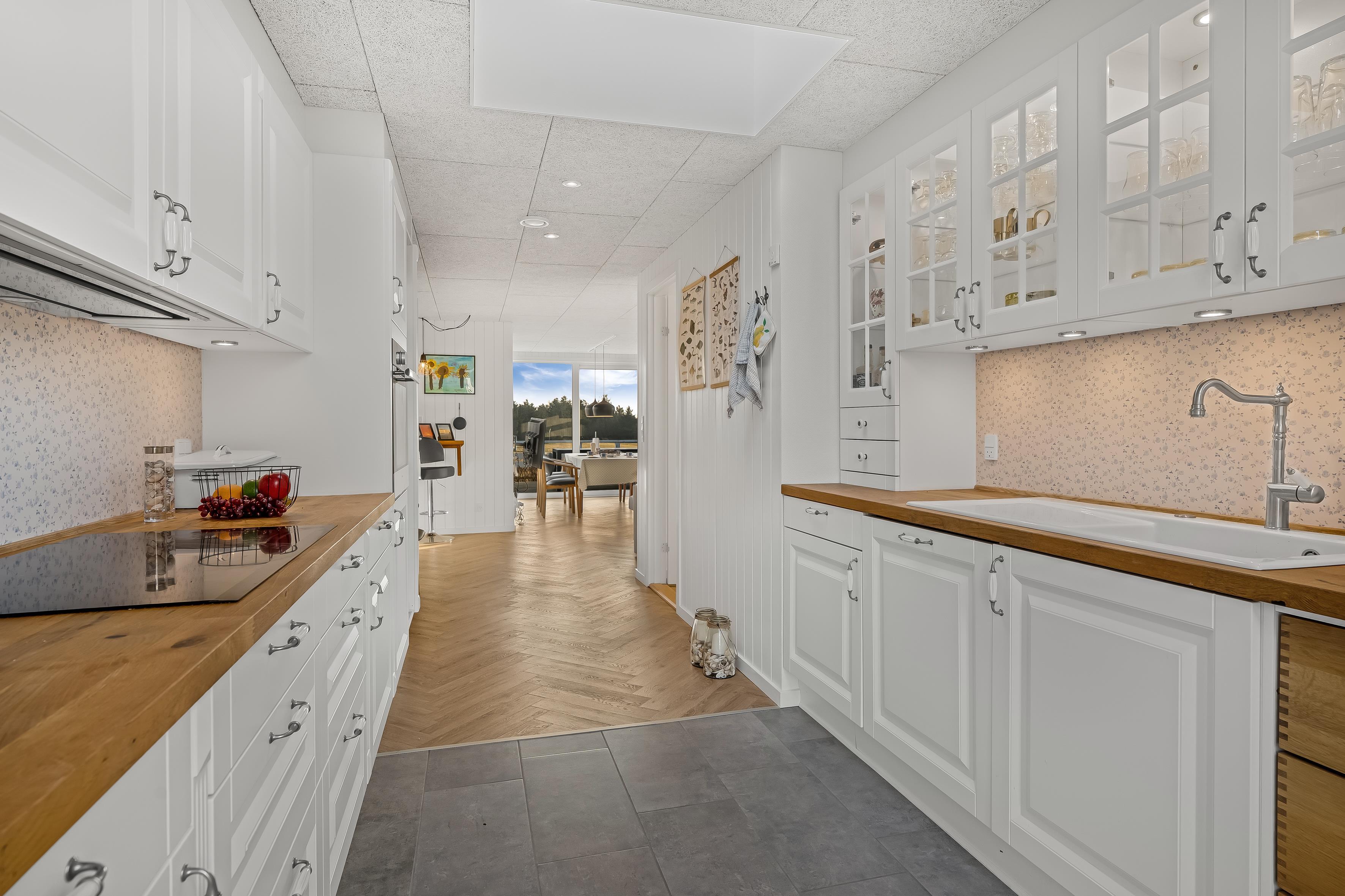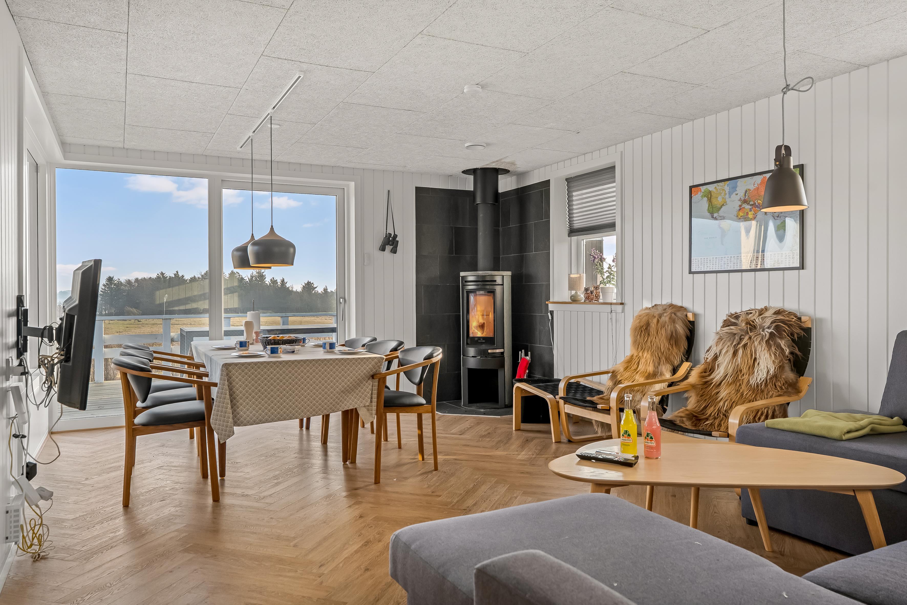 The central living area includes a cozy living room with a wood-burning stove, where you can gather around warmth and good conversations. For those who want to relax after a day by the water, there is also a television with both Danish and German TV, as well as Chromecast for streaming your favorite programs. Wireless internet is available, so you can stay connected if you wish.