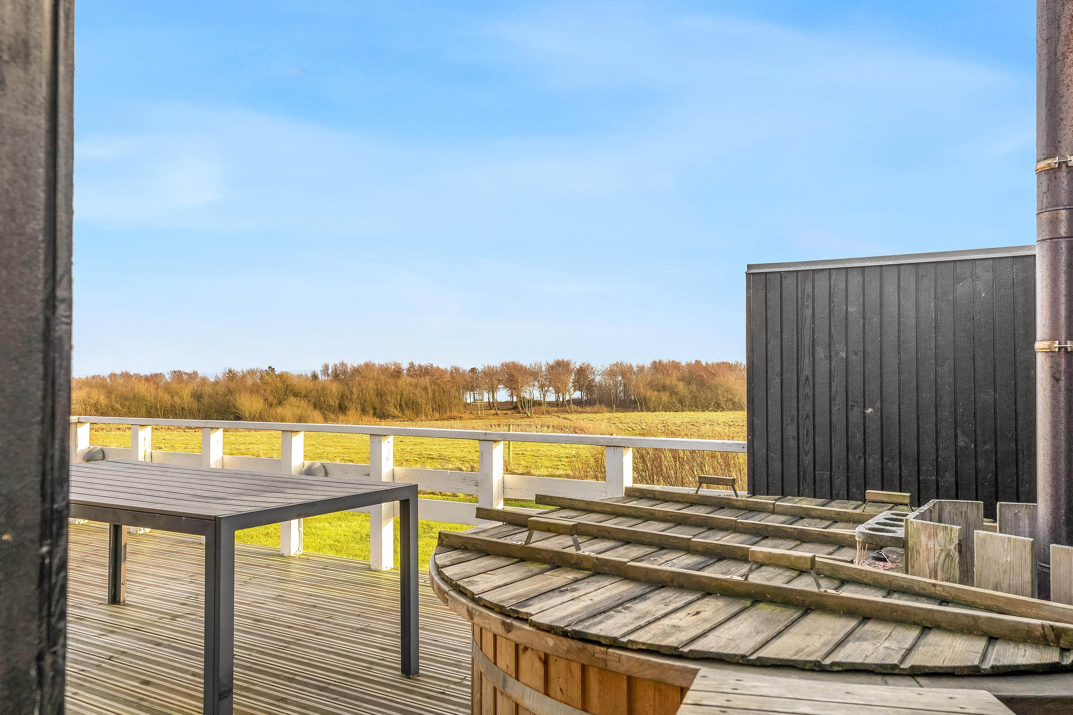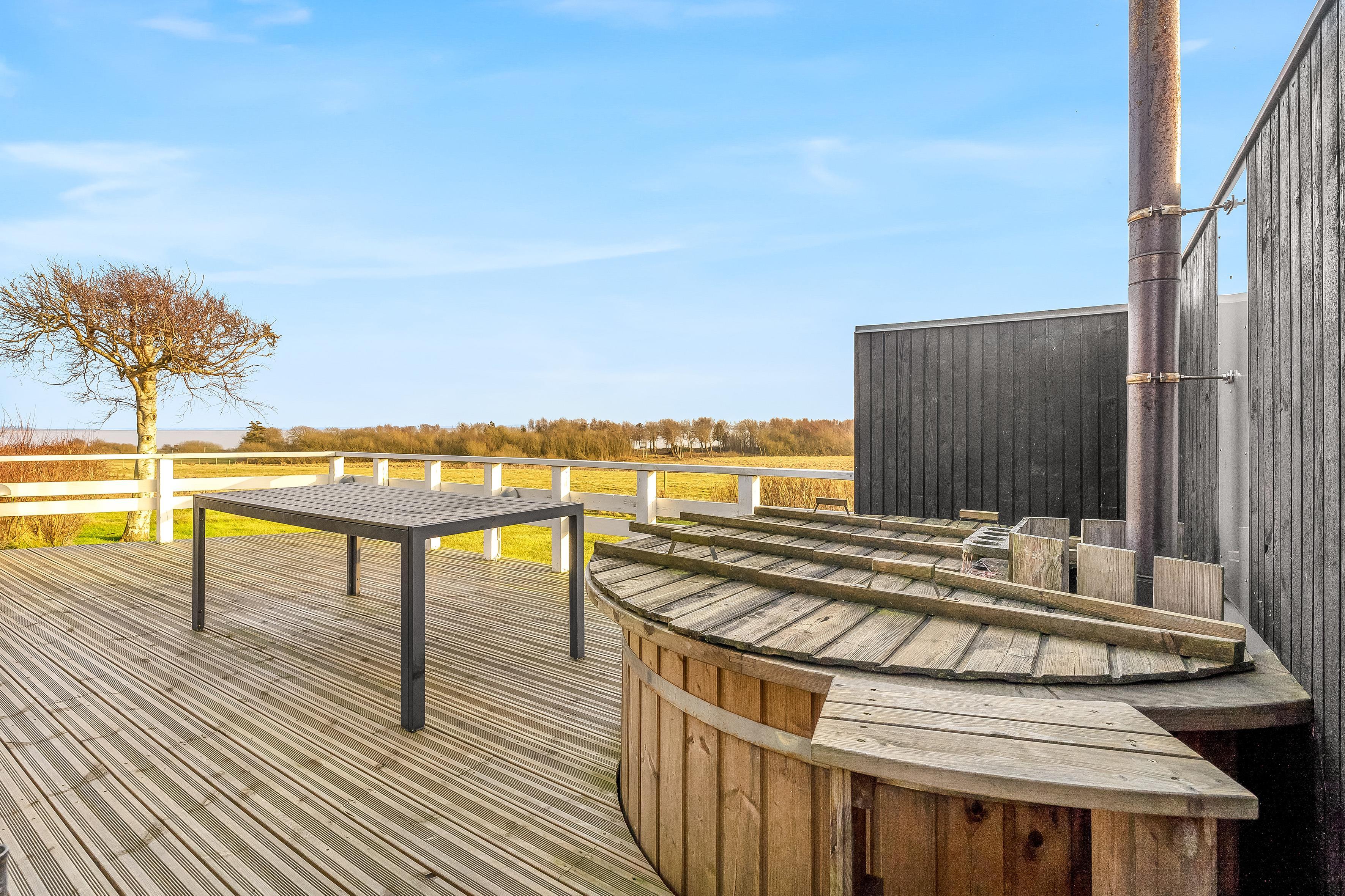 One of the most unique amenities of this holiday home is the indoor spa, which can accommodate two people, as well as the outdoor wilderness bath, which can accommodate up to four people. Here you can relax and enjoy the view of the water, while pampering yourself with a wellness experience.