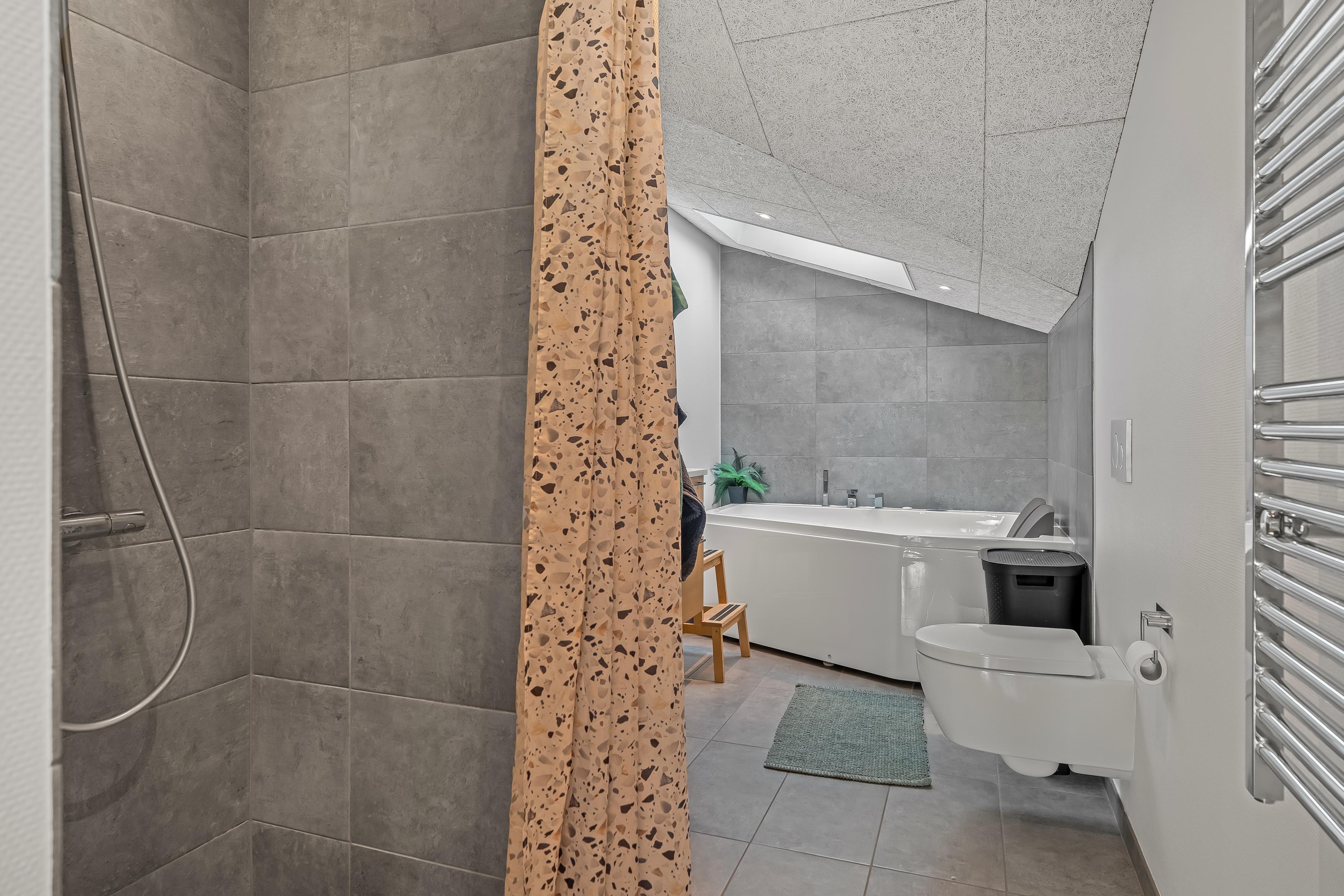 The modern bathroom is equipped with underfloor heating, so you can feel comfortable even on the colder days. Here you will also find a shower and a toilet, making it practical for both families and groups. The house also has an energy-saving heat pump that can also function as air conditioning, so you can adjust the temperature according to your needs, regardless of the season.
