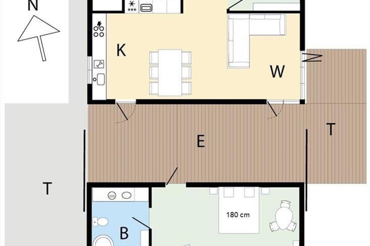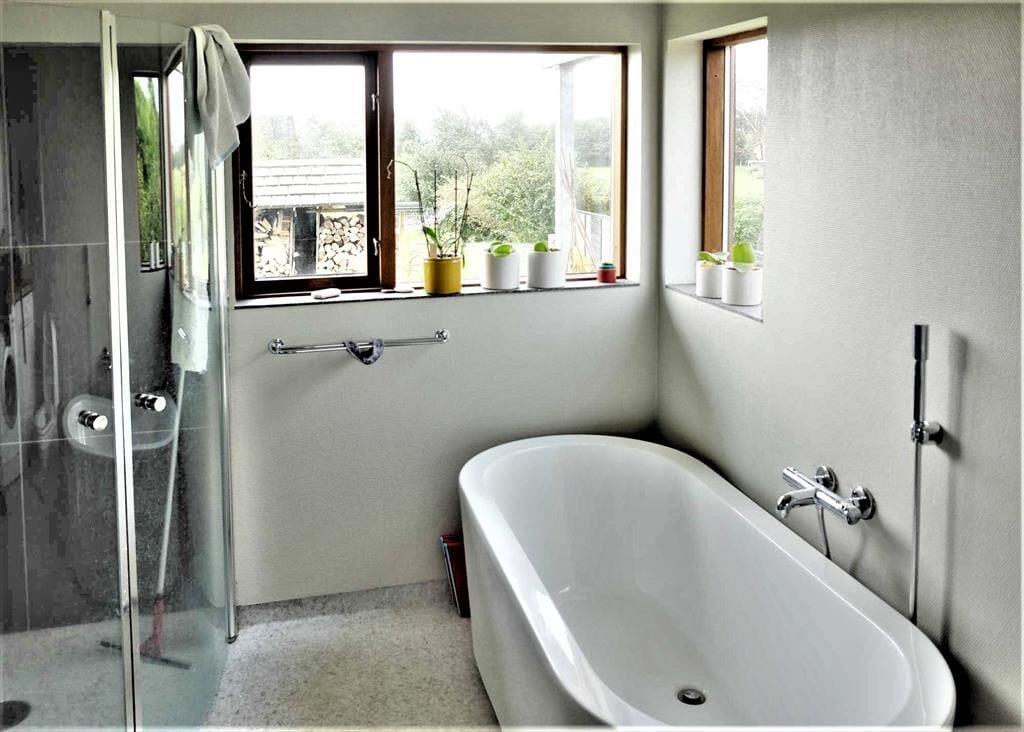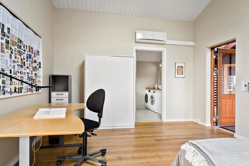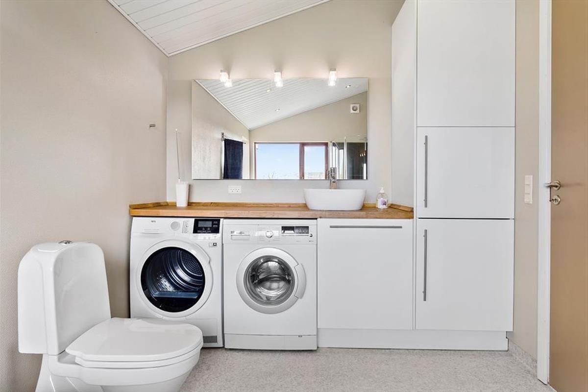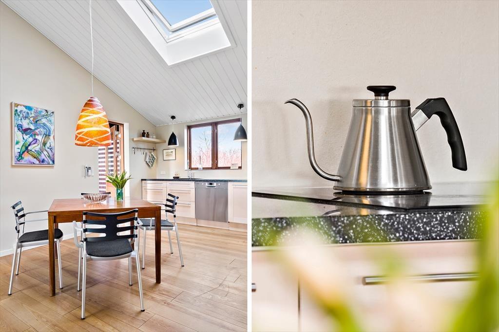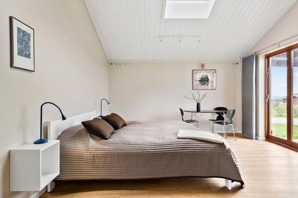 Nutze diese Gelegenheit für ein Ferienhauserlebnis über das Gewöhnliche hinaus - das Haus ist für den ganzjährigen Gebrauch geeignet und hat durch Solarzellen und gute Isolierung einen geringen Energieverbrauch. Das Heizen wird von einer Wärmepumpe erledigt, die ebenso zur Kühlung verwendet werden kann. Das Haus verfügt über drei Zimmer mit Doppelbetten und Garderobenschränken, bietet also insgesamt sechs Schlafplätze. Die Küche ist mit Induktionskochplatte, Geschirrspüler, Kühlschrank und Gefriergerät ausgestattet. Beide Badezimmer sind mit einer Dusche ausgestattet; das eine zusätzlich mit Badewanne, Waschmaschine und Trockner.