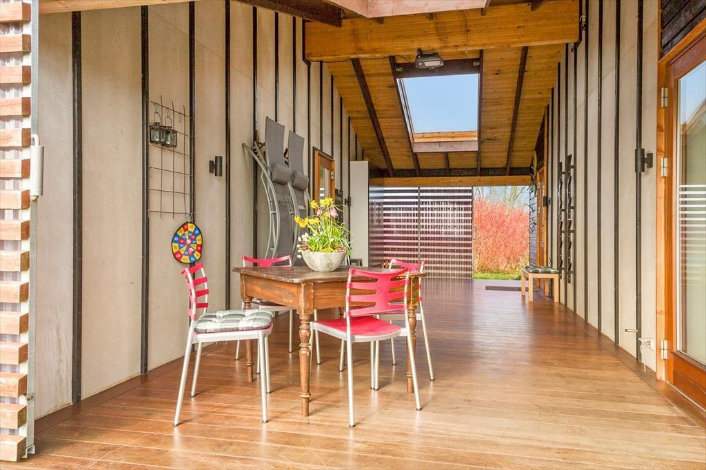 Genieße das Leben im FreienDie Terrasse ist im Sommer unvergleichlich. Der Zwischengang gibt dir die Möglichkeit, bei jedem Wetter draußen zu sein - bei Regen, Wind oder Hitzewellen. Mit dem innovativen natürlichen Ventilationssystem kann dort bei Bedarf auch gekühlt werden. Das Haus ist gut geeignet für einen längeren Aufenthalt, bei dem man sich voll und ganz auf die Entspannung, oder auch auf Arbeit konzentrieren kann.