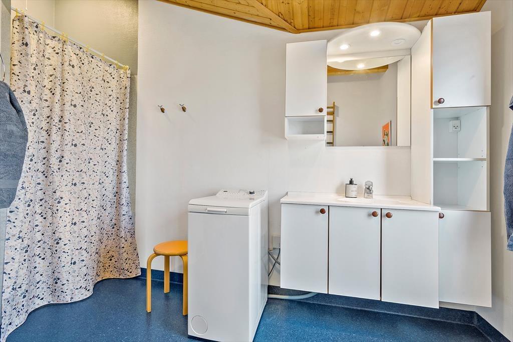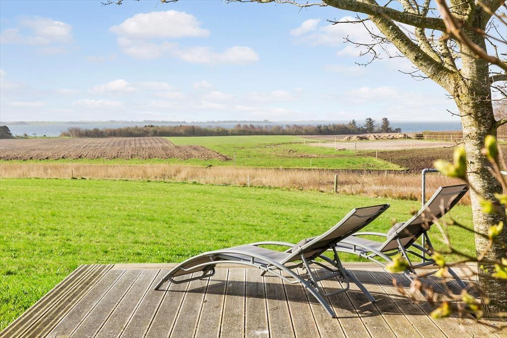 Direkt vor der Tür wartet ein wunderschönes Außengelände, auf dem Sie sowohl die fantastische Aussicht als auch die ruhige Umgebung genießen können. Die große Terrasse bietet viel Platz zum Entspannen, und hier können Sie den ganzen Tag die Sonne genießen. Vom Terrassenbereich aus können Sie einen kurzen Spaziergang zum Strand machen und den weichen Sand unter den Füßen spüren – die perfekte Gelegenheit für ein morgendliches Bad oder einen entspannten Tag am Wasser. Für die Aktiven bietet die Umgebung zahlreiche Möglichkeiten für Wanderungen und Radtouren. Wenn der Abend kommt, können Sie den Grill anwerfen und mit einer unvergleichlichen Aussicht auf den Fjord zu Abend essen.