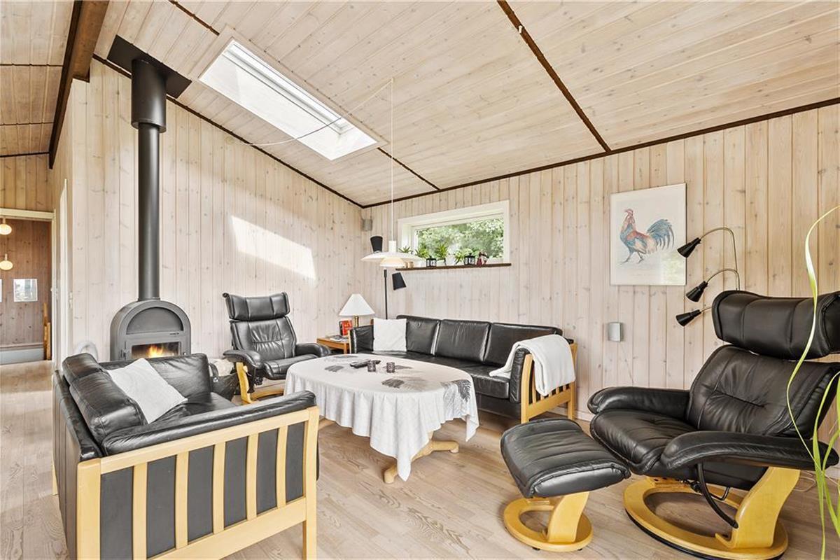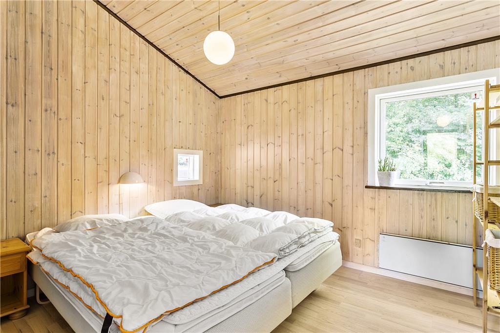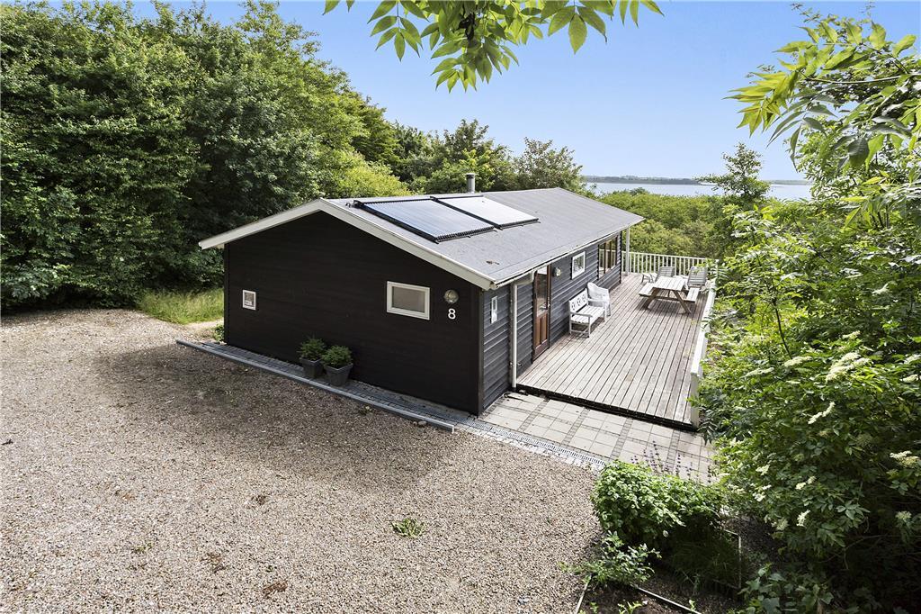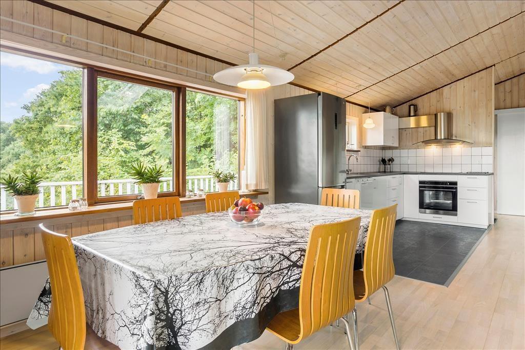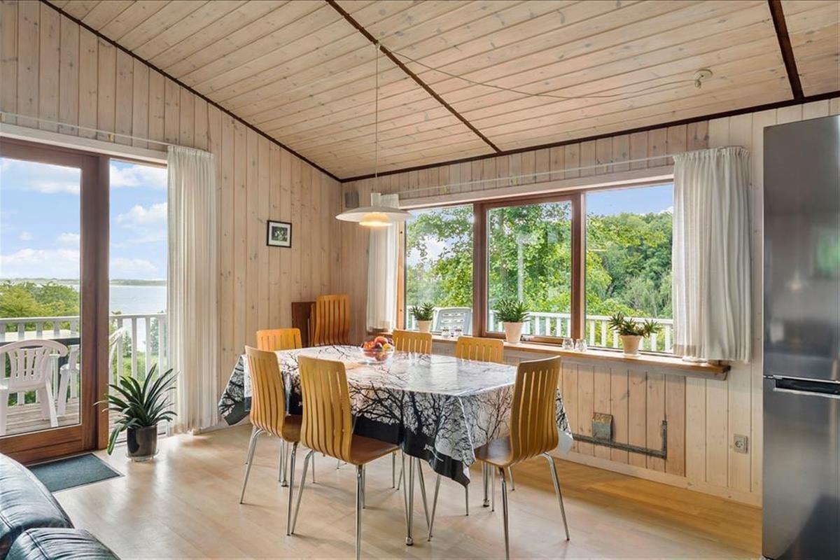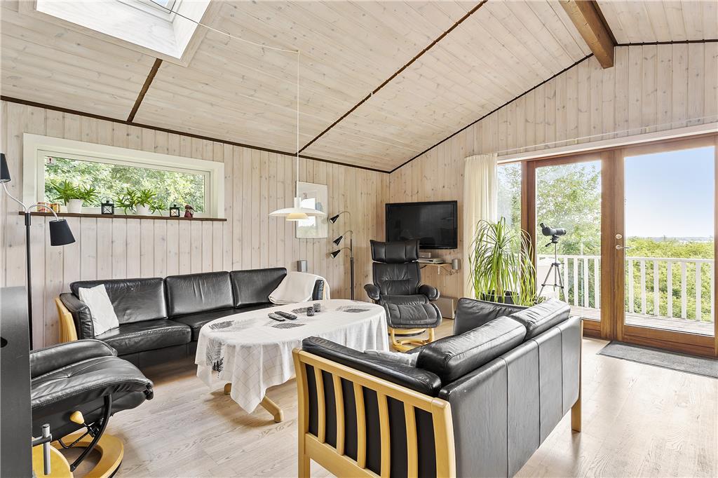 Das Ferienhaus liegt an einem Hang und verfügt über ein Unter- und Obergeschoss. Zunächst betreten Sie das Obergeschoss, in dem sich ein älteres, aber zweckmäßiges Badezimmer mit Toilette, Waschbecken und Duschnische befindet. Außerdem sind zwei Schlafzimmer, eins mit Doppelbett und das zweite mit zwei Einzelbetten, vorhanden. Richtung Süden liegen die kombinierte Küche, die von 2022 ist, und das große Wohnzimmer. In diesem stehen ein Esstisch und Stühle für acht Personen, eine gemütliche Sofaecke sowie ein großer Flachbildfernseher und ein Kamin zur Verfügung. Vom Wohnzimmer haben Sie Zugang zu einer großen, überdachten Terrasse, von der Sie den schönsten Blick über das Naturgebiet Skyum Bjerge und den Limfjorden bis zur Insel Mors haben. Es gibt keine bessere Aussicht! Überall aus den großen Fenstern blicken Sie auf die Natur und das Tierleben, die das Haus umgeben, und auch auf die Segelboote auf dem Limfjord. Alles kann mit dem zur Verfügung stehenden großen Fernglas beobachtet werden. Im Untergeschoss sind zwei gute Schlafzimmer mit jeweils einem Doppelbett und ein großes Luxusbadezimmer mit Whirlpool und Sauna sowie genügend Platz für Wellness vorhanden. Auch vom Untergeschoss gelangen Sie auf eine eigene Terrasse mit tollem Ausblick. Auf dem Hausdach wurde eine Solaranlage installiert, die ganzjährig für sehr niedrige Verbrauchskosten sorgt.