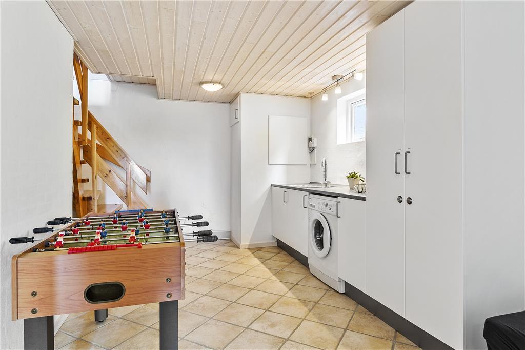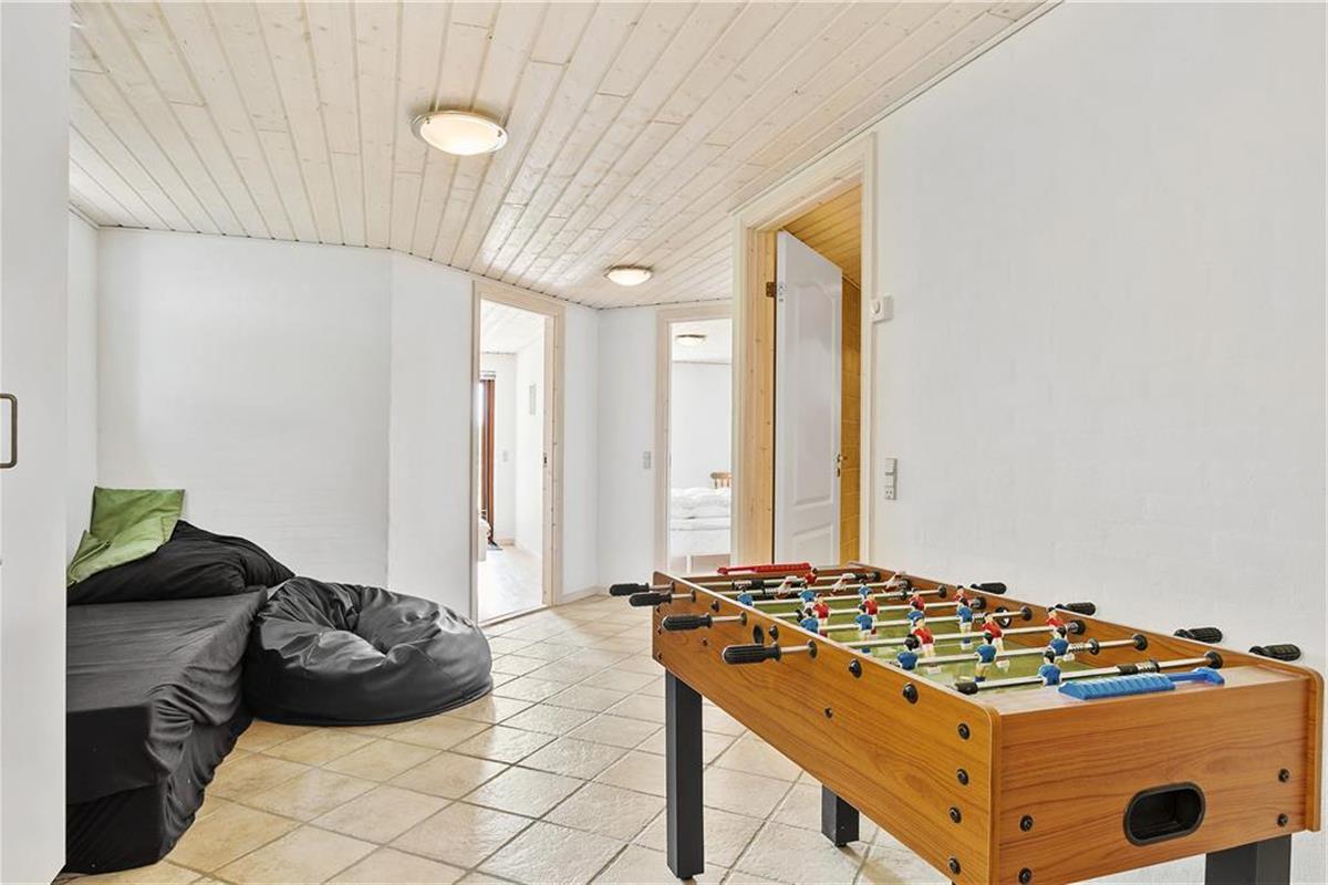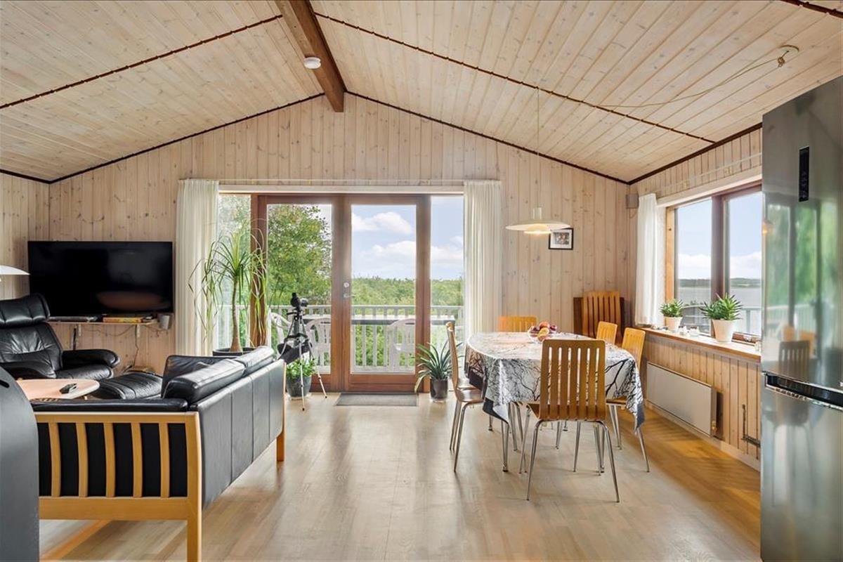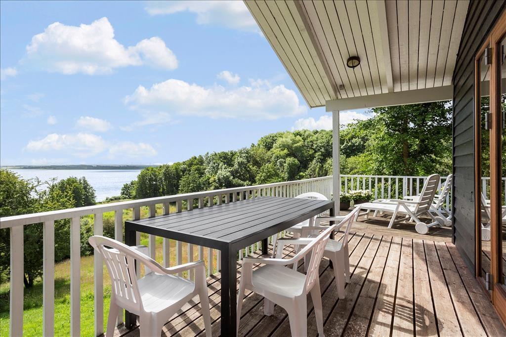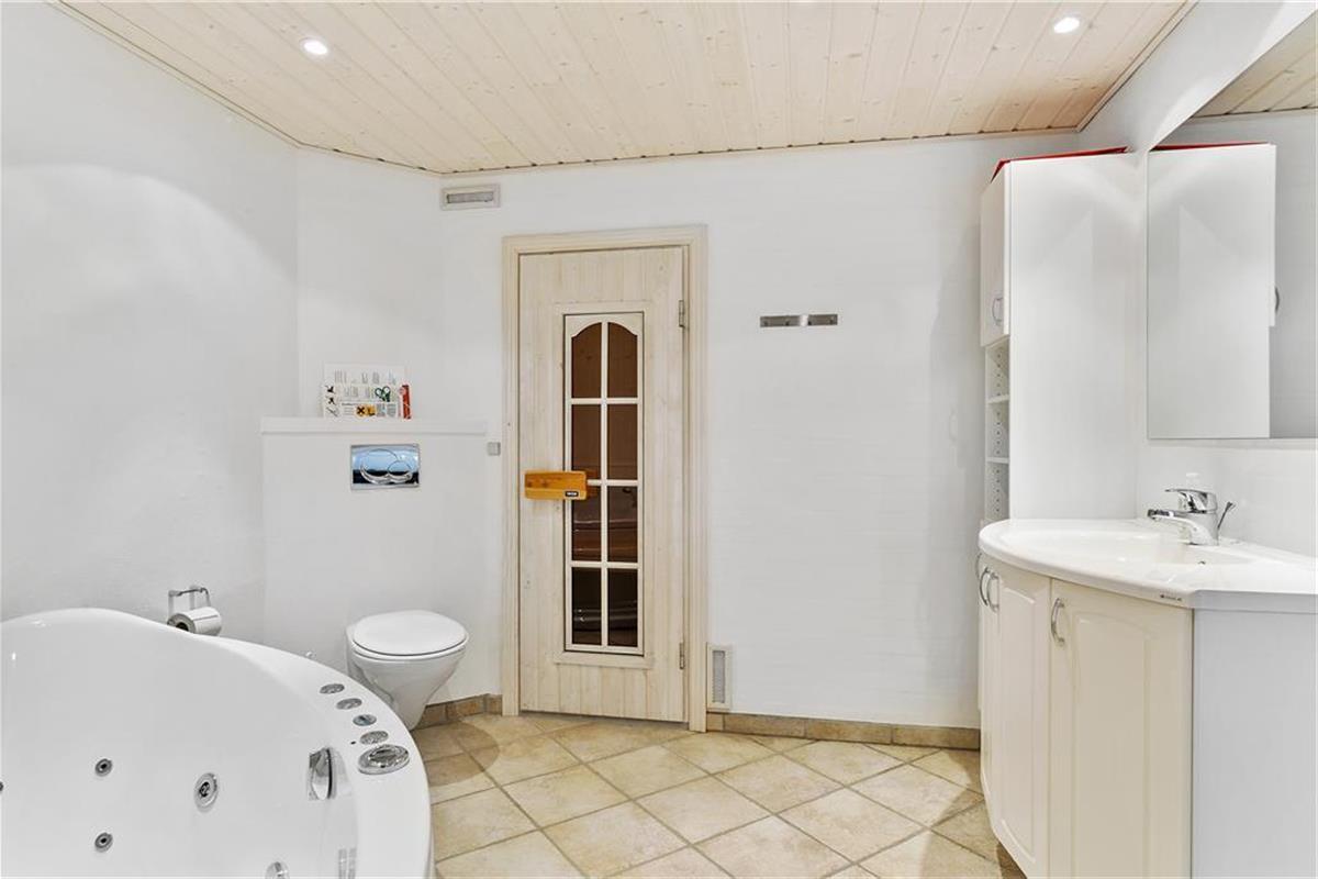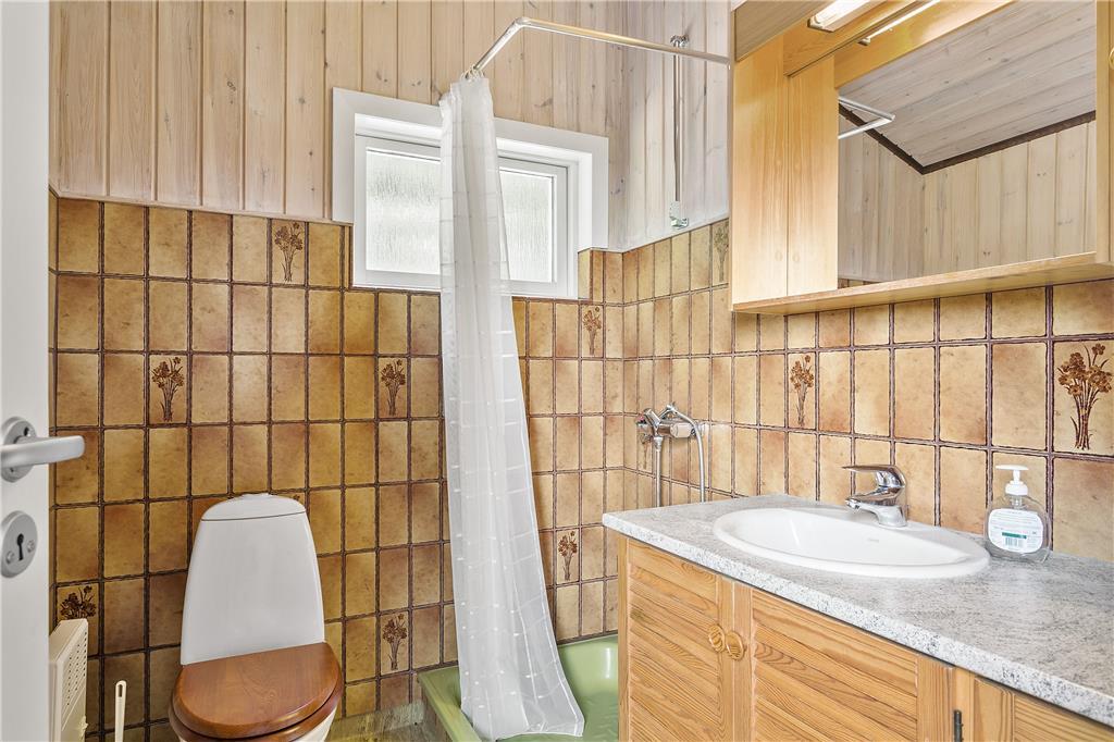 Das Ferienhaus liegt an einem Hang und verfügt über ein Unter- und Obergeschoss. Zunächst betreten Sie das Obergeschoss, in dem sich ein älteres, aber zweckmäßiges Badezimmer mit Toilette, Waschbecken und Duschnische befindet. Außerdem sind zwei Schlafzimmer, eins mit Doppelbett und das zweite mit zwei Einzelbetten, vorhanden. Richtung Süden liegen die kombinierte Küche, die von 2022 ist, und das große Wohnzimmer. In diesem stehen ein Esstisch und Stühle für acht Personen, eine gemütliche Sofaecke sowie ein großer Flachbildfernseher und ein Kamin zur Verfügung. Vom Wohnzimmer haben Sie Zugang zu einer großen, überdachten Terrasse, von der Sie den schönsten Blick über das Naturgebiet Skyum Bjerge und den Limfjorden bis zur Insel Mors haben. Es gibt keine bessere Aussicht! Überall aus den großen Fenstern blicken Sie auf die Natur und das Tierleben, die das Haus umgeben, und auch auf die Segelboote auf dem Limfjord. Alles kann mit dem zur Verfügung stehenden großen Fernglas beobachtet werden. Im Untergeschoss sind zwei gute Schlafzimmer mit jeweils einem Doppelbett und ein großes Luxusbadezimmer mit Whirlpool und Sauna sowie genügend Platz für Wellness vorhanden. Auch vom Untergeschoss gelangen Sie auf eine eigene Terrasse mit tollem Ausblick. Auf dem Hausdach wurde eine Solaranlage installiert, die ganzjährig für sehr niedrige Verbrauchskosten sorgt.