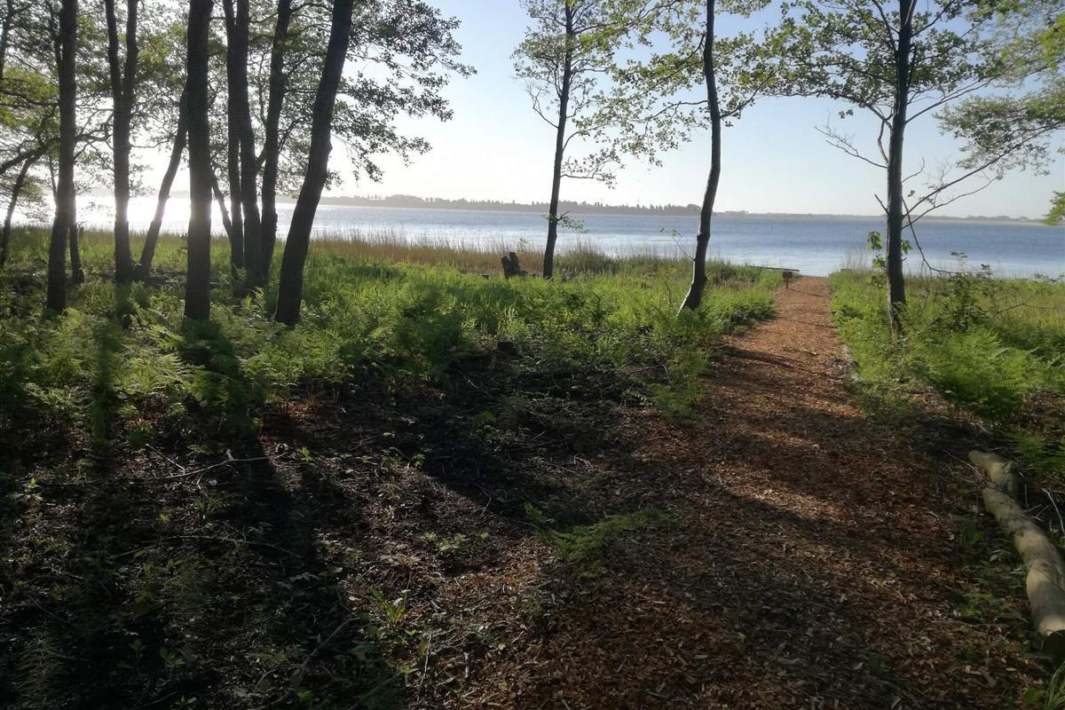 erhöht auf einem Naturgrundstück, von dem aus das Wasser zu Fuß gut